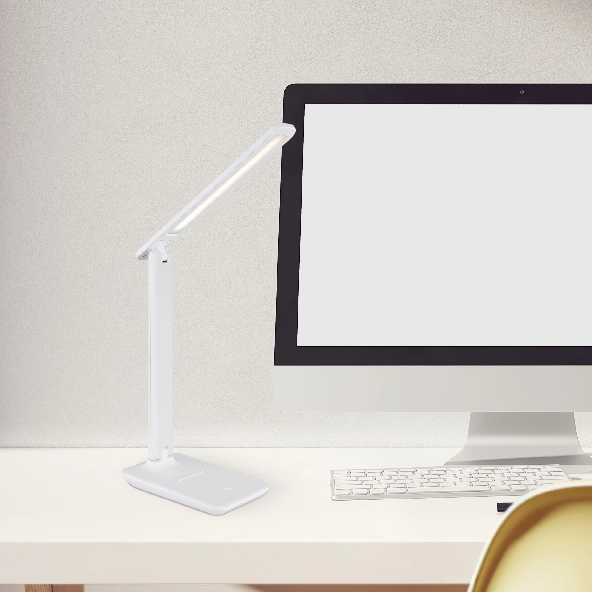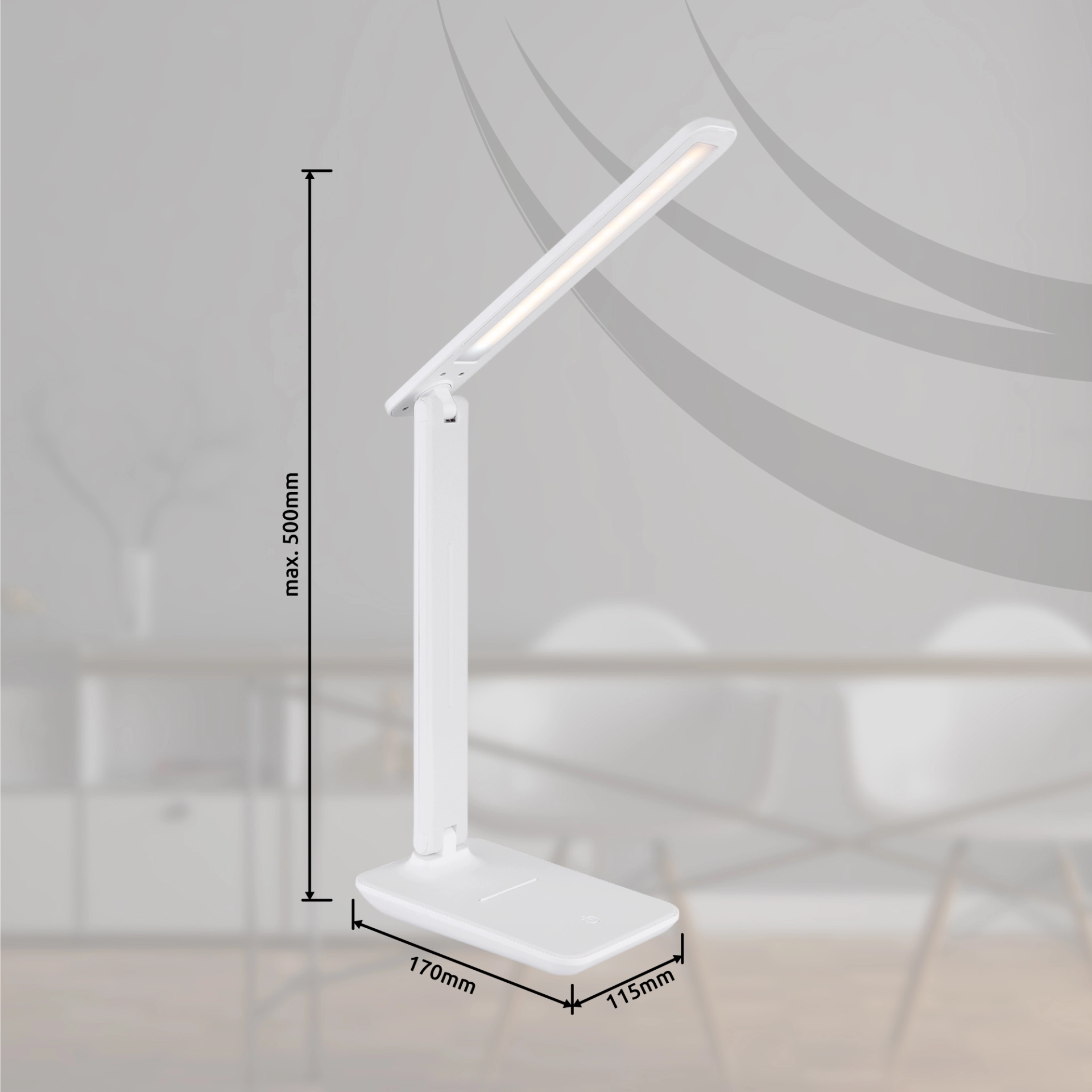 Die Tischleuchte besteht aus weiß mattiertem Kunststoff, opalem Kunststoff und antik weißem Kunstleder. Die Abmessungen betragen 280x115x500mm und die Kabellänge ... Mehr erfahren Mehr erfahren