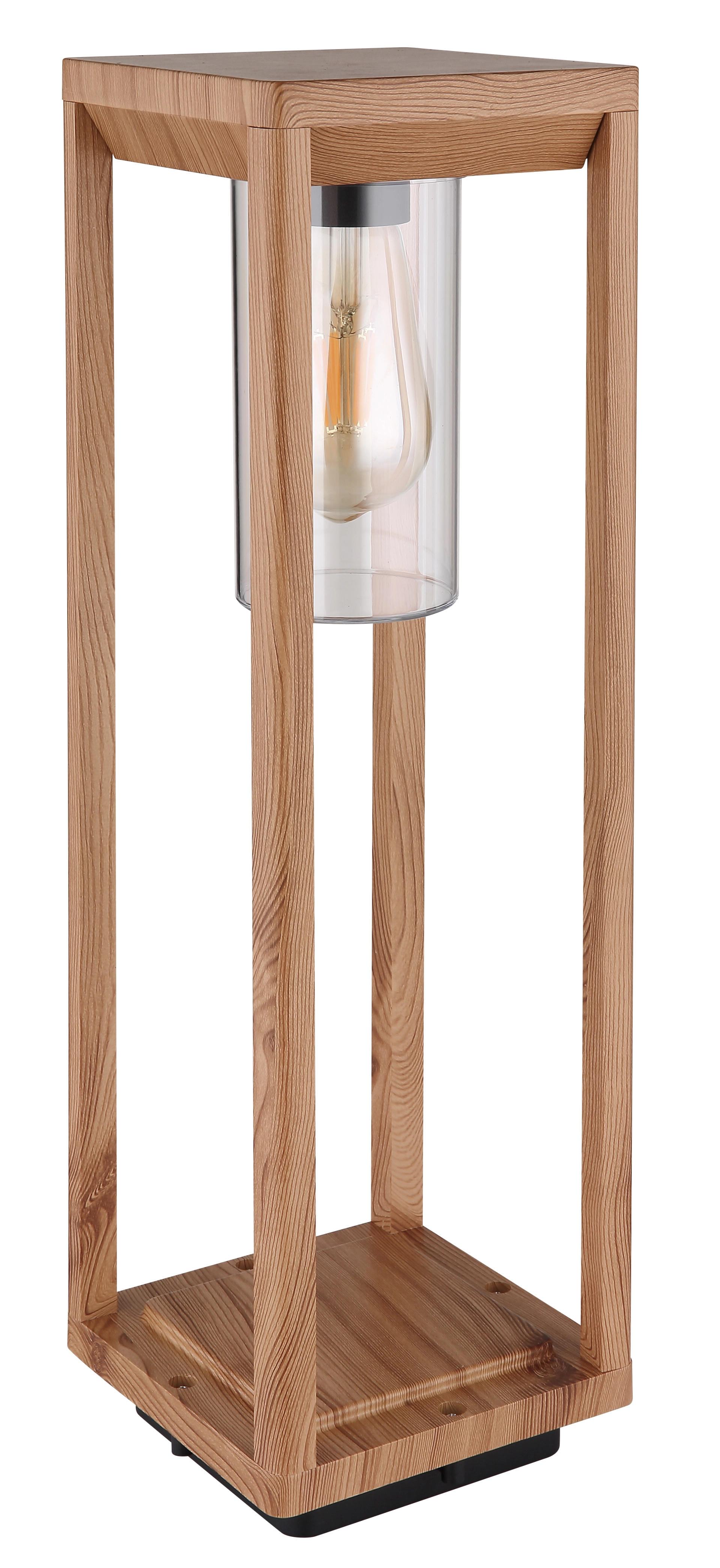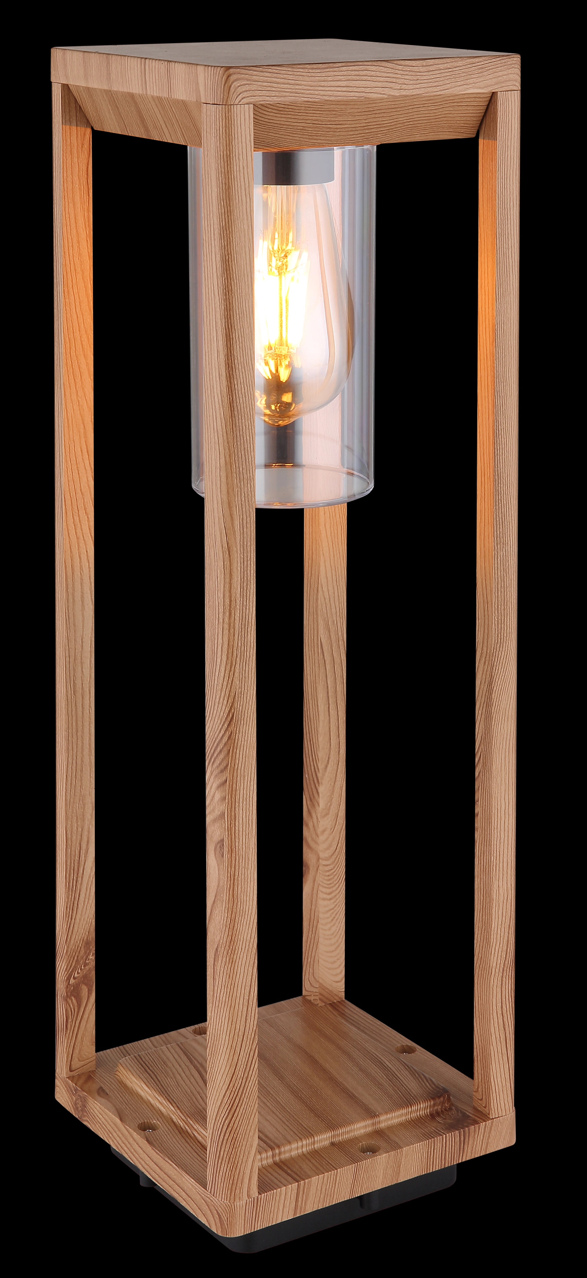 Diese Außenlampe aus der Candela-Serie ist eine wunderschöne Ergänzung für Ihren Garten, Ihre Terrasse oder Ihren Balkon. Die 50 cm große Außenleuchte besteht aus einen quaderförmigen Aluminium-Druckgussrahmen in Holzoptik (15x15 cm), welcher innen mit einer E27-Fassung versehen ist. Diese wird von einem klaren Kunststoffzylinder umrahmt und kann mit einem passenden LED-Leuchtmittel Ihrer Wahl bestückt werden. Dadurch haben Sie die Möglichkeit, Lichtfarbe und Helligkeit individuell zu bestimmen. Durch weitere Modelle der gleichen Serie können Sie in Ihren Außenbereich für ein stimmungsvolles Ambiente sorgen.
