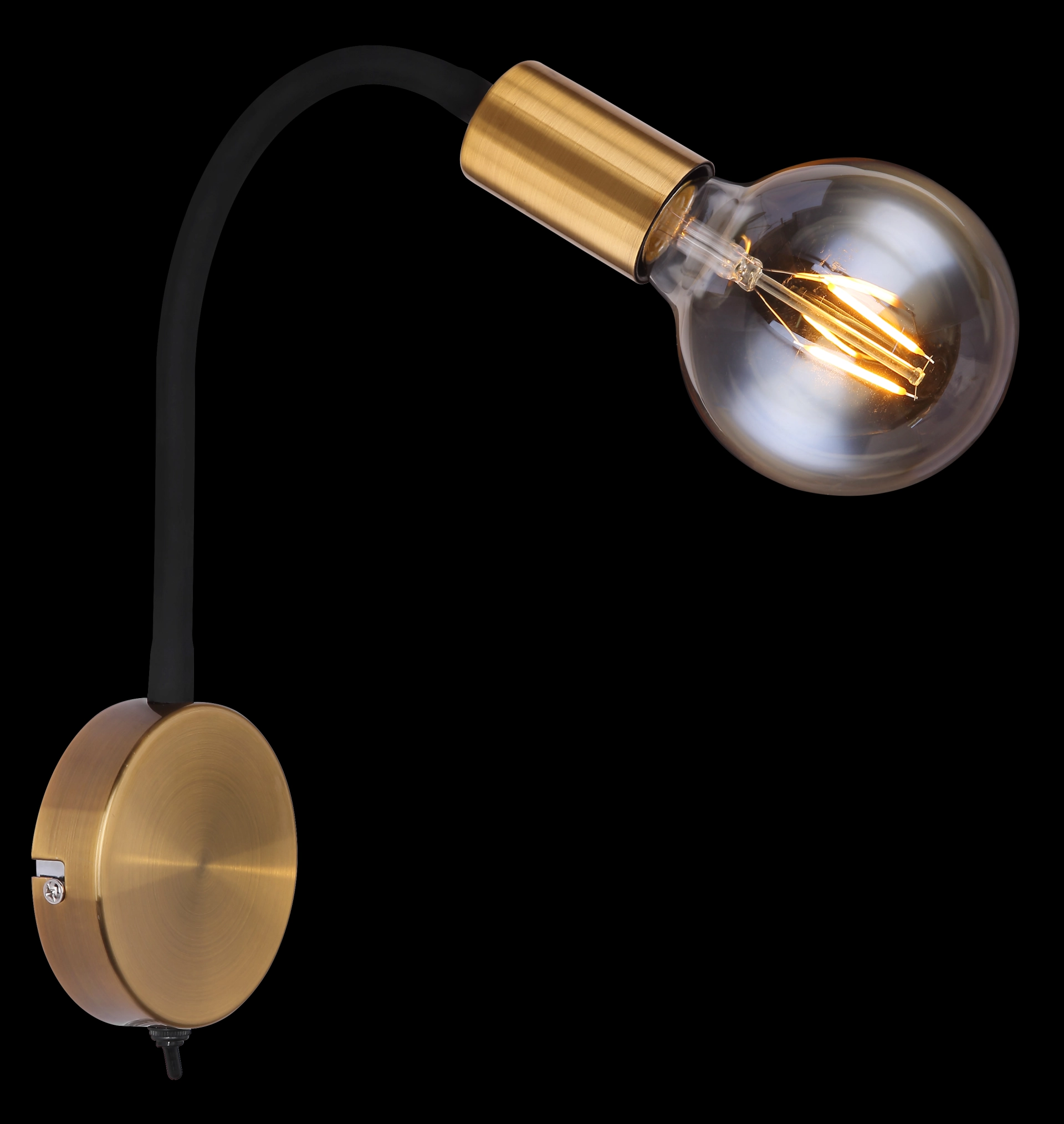 The wall lamp EDDY scores with its antique and at the same time simple design. The material combination of black and gold-colored metal give this 43 cm high, flexible wall lamp the typical antique style. The simple, gold-coloured E27 socket gives you the freedom to choose the light source (max. 60W). This interior light with switch can be used well in your living area. With other models of this series you can further beautify the living space.