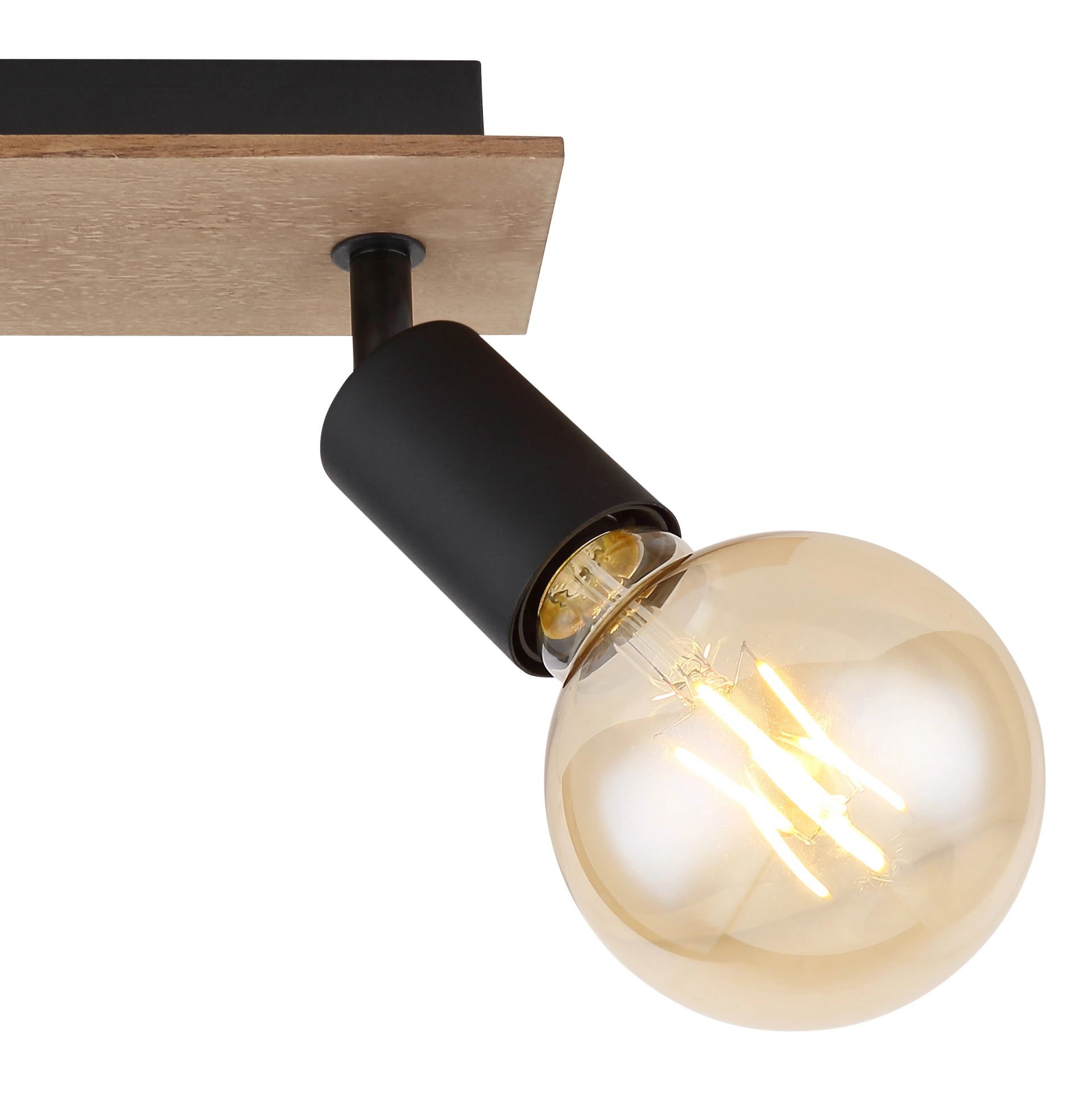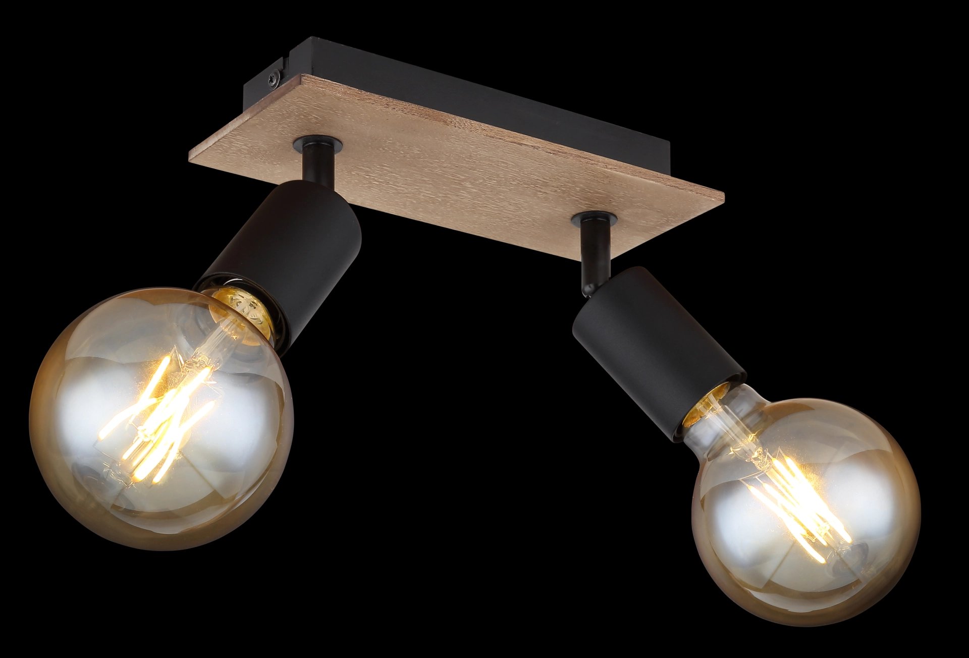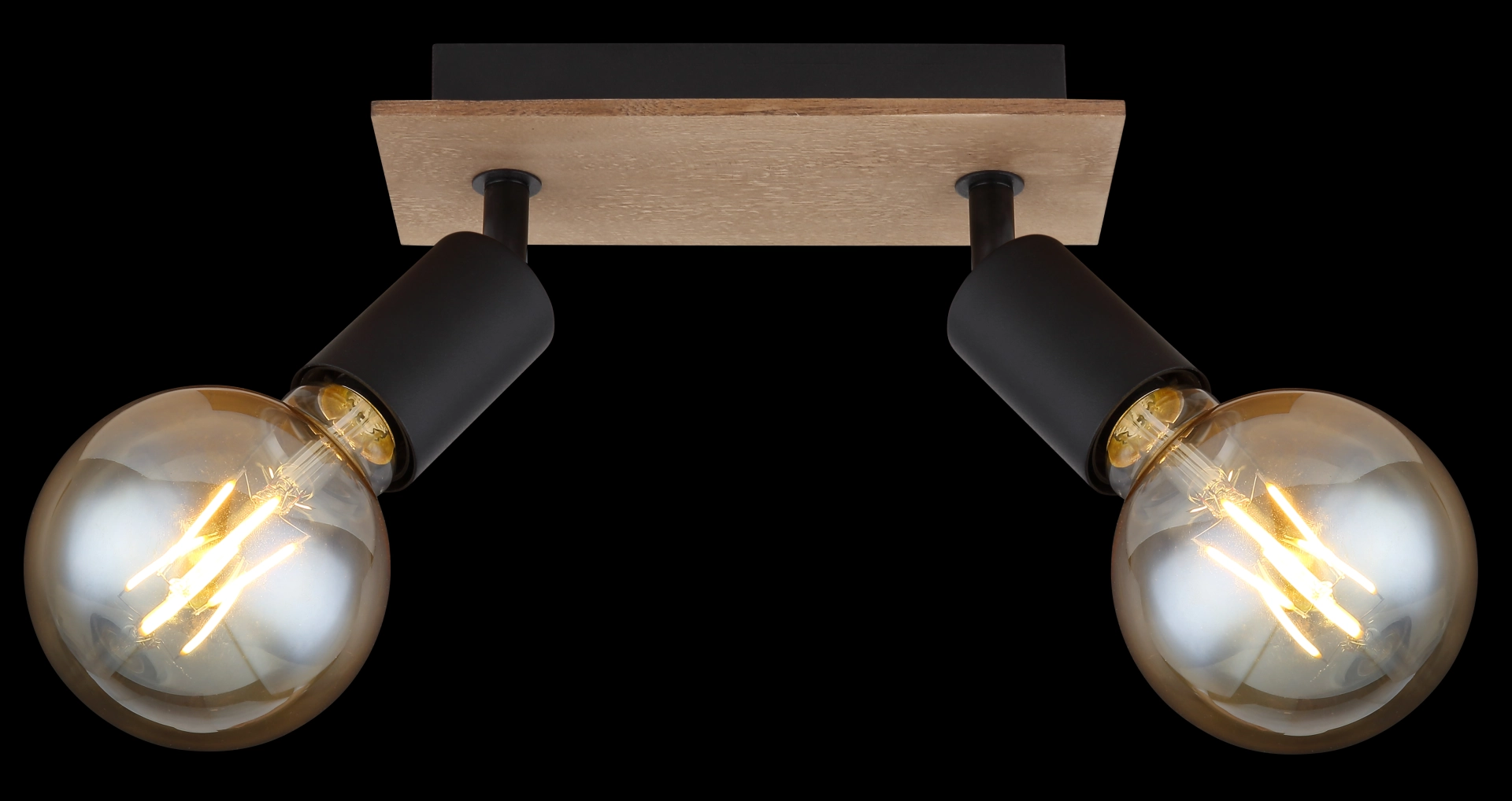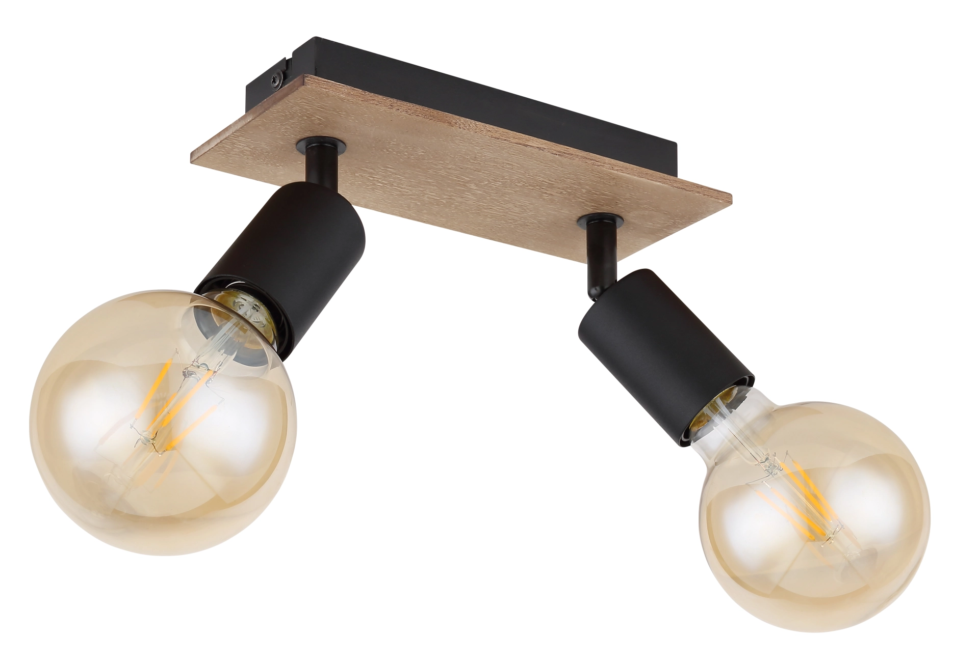 This twin spotlight from the Martha series (21x9 cm) is an elegant addition to your interiors. It consists of a brown wooden panel to which two swivelling E27 sockets coated in black metal are fixed. You can equip them with suitable bulbs of your choice, which enables you to determine the light color and brightness according to your ideas. With other models of the same series you can complete the overall picture in your four walls.
