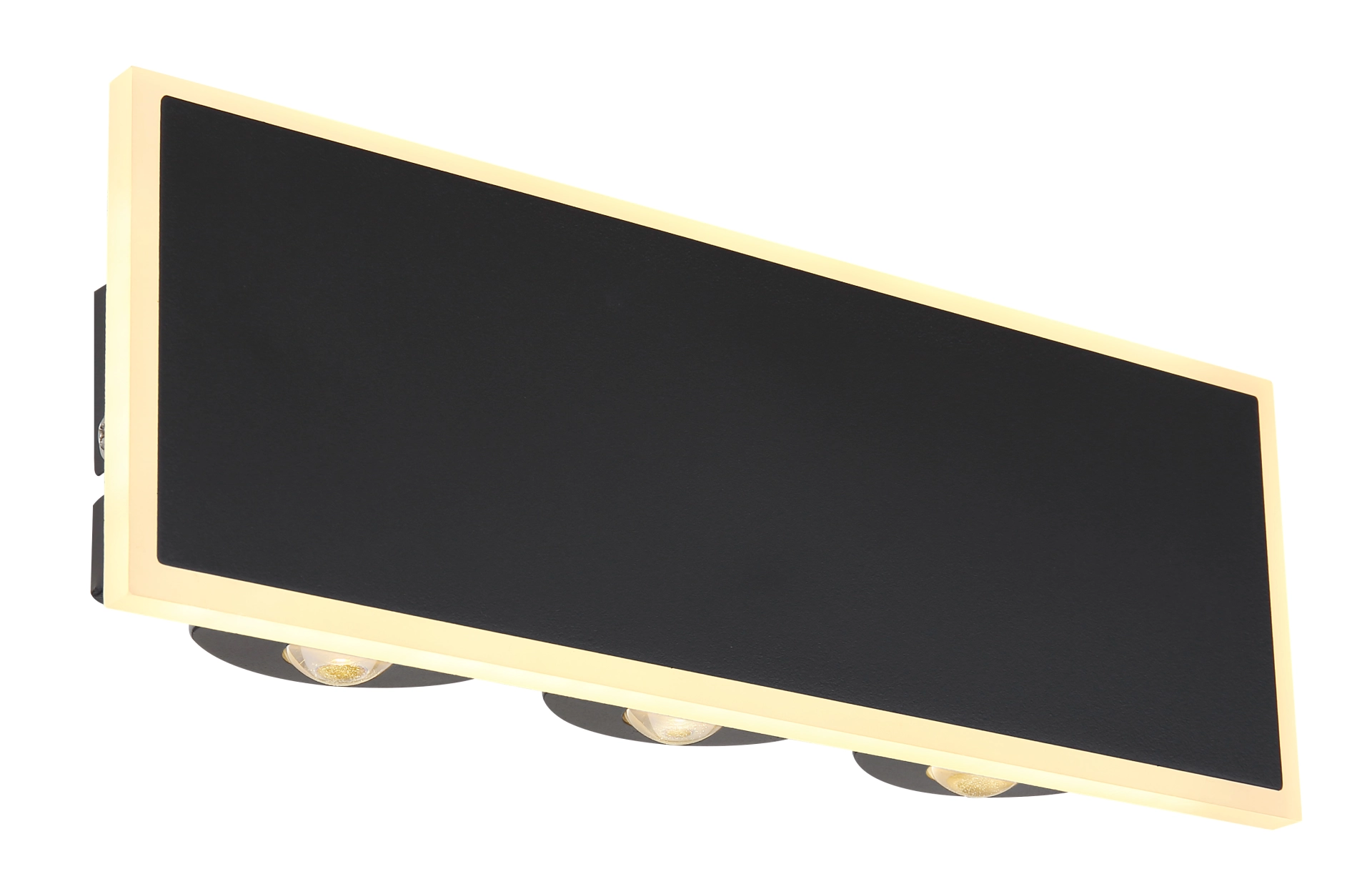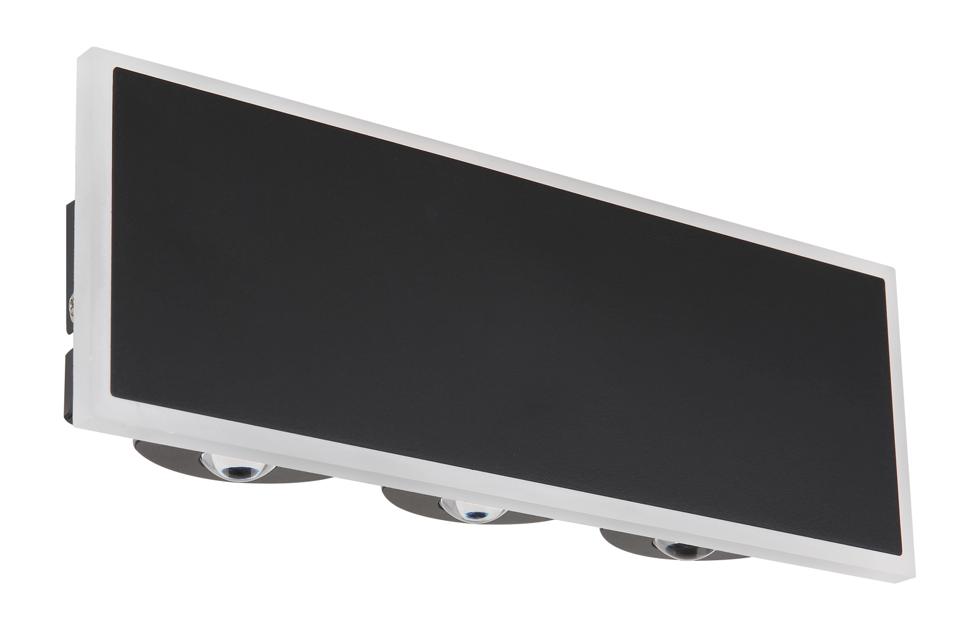 The wall lamp of the SAIDY series is made of black matt metal and has a clear plastic frame. The dimensions are WxH: 250x90mm with an mounting depth of 50mm. The lamp is supplied with an LED with a power of 12W and a voltage of 230V. The maximum light output is 1600lm at a color temperature of 3000K. The actual light output is 850lm.