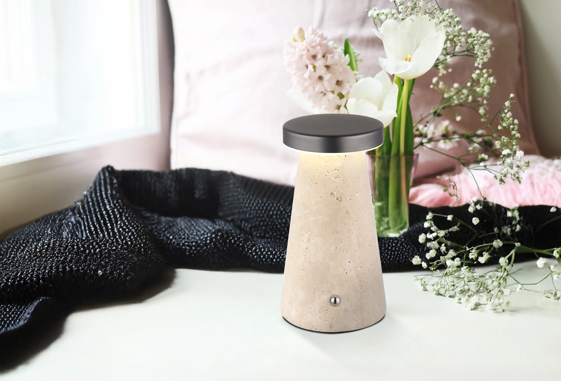 La lampe de table Travertine Stone Grey allie design élégant et fonctionnalité pratique. Le corps en pierre de travertin gris ... En savoir plus En savoir plus