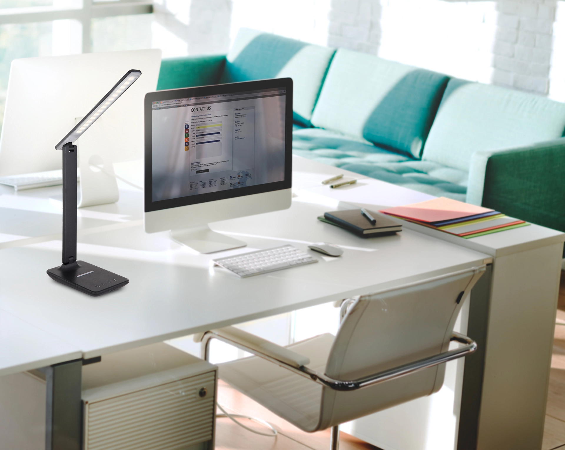 Bulla la lampe de table en plastique noir dans un aspect en cuir avec affichage de lumière LED opalisé a ... En savoir plus En savoir plus