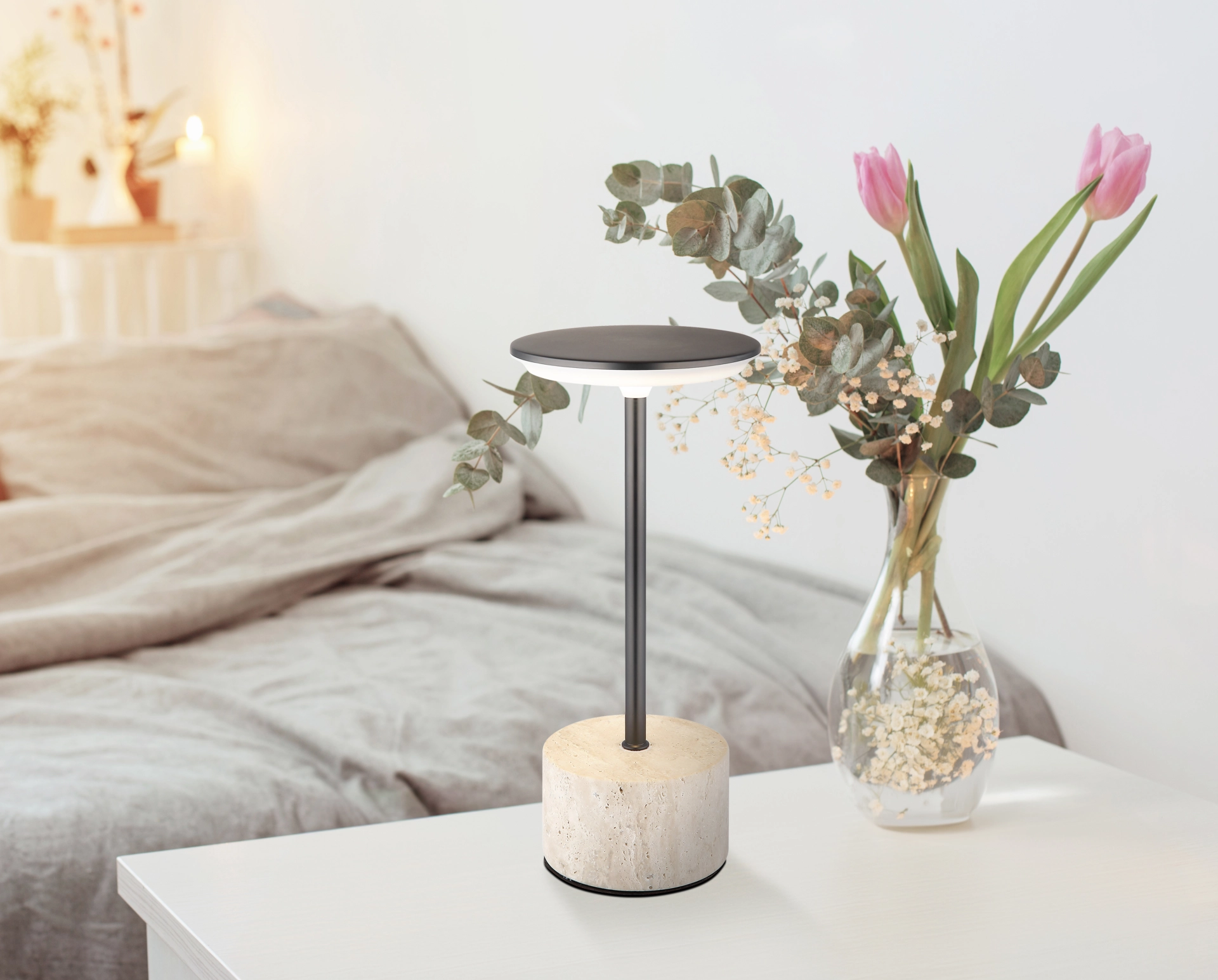 La lampe de table Travertine Stone Grey allie un design élégant aux dernières technologies. Le corps en pierre de travertin ... En savoir plus En savoir plus