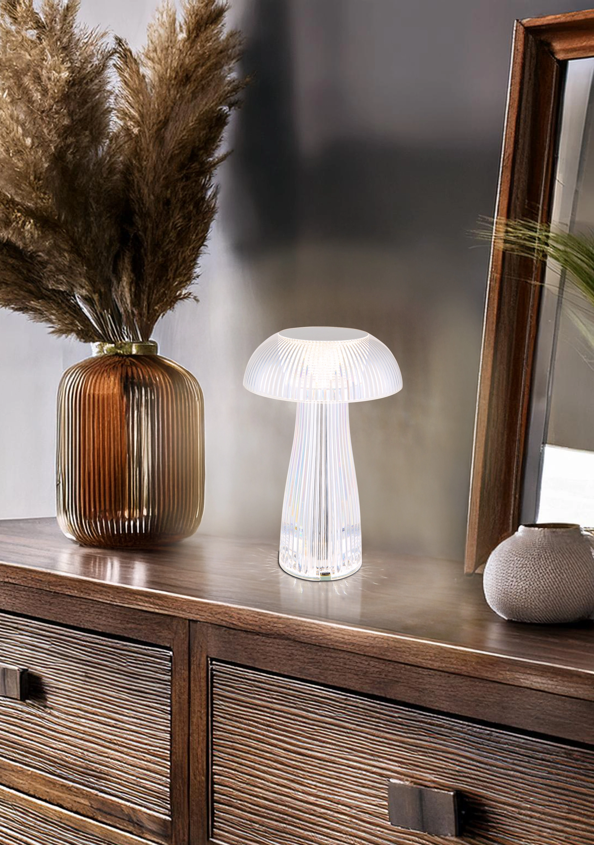 Die moderne Tischleuchte GIXI kombiniert klares Kunststoffmaterial mit elegantem silbernem Metall und überzeugt durch ihr ansprechendes Design. Mit einem weißen PVC-Kabel und einem praktischen Touch Ein/Aus-Schalter kann die Beleuchtung mühelos gesteuert werden. Die Tischleuchte verfügt über einen Touchdimmer, mit dem die Helligkeit stufenlos eingestellt werden kann. Zudem sind die Farben fixierbar und die Leuchte kann über USB-A 2.0 oder USB-C aufgeladen werden. Der Akku mit einer Kapazität von 800mAh und einer Spannung von 3.7V sorgt für eine Leuchtdauer von ca. 6 Stunden und benötigt etwa 4 Stunden zum Aufladen. Die Leuchte enthält eine LED mit einer Ausgangsleistung von 1.5W und 52lm und bietet eine Auswahl an Lichtfarben (CCT) von 2700K bis 6500K. Im Lieferumfang ist ein USB-Kabel enthalten, ein Adapter muss separat erworben werden. Diese Tischleuchte ist die ideale Ergänzung für ein modernes Wohnambiente.