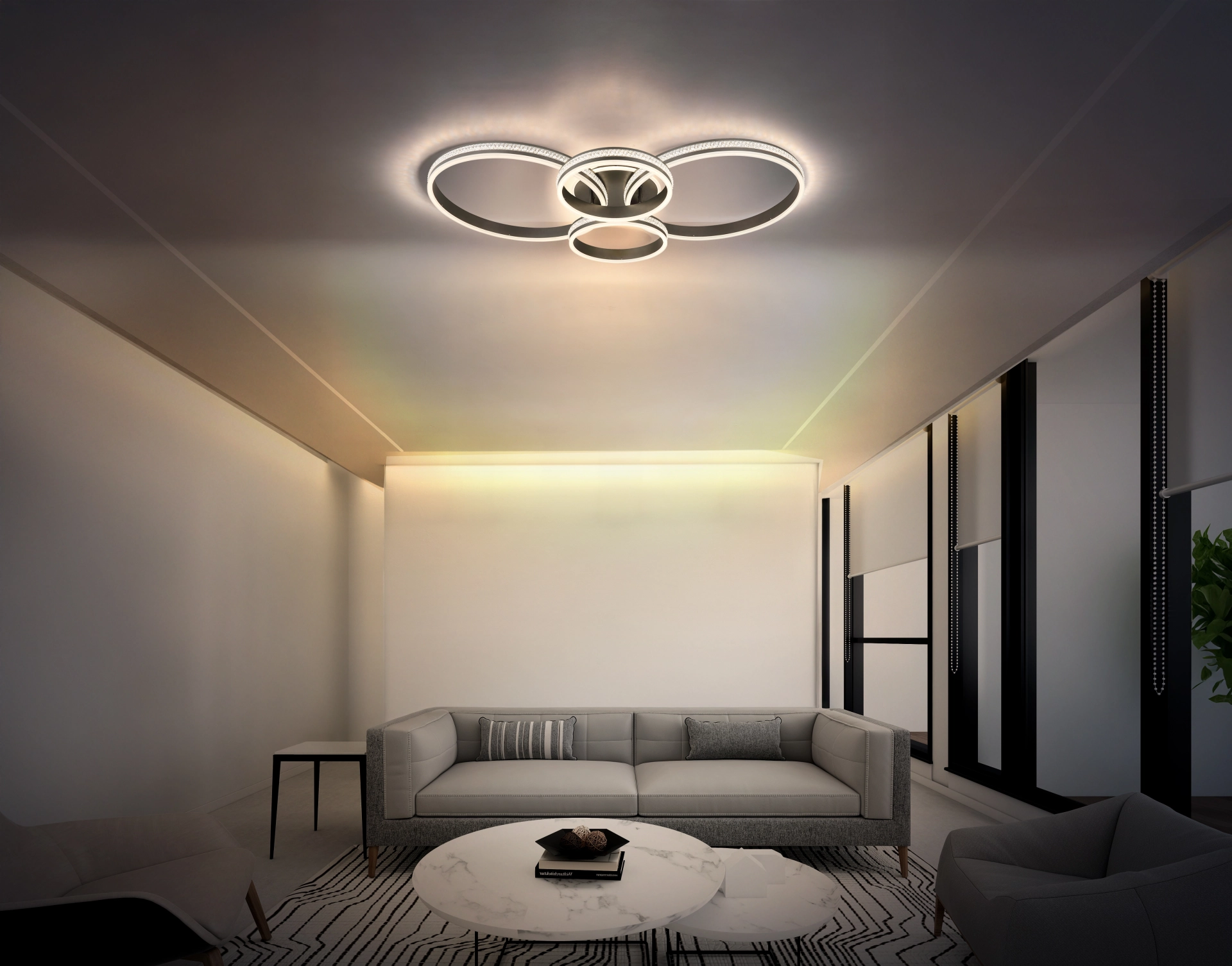 Deckenleuchte GROUNI – Elegantes Design und brillante Beleuchtung Die rechteckige Deckenleuchte GROUNI beeindruckt durch ihr modernes Design mit vier versetzten ... Mehr erfahren Mehr erfahren