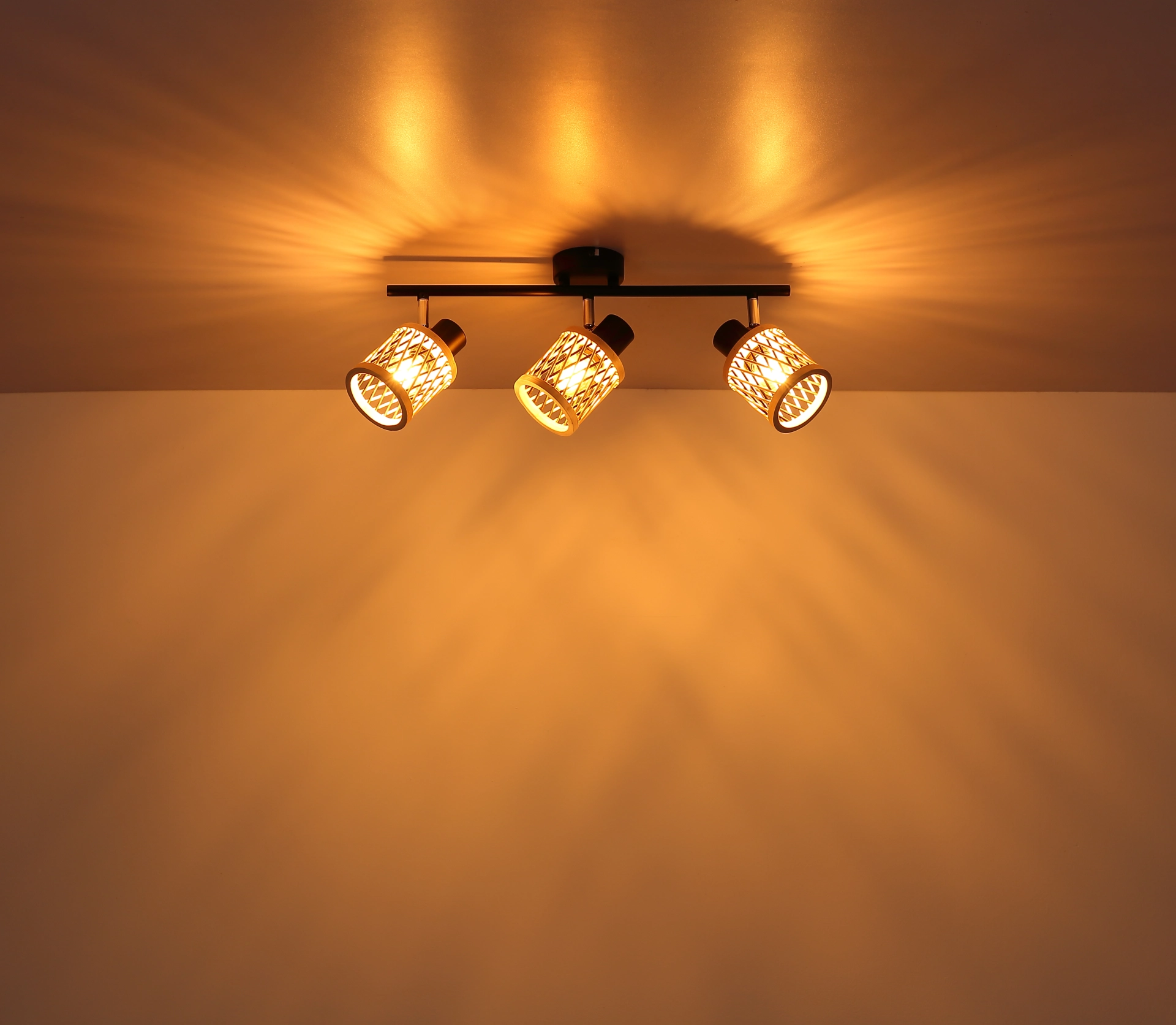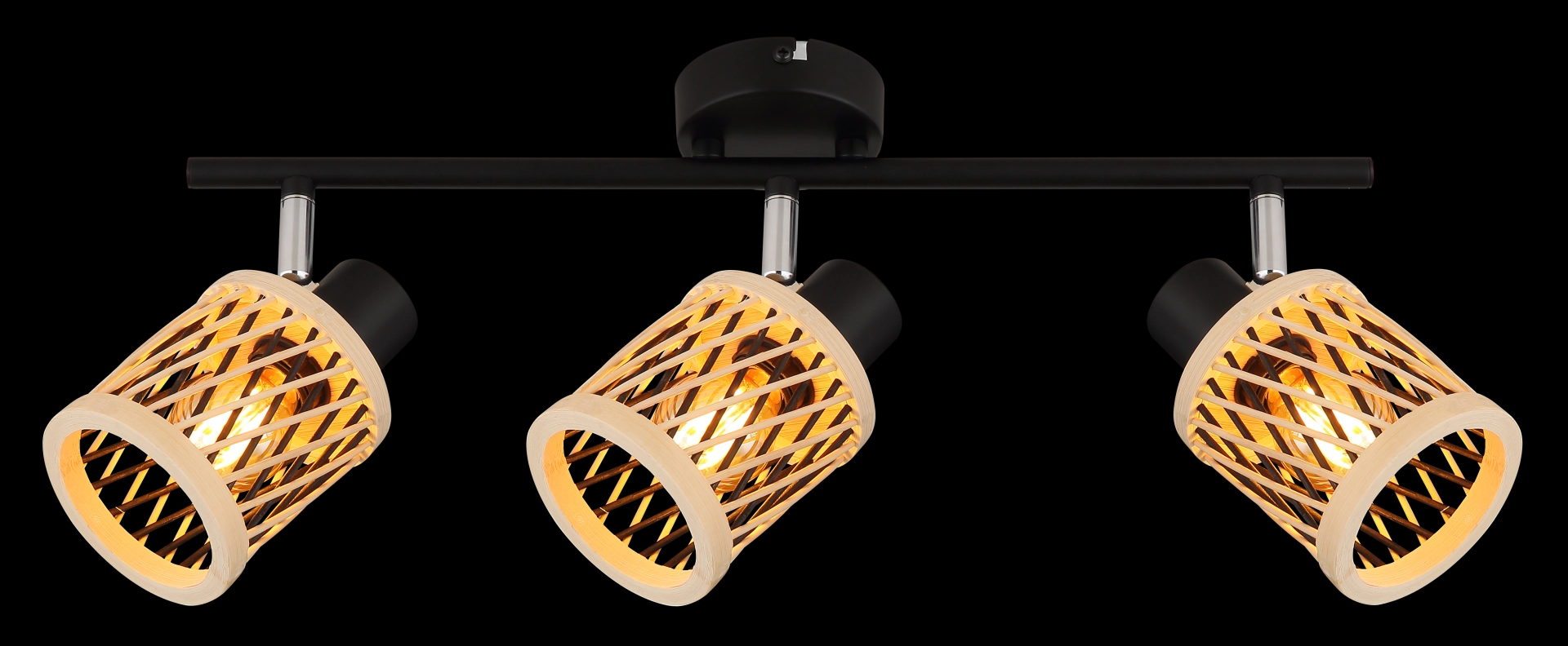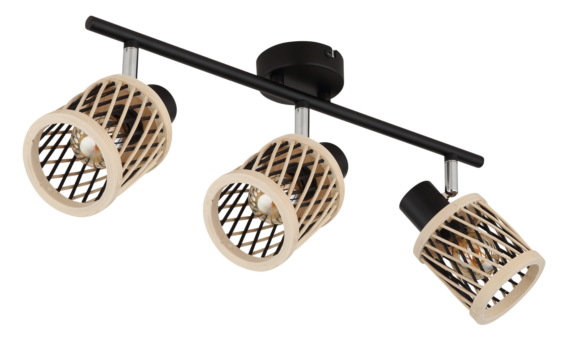 Der Strahler MALI kombiniert Vintage-Design mit natürlichem Flair. Die gerade Schiene aus matt schwarzem Metall trägt Schirme aus naturfarbenem und ... Mehr erfahren Mehr erfahren