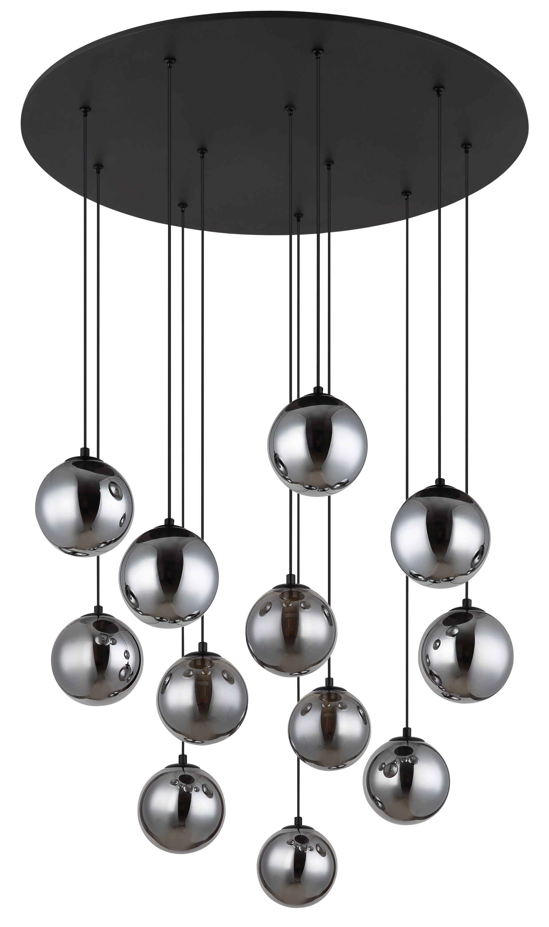Die RIHA Deckenleuchte präsentiert sich in einem runden Design, das durch 12 Hänger mit rauchfarbenen Glaskugeln getragen wird. Der Korpus ... Mehr erfahren Mehr erfahren