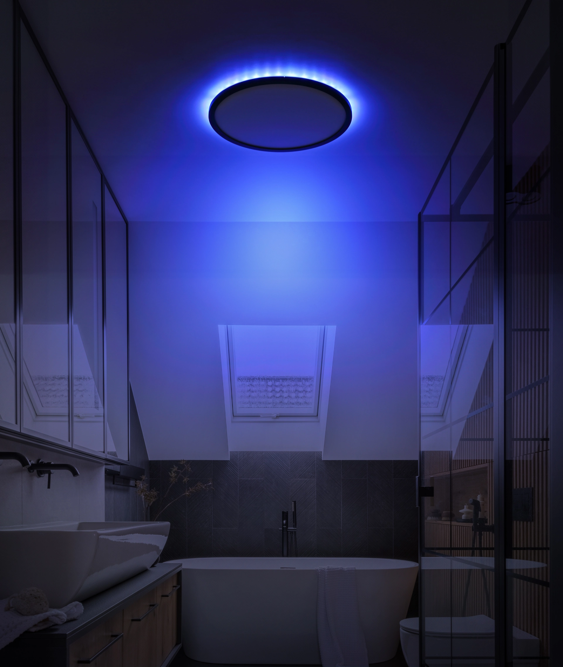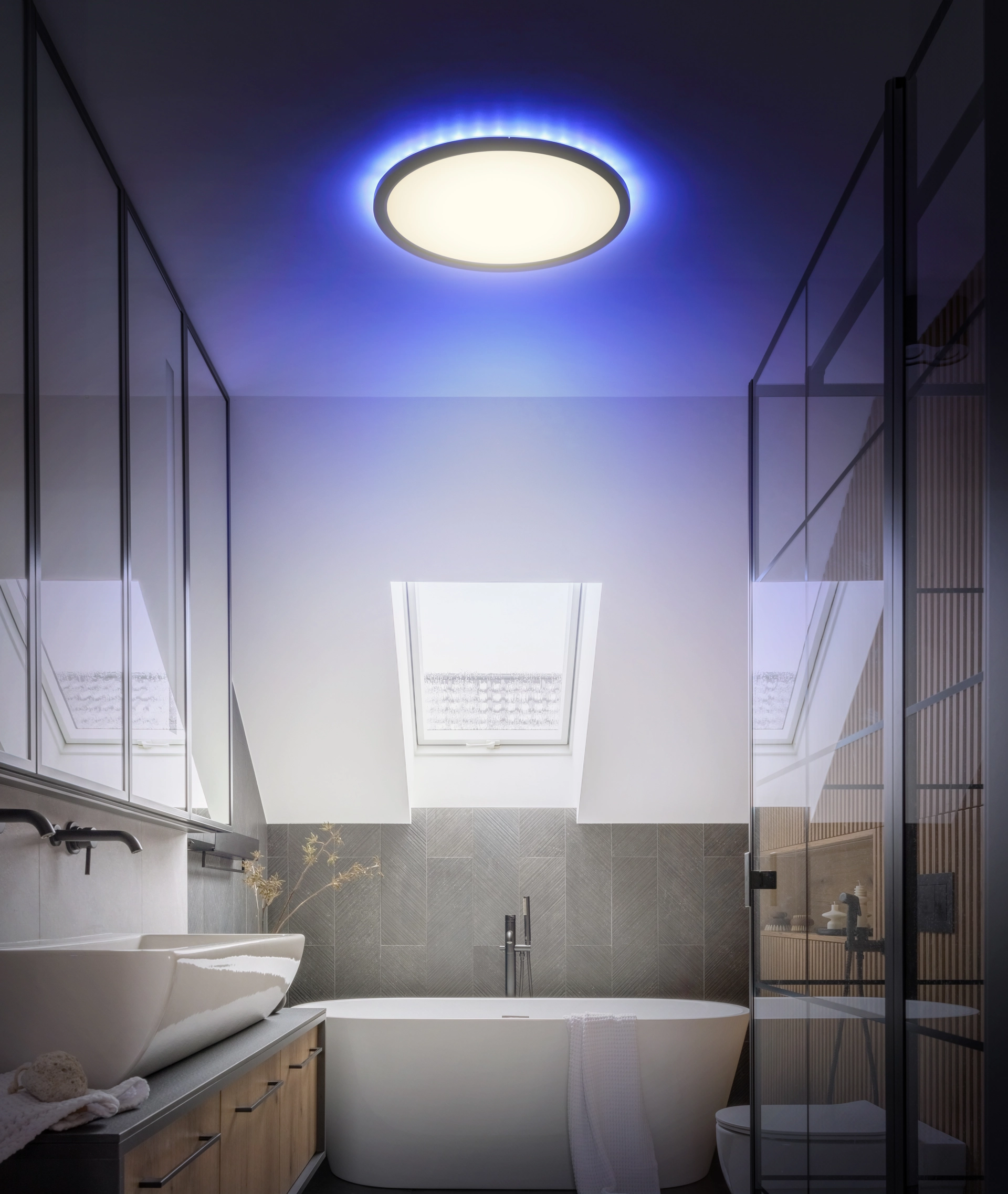 Diese kreisförmige Deckenlampe Sapana (ø 29 cm) eignet sich wunderbar für Ihre Innenräume. Der schwarze Außenring trägt in Kombination mit ... Mehr erfahren Mehr erfahren