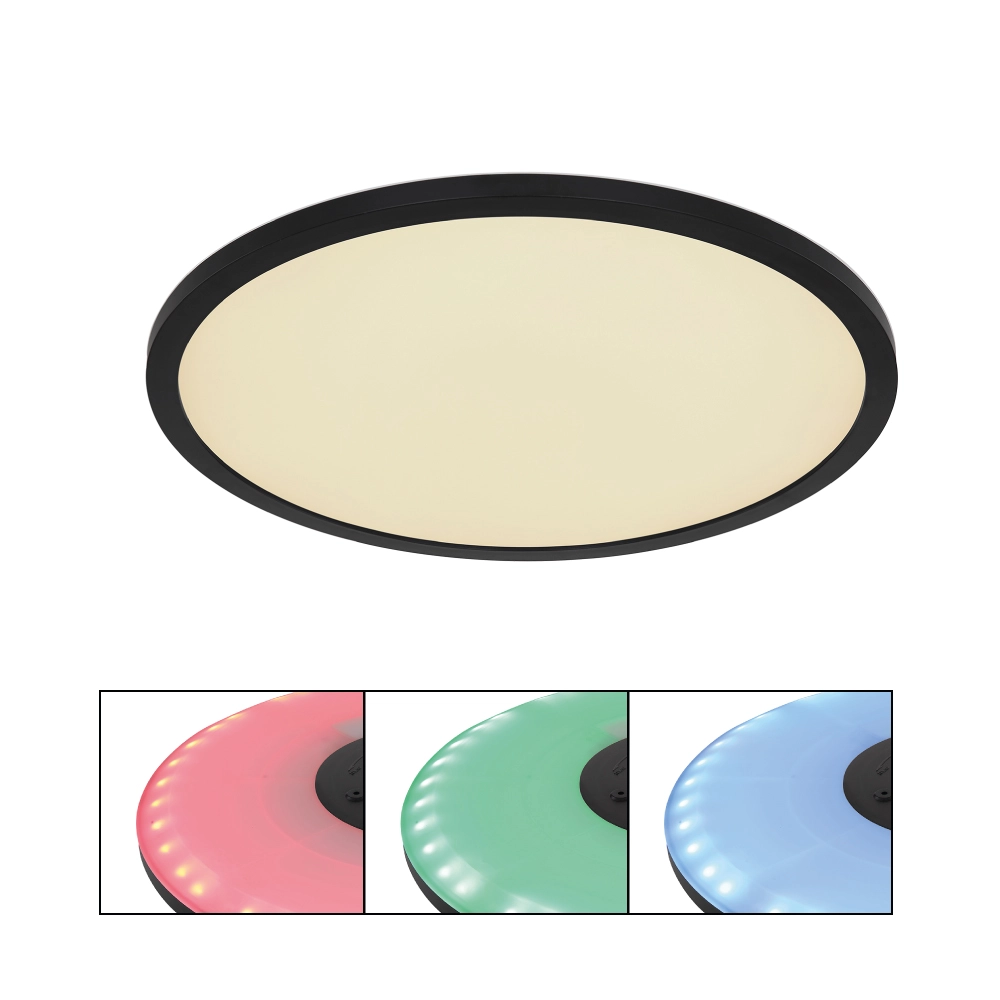 Diese moderne Deckenleuchte begeistert durch Design und Funktionen. In einem schwarzen runden Rahmen (Ø42 cm) befindet sich ein LED-Paneel welches ... Mehr erfahren Mehr erfahren