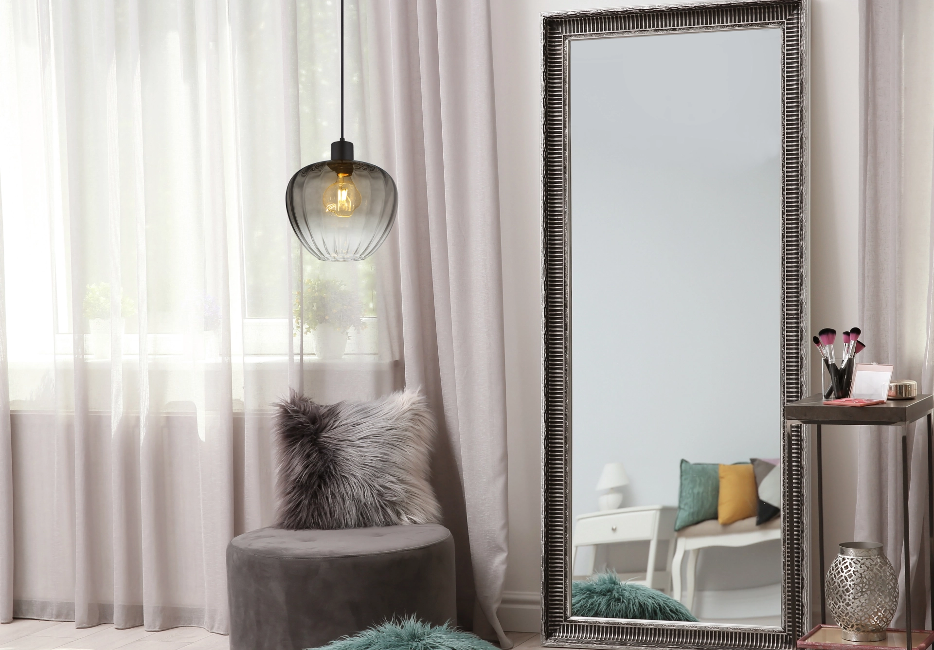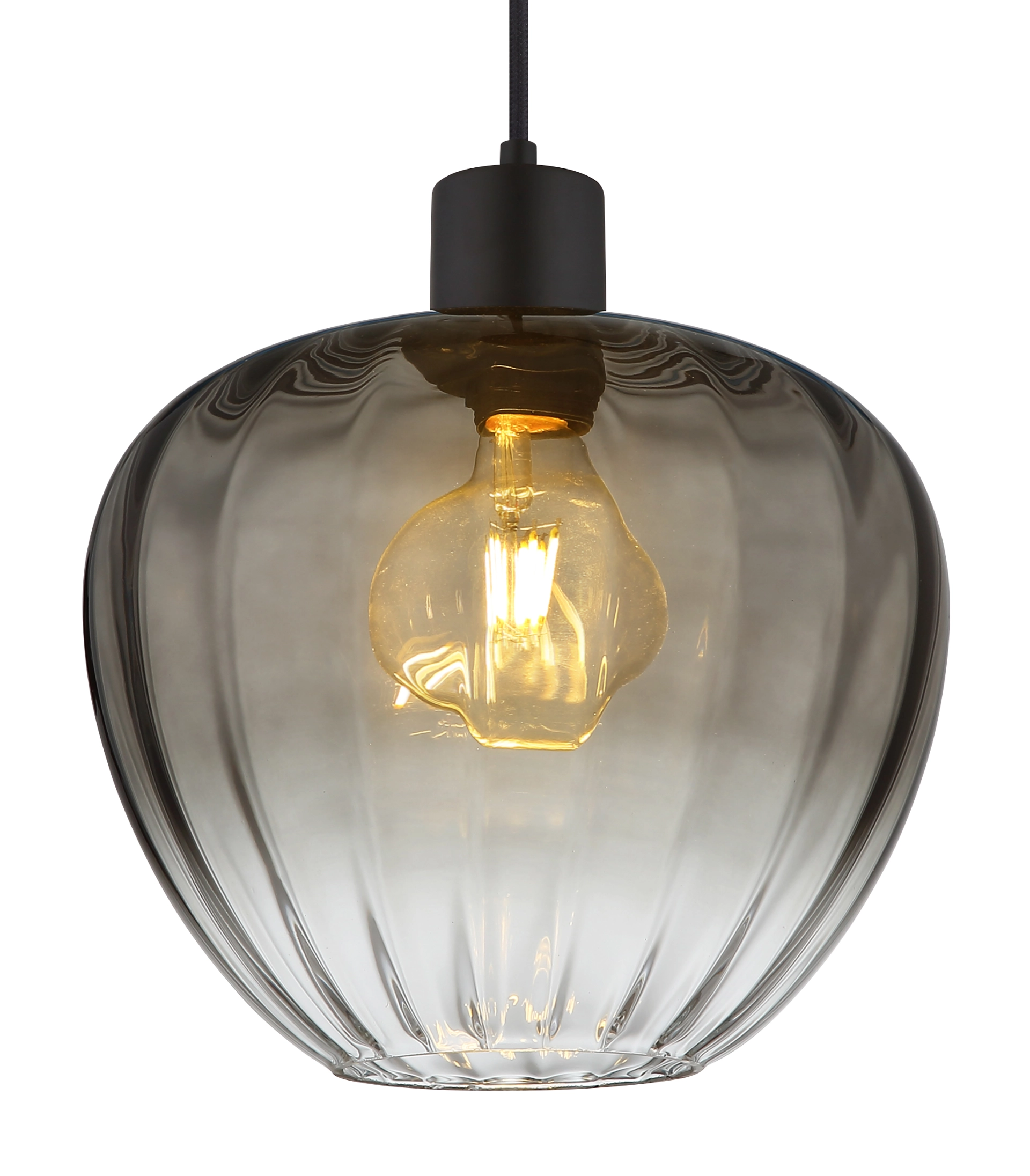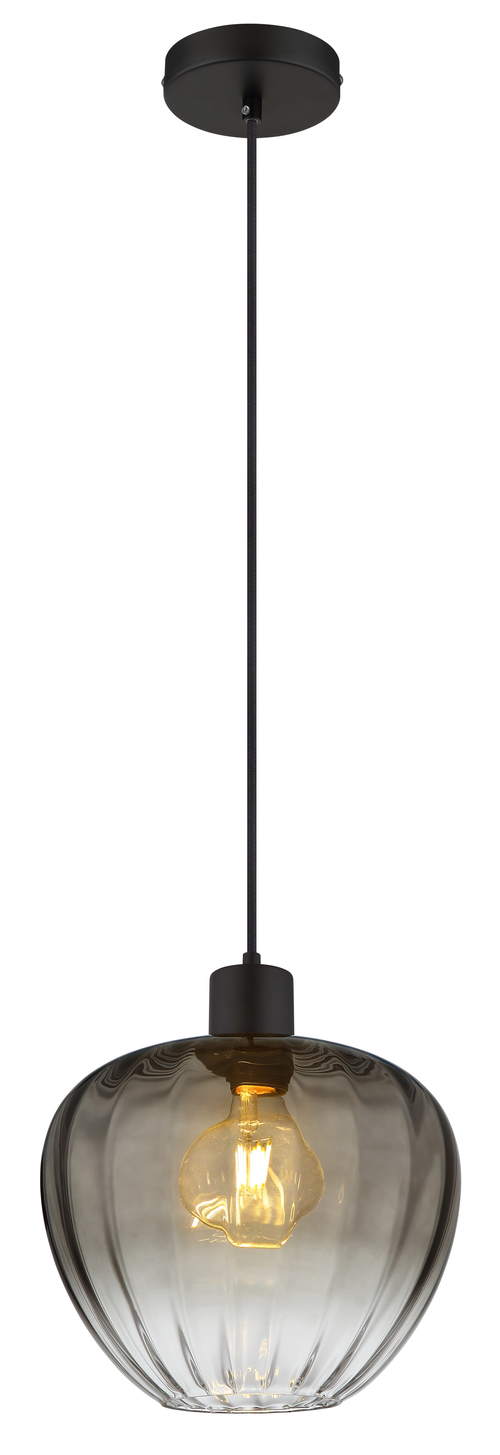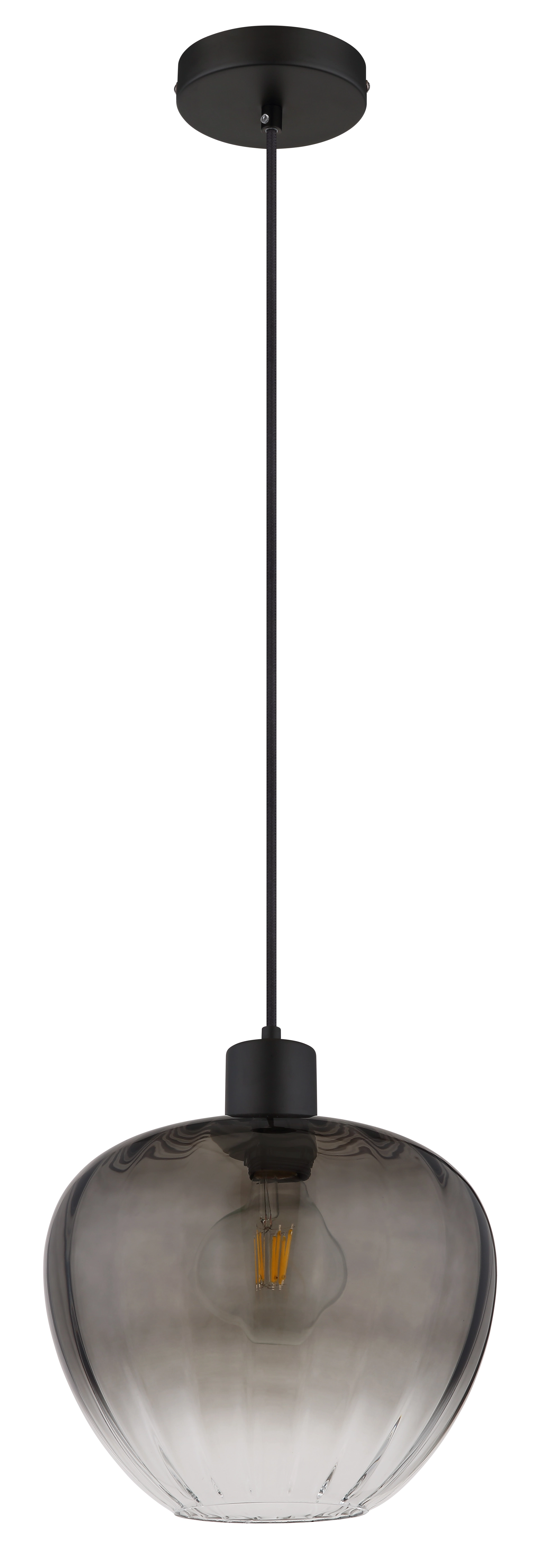 Entdecken Sie die Hängeleuchte TOY, ein elegantes und modernes Lichtobjekt, das jeden Raum aufwertet. Mit ihrem wahren Runddesign und dem bauchigen Glas, das mit stilvollen Rillen verziert ist, bietet diese Pendelleuchte sowohl Funktionalität als auch ästhetische Anziehungskraft. Der Schirm aus rauchfarbenem Glas sorgt für ein sanftes, diffuses Licht, das eine gemütliche Atmosphäre schafft. Der Korpus aus matt schwarzem Metall verleiht der Leuchte zudem eine zeitgemäße Note und passt perfekt zu verschiedenen Einrichtungskonzepten. Mit einem Durchmesser von 290 mm ist die Hängeleuchte TOY ideal für den Einsatz über Esstischen, in Küchen oder als Akzentbeleuchtung in Wohnräumen. Bitte beachten Sie, dass die Leuchte exklusive der benötigten E27-Lampe geliefert wird, um Ihnen die Möglichkeit zu geben, die perfekte Lichtstimmung für Ihr Zuhause zu wählen. Setzen Sie mit TOY stilvolle Lichtakzente und genießen Sie eine einladende Atmosphäre!