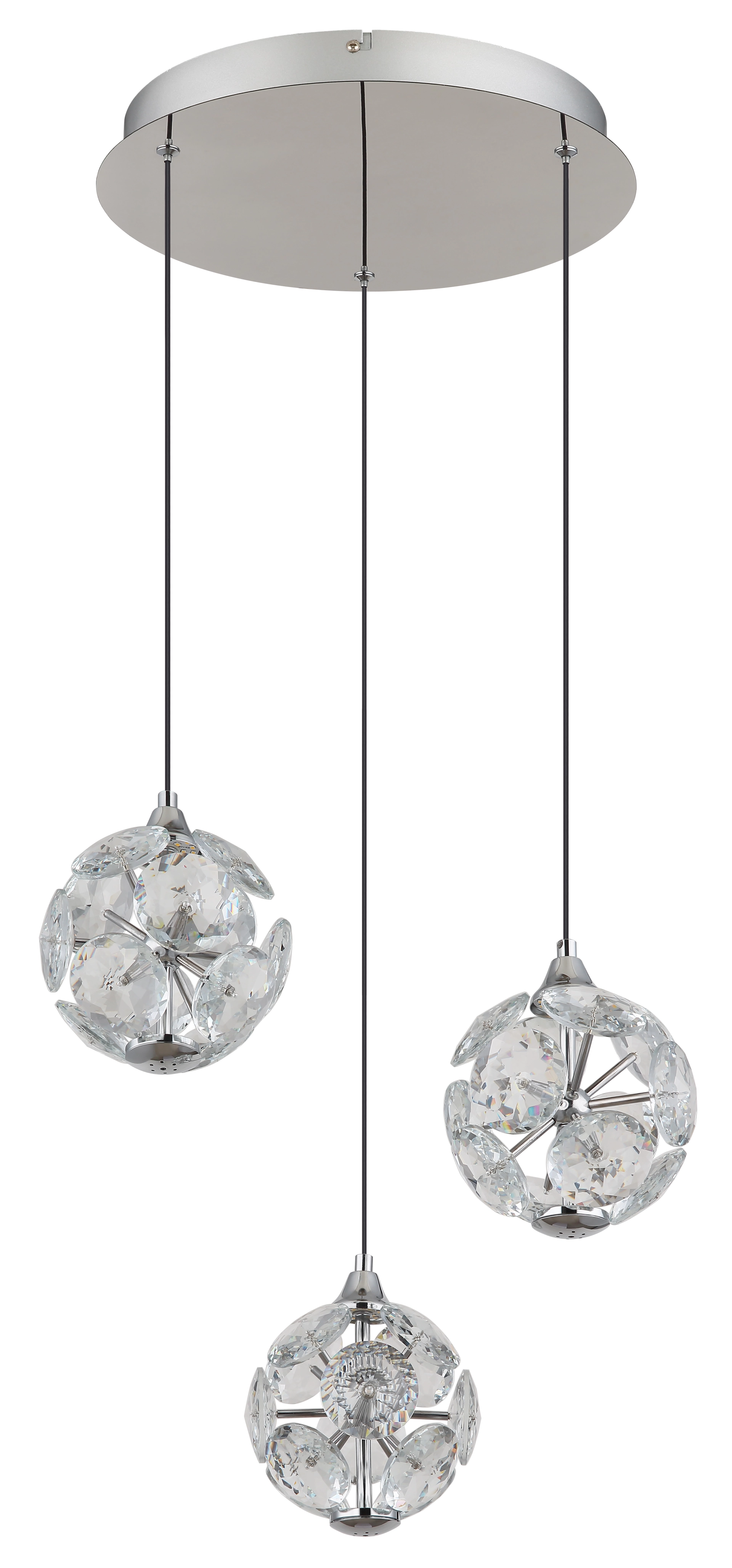 Die Hängeleuchte VARINA vereint edles Design mit beeindruckender Lichtqualität. Mit ihrem verchromten Metall-Korpus und den klaren K9 Kristallen sorgt sie für einen eleganten und modernen Look, der jedem Raum einen Hauch von Luxus verleiht. Das schwarze PVC-Kabel ermöglicht eine flexible Anpassung der Höhe, die sich auf bis zu 1500 mm kürzen lässt, während der Durchmesser der Leuchte 420 mm beträgt. Die LED-Technologie mit 24 Watt und 230 Volt sorgt für eine starke Lichtausbeute von 2700 Lumen bei einem Lichtstrom von 2000 Lumen, und die warme Lichtfarbe von 3000 K schafft eine gemütliche Atmosphäre. Die Hängeleuchte VARINA ist nicht nur ein optisches Highlight, sondern bietet auch effiziente und anpassbare Beleuchtung für jeden Raum.