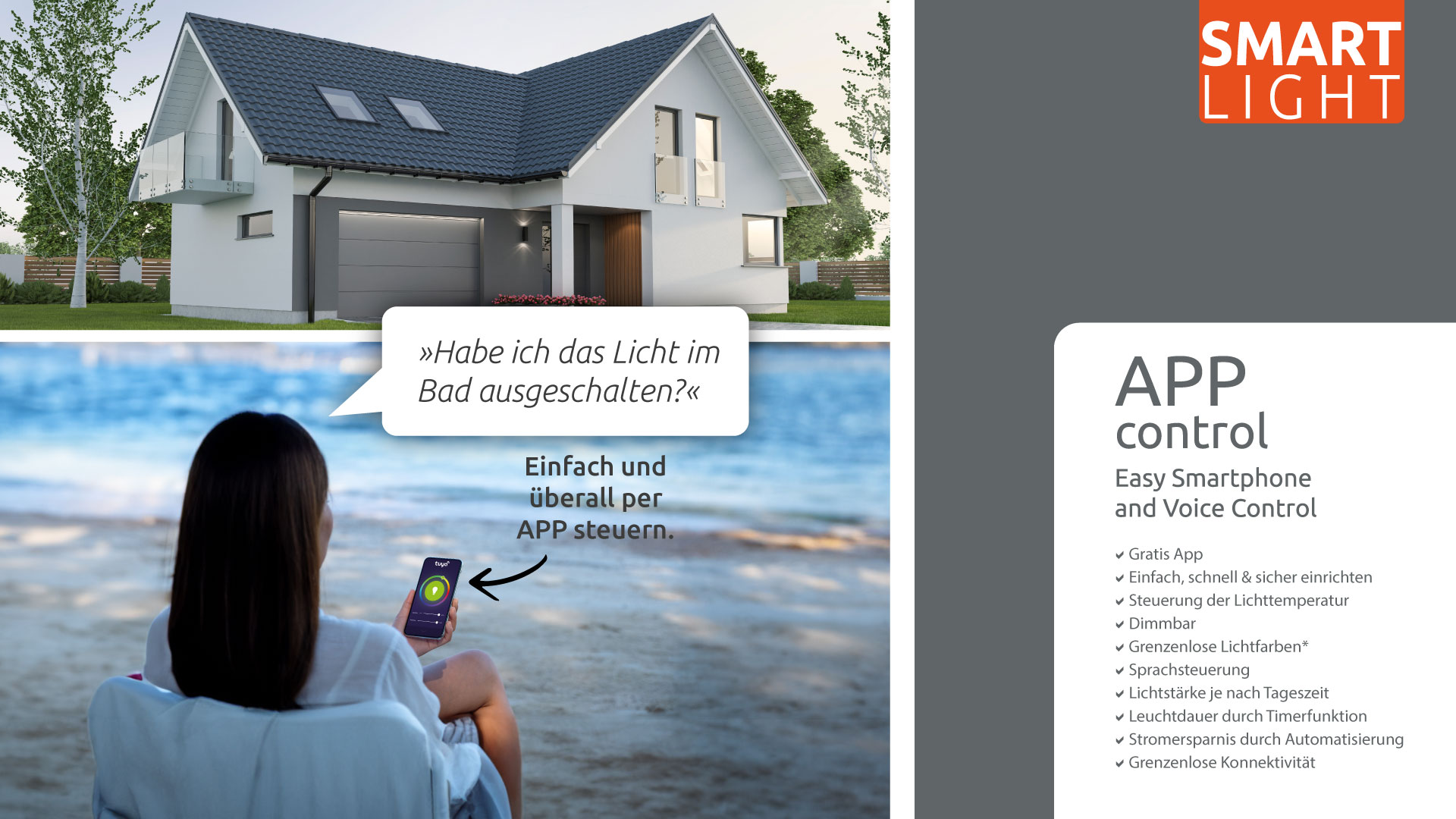 Die Fernzugriffsfunktion von Smart-Light ermöglicht es, das Licht einzuschalten, bevor man nach Hause kommt, oder es von der Couch aus zu steuern. Dies erhöht das Sicherheitsgefühl und den Komfort im eigenen Zuhause.