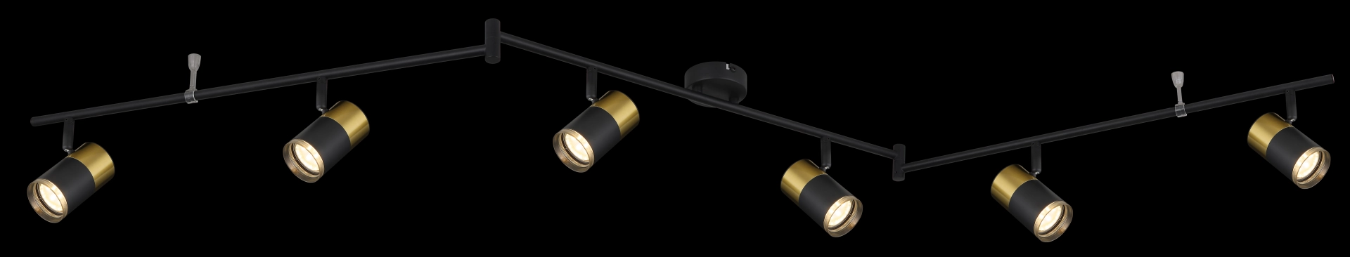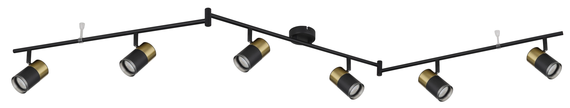 Das Spotsystem mit geraden zylindrischen Strahlern und Dekorring präsentiert eine zeitgemäße und stilvolle Möglichkeit, Ihre Räume effektvoll zu beleuchten. Die sechs Strahler des Systems bestechen durch einen Korpus aus mattem schwarzen Metall und Schirme aus Aluminium in kupferfarbener Mattierung sowie schwarzen Aluminium- und rauchfarbenen Kunststoffschirmen. Mit einer Länge von 1800mm und einer Breite von 80mm fügen sich die Strahler harmonisch in Ihre Einrichtung ein und sorgen für eine angenehme Lichtverteilung. Jeder Strahler benötigt eine Leistung von 25W, um eine ausreichende Helligkeit zu gewährleisten. Der elegante Dekorring verleiht den Strahlern eine noble Note und setzt stilvolle Akzente in Ihrem Zuhause. Erleben Sie mit diesem modernen Spotsystem eine neue Dimension der Beleuchtung und schaffen Sie eine einladende Atmosphäre in Ihren Räumen.