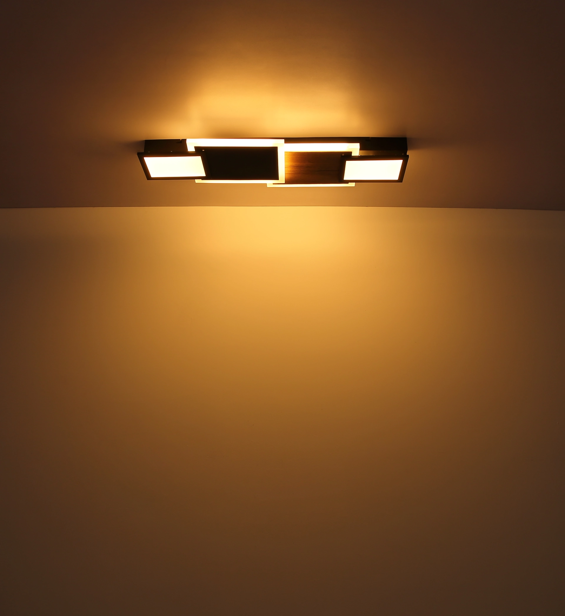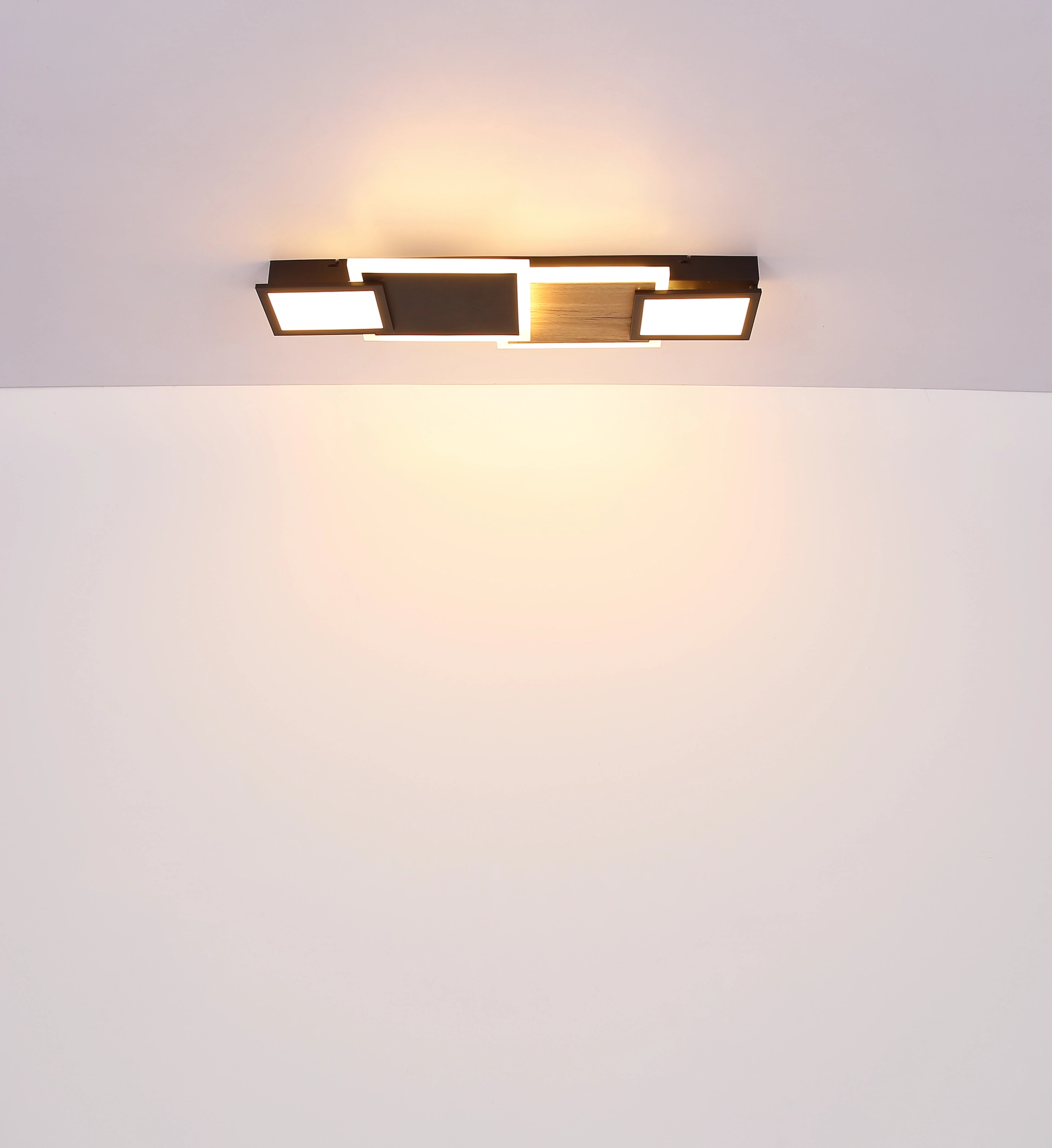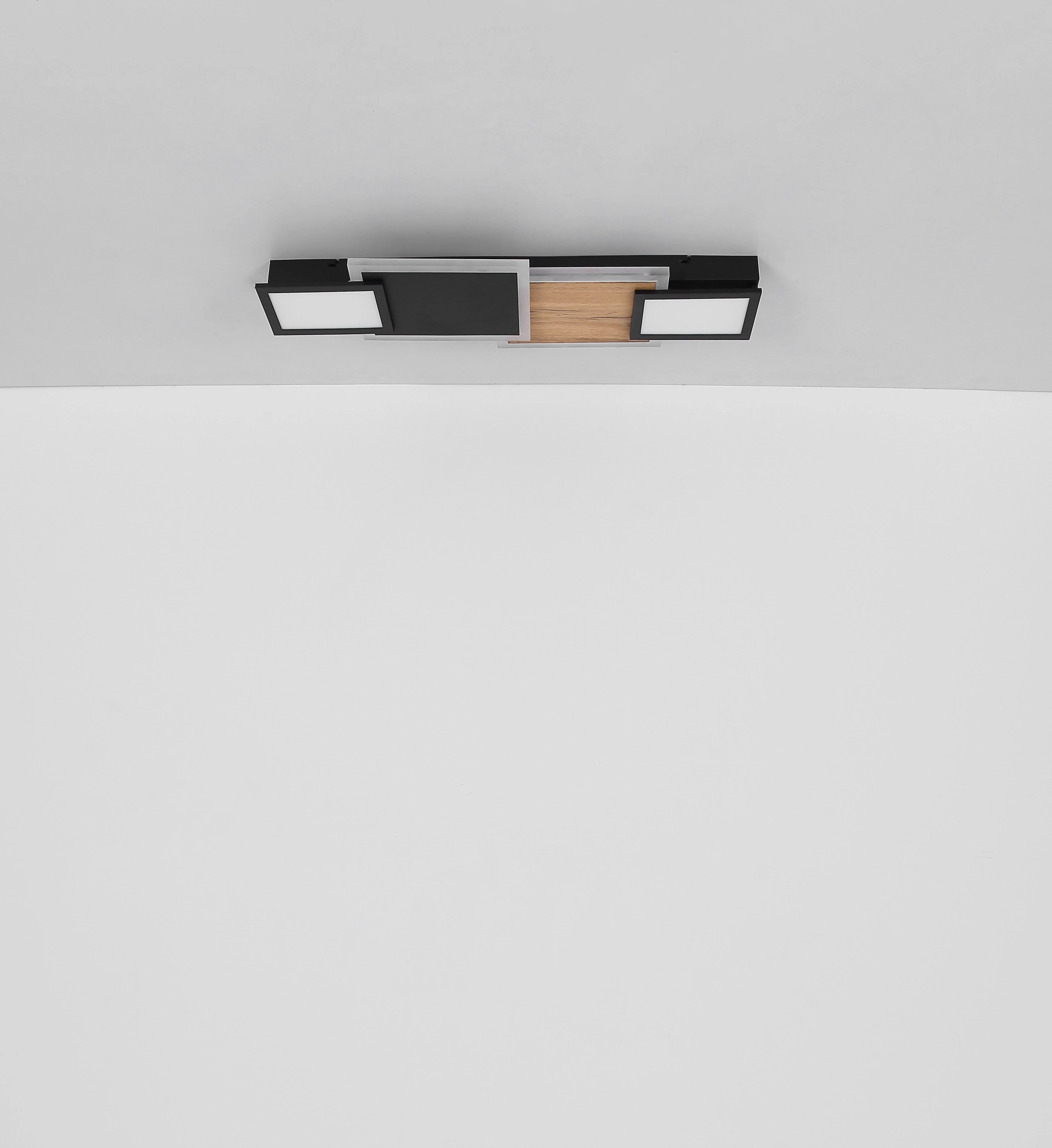 Diese auffallend, schöne Deckenleuchte begeistert durch tolles Design. An einer rechteckigen Deckenbefestigung befinden sich vier LED Paneele in Schwarz mit ... Mehr erfahren Mehr erfahren