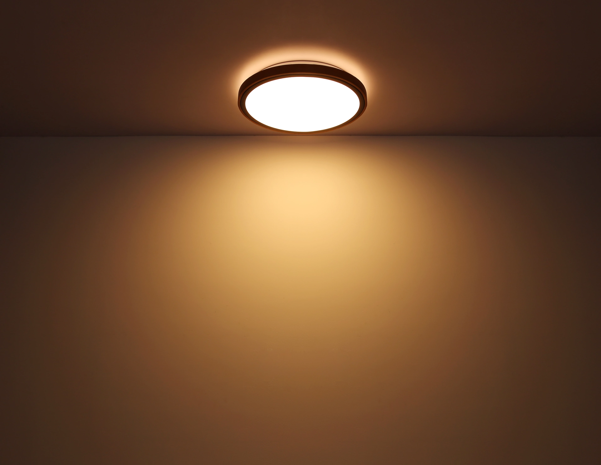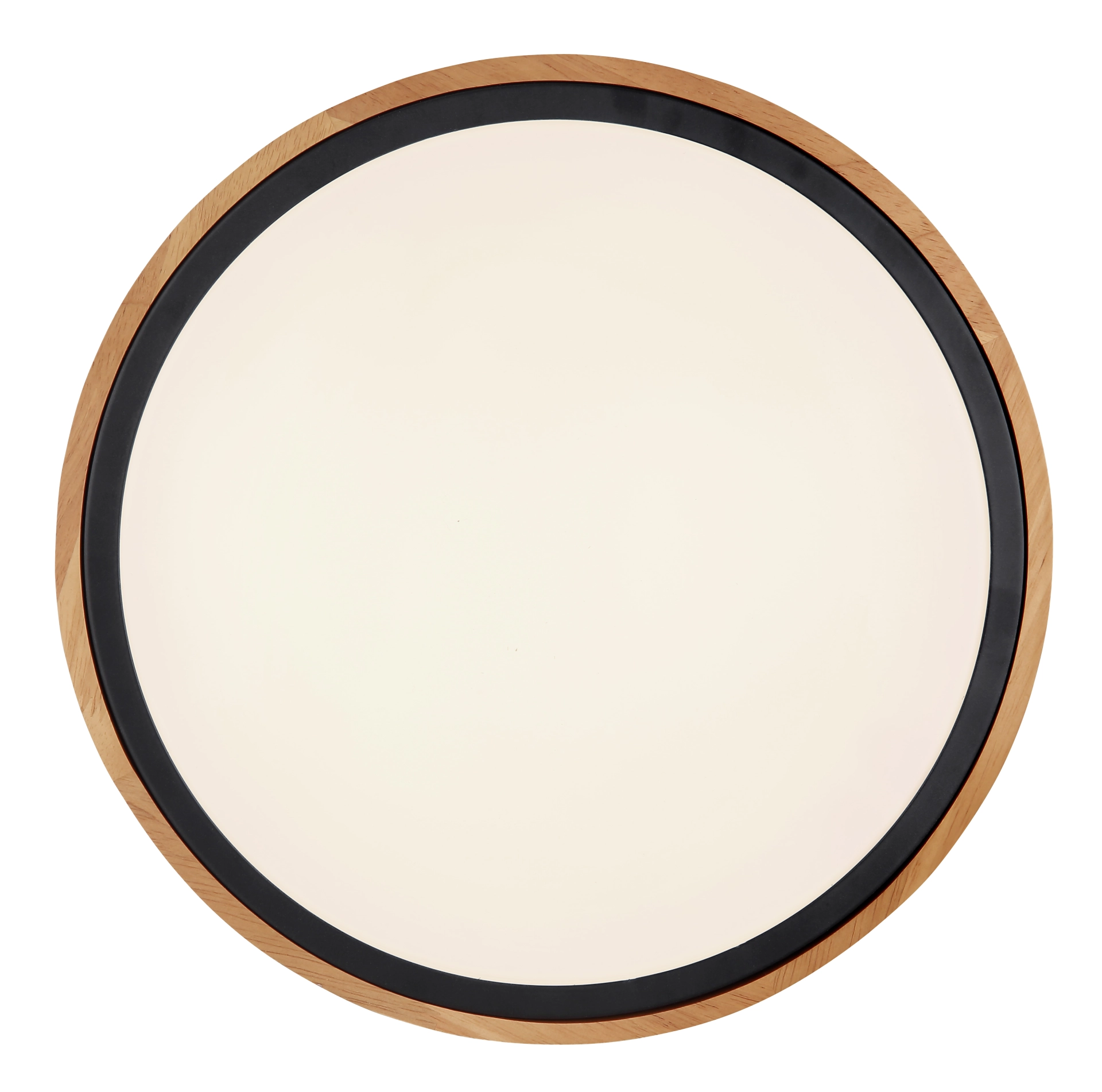 This round ceiling lamp inspires with its beautiful design. In a wooden frame there is an LED board with additional ... Read more Read more