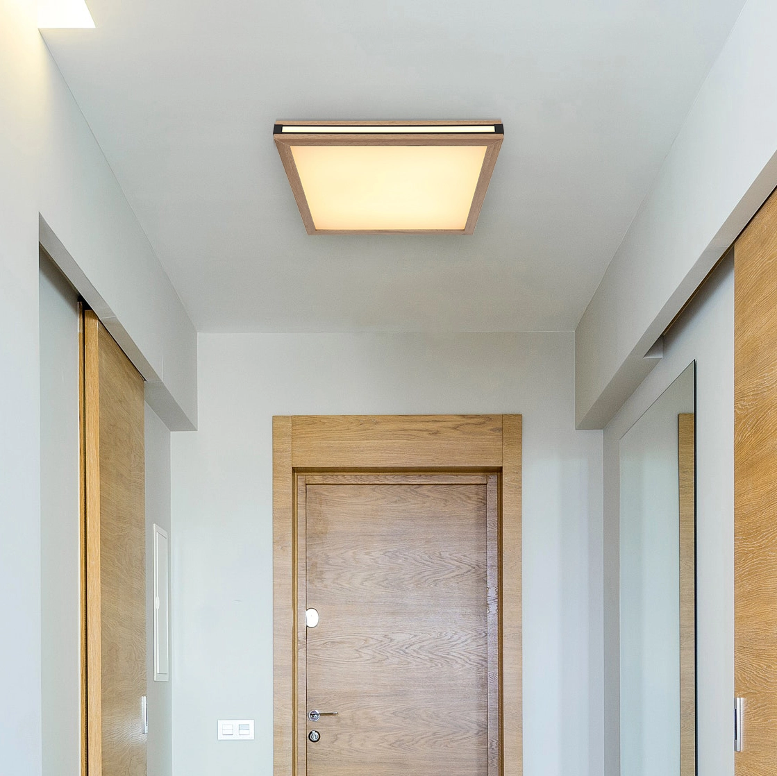 Discover the elegant CARLA ceiling lamp and immerse your home in a harmonious play of light. The CARLA is available in four stylish variants: classic white metal, matt black metal, dark MDF wood look and opal white plastic. With its multi-level lighting function, the atmosphere can be designed according to your wishes. The wall switch allows you to choose between three levels: 1. main light, 2. side light, 3. both together. Thanks to the practical memory function, the CARLA retains your preferred settings. With dimensions of 450x450x75 mm, this ceiling lamp fits perfectly into any room. It contains an energy-efficient LED with 24W and 20W, which deliver 2650lm or 2250lm source and 1340lm or 1110lm output at a pleasant color temperature of 3000K. The CARLA is the ideal companion for atmospheric and stylish lighting in your home.