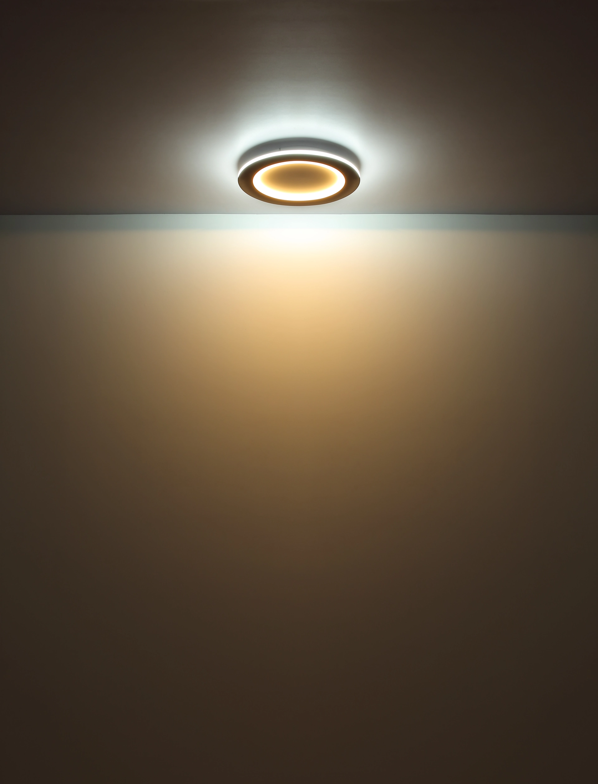 The ceiling lamp is made of white matt metal and acrylic in wood look as well as opal acrylic arranged in a diameter of 400 mm. The lamp comes with an LED bulb with a power of 30 W and a voltage of 230 V. The light source has a brightness of 4230 lm source and an output power of 1690 lm at a color temperature of 2700-6500K. The inner LEDs have a color temperature of 2700K and the outer LEDs have a color temperature of 6500K. This ceiling lamp is a real eye-catcher and is ideal for modern living spaces. With the LED lamp, you save energy and protect the environment.