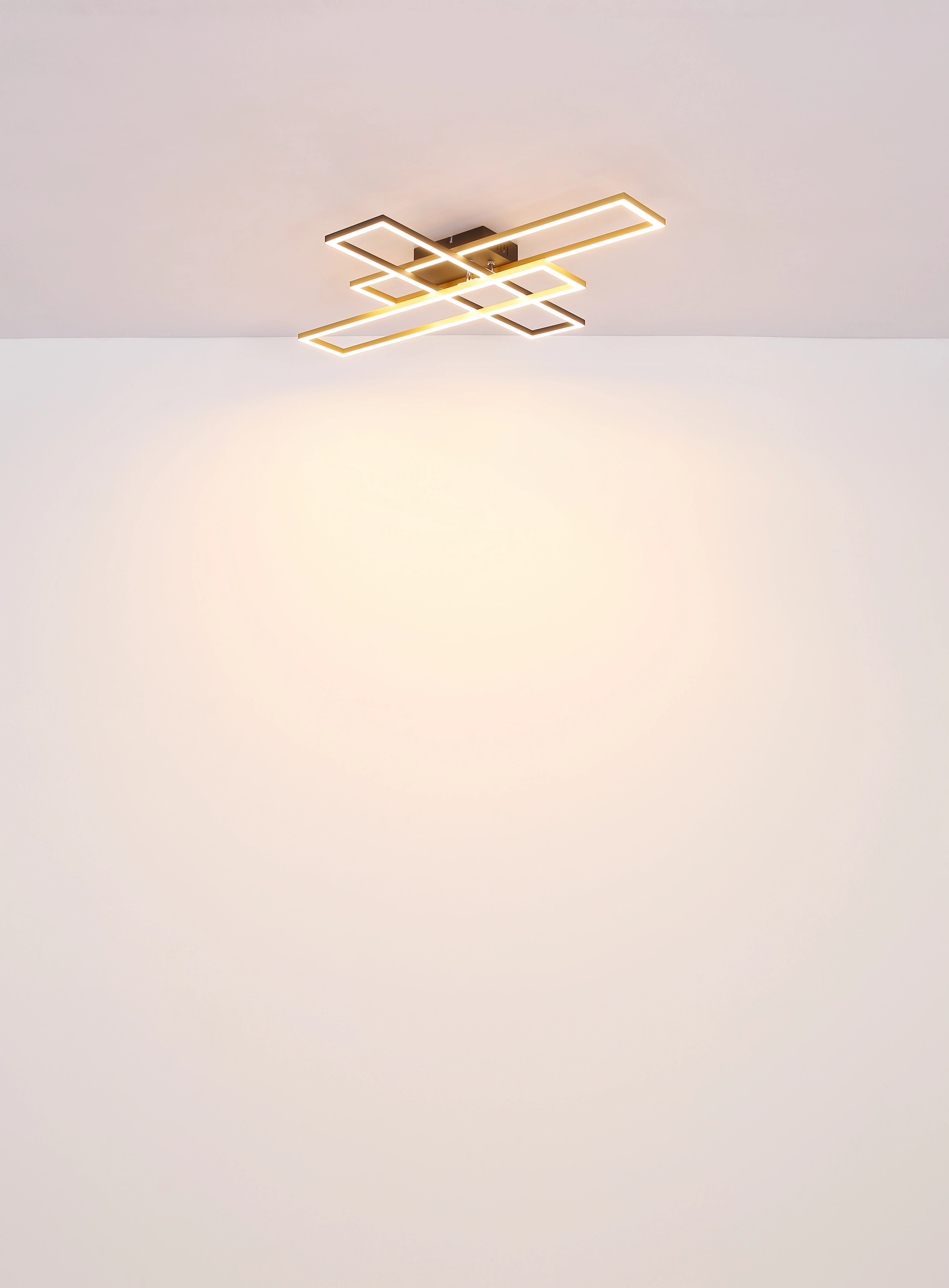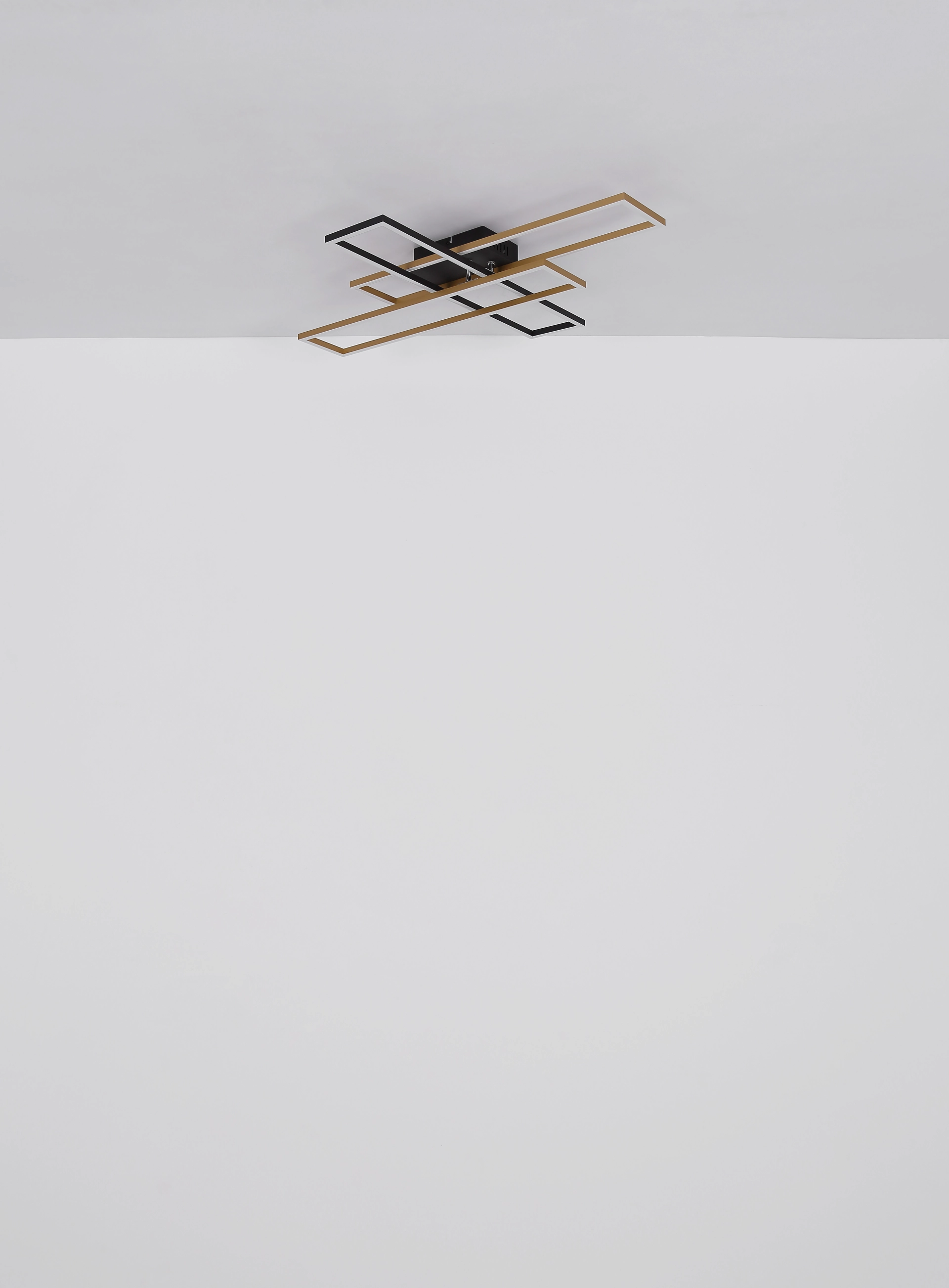 The modern ceiling lamp made of black matt metal, aluminium in black and gold as well as opal plastic is ... Read more Read more