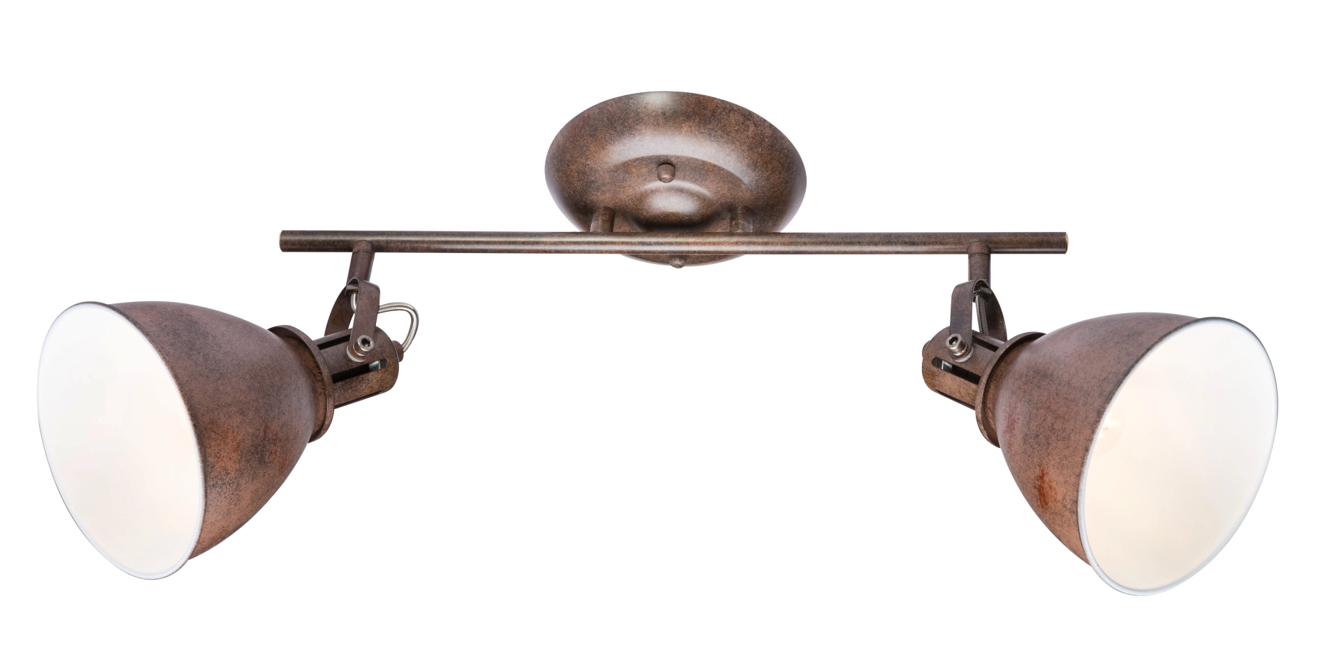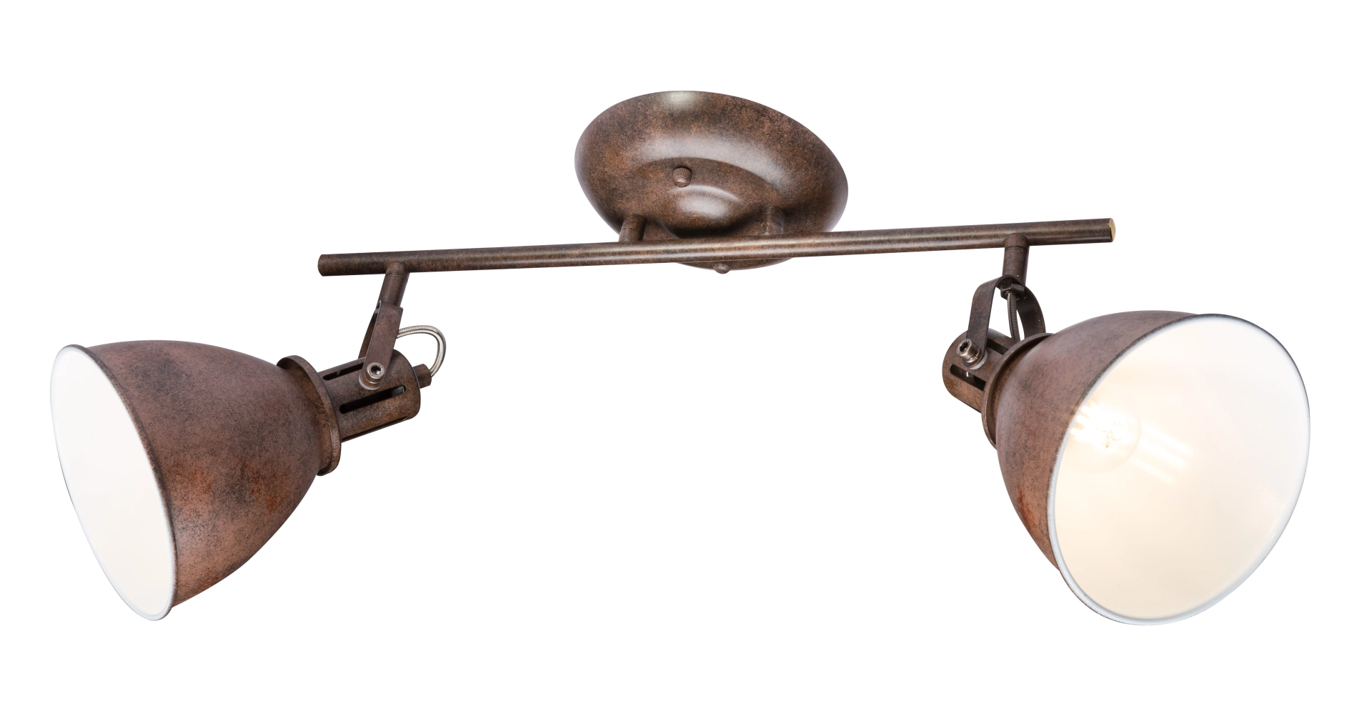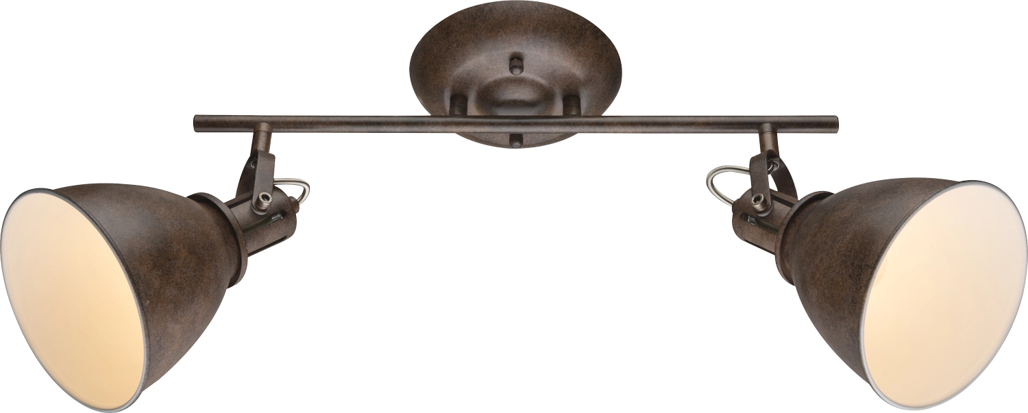 Two movable rust-coloured spotlights, on the inside in white colour, are beautifully attached to a rail in the Giorgio ceiling ... Read more Read more