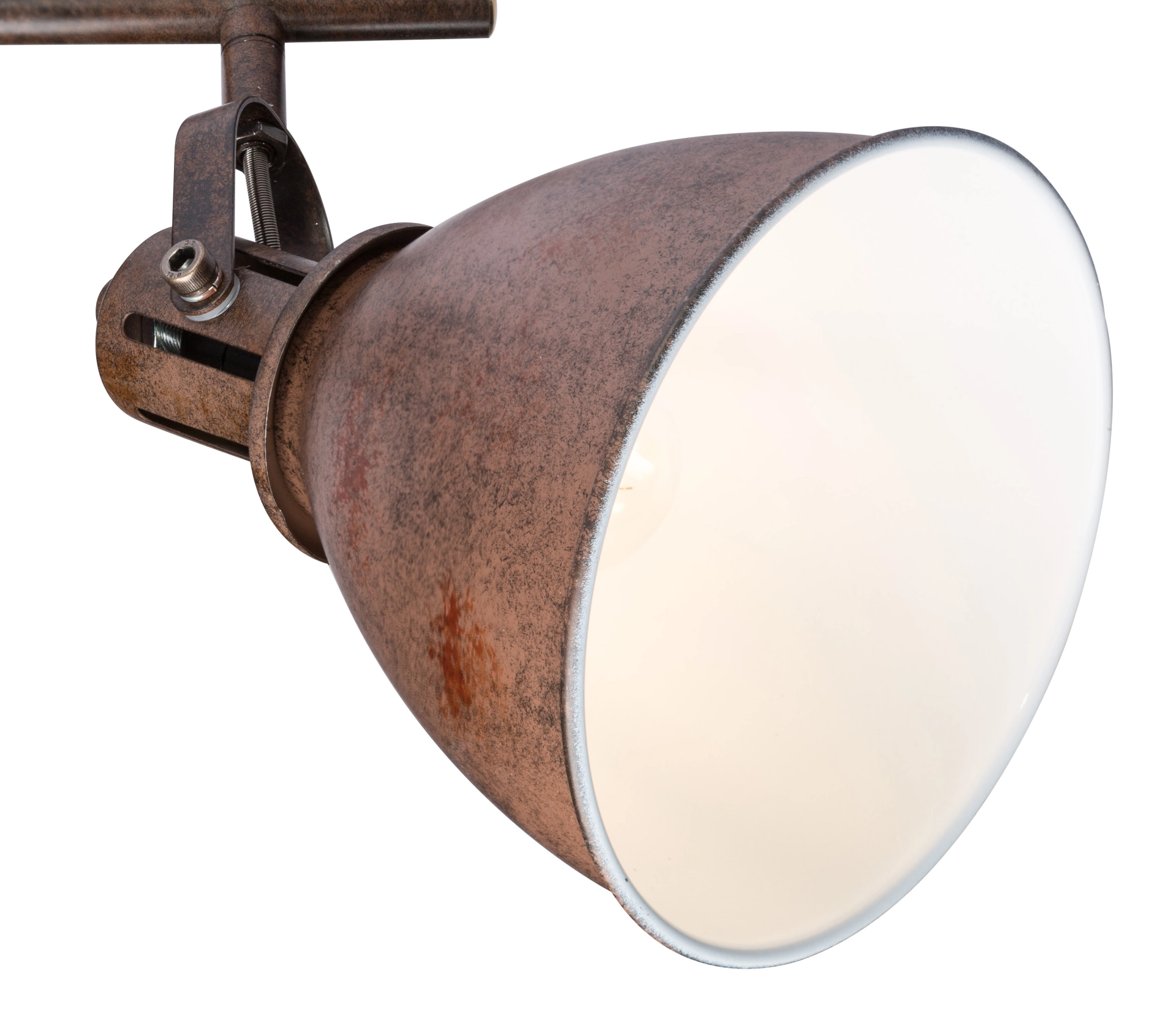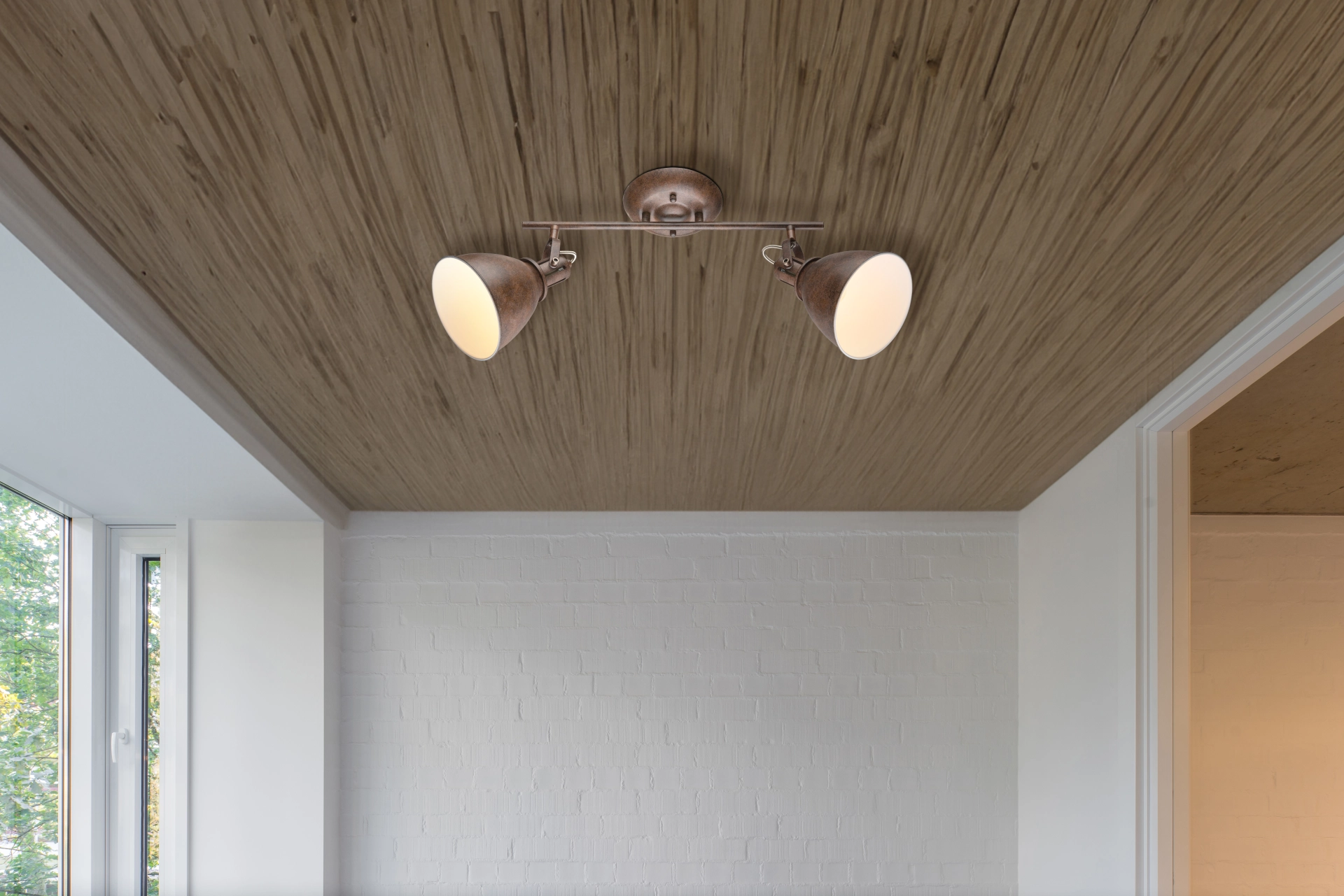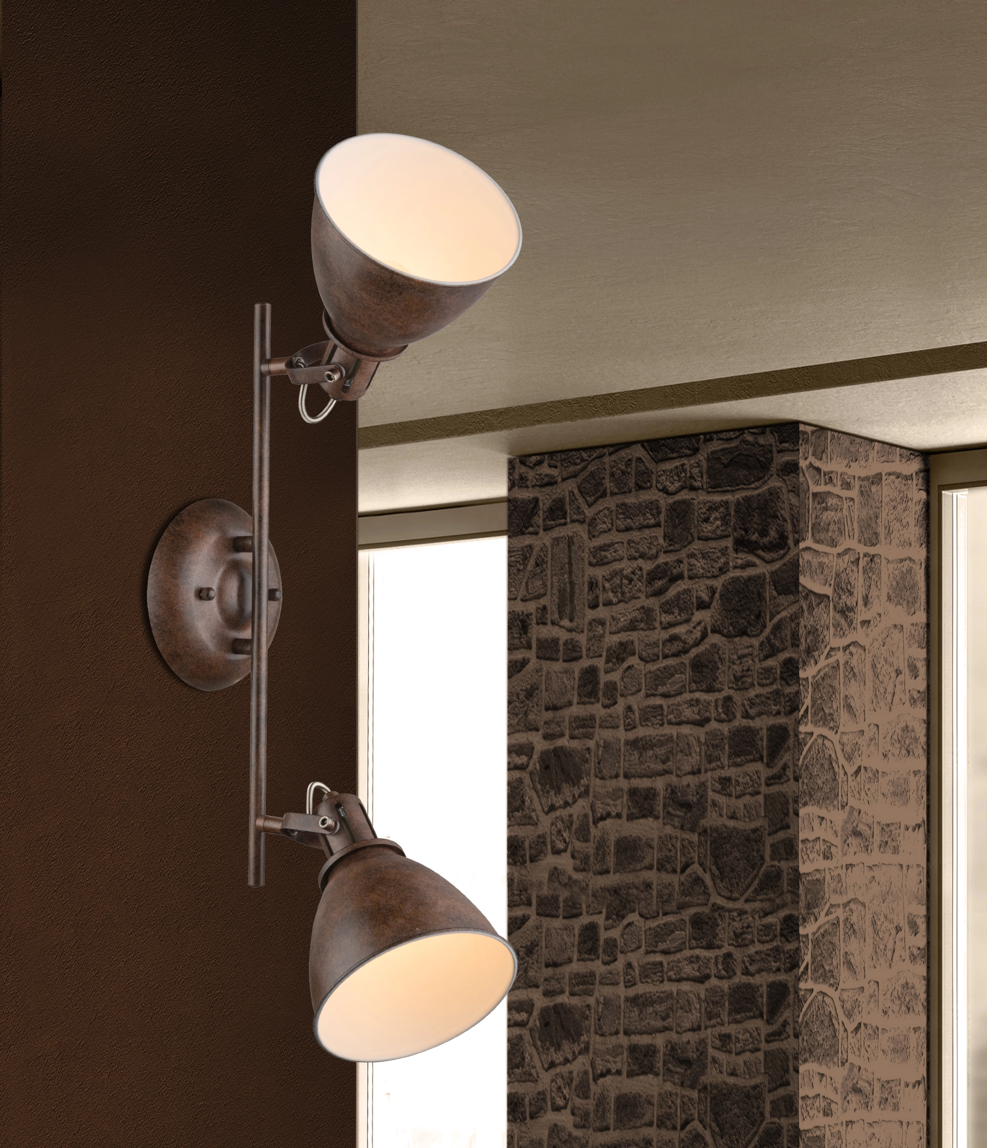 Two movable rust-coloured spotlights, on the inside in white colour, are beautifully attached to a rail in the Giorgio ceiling ... Read more Read more