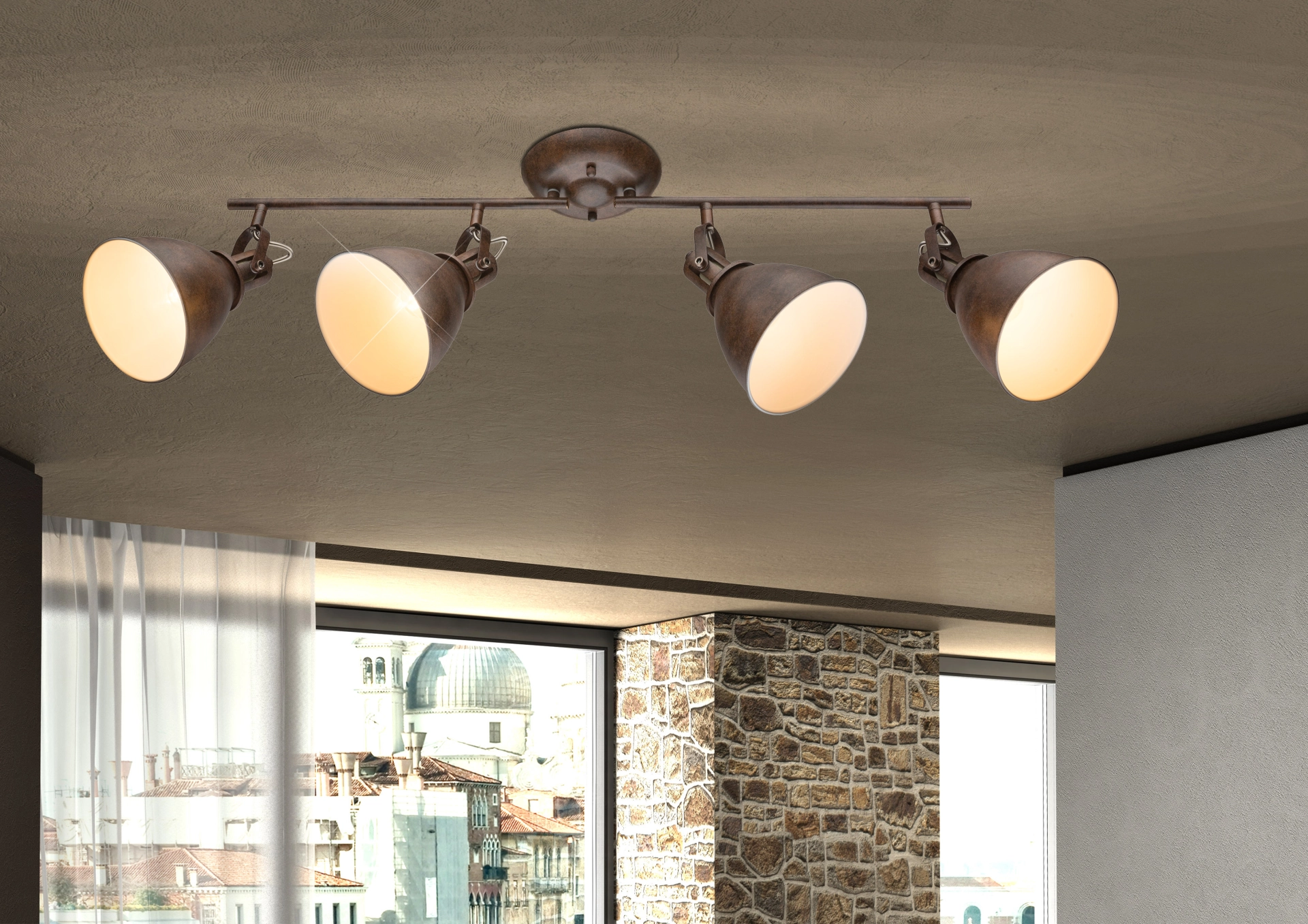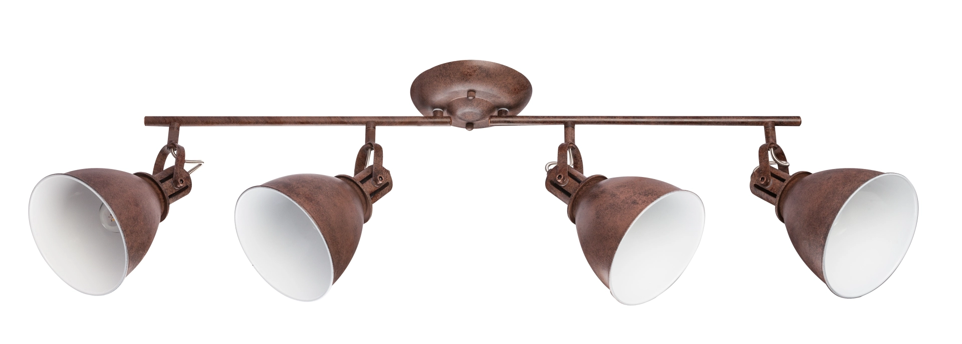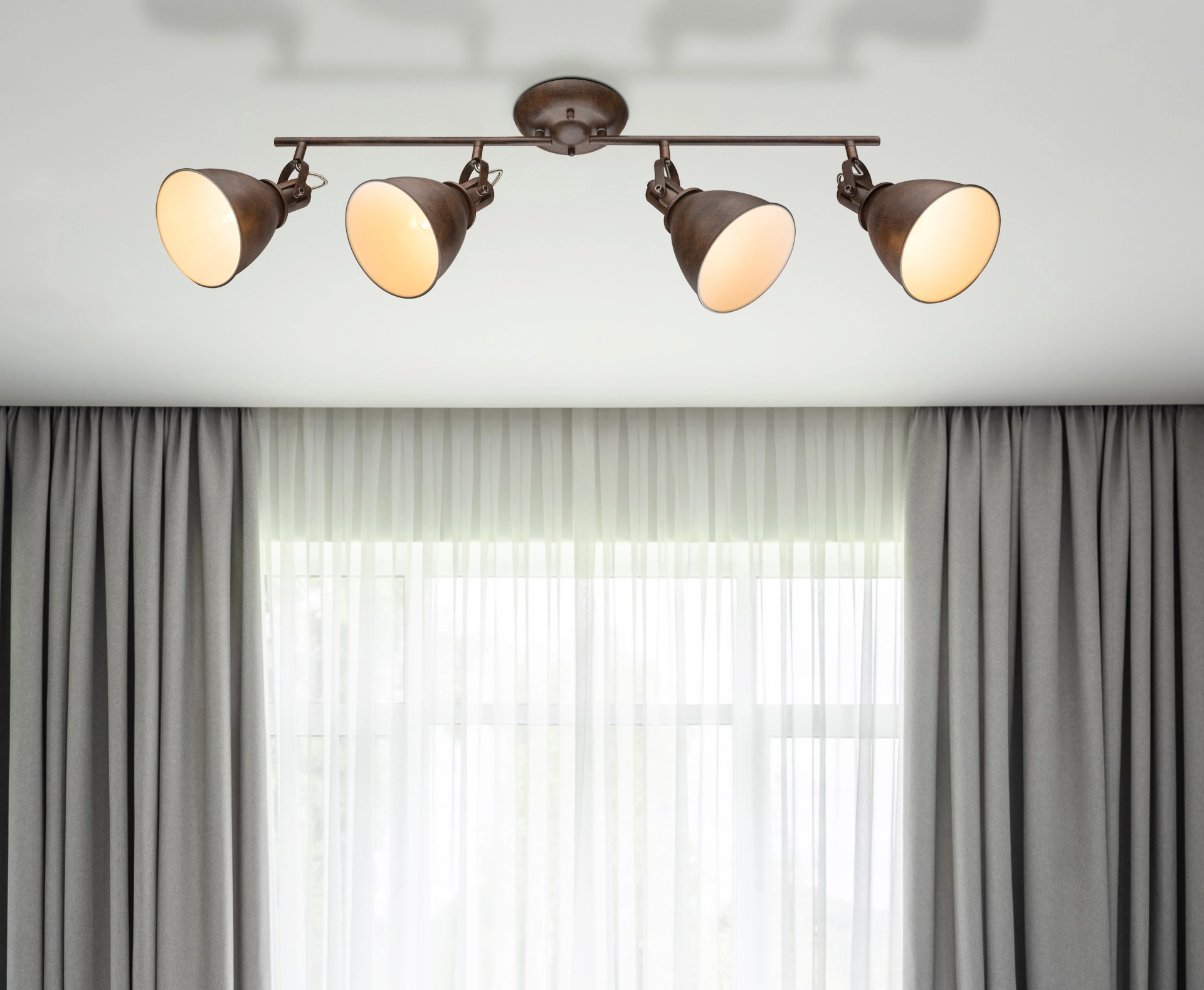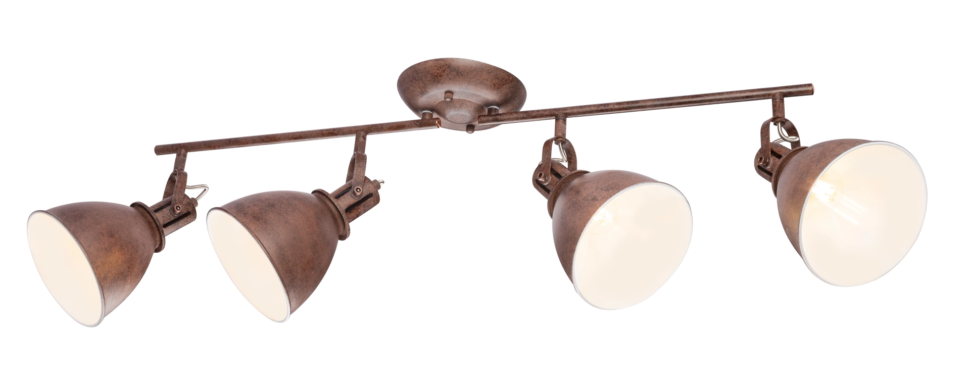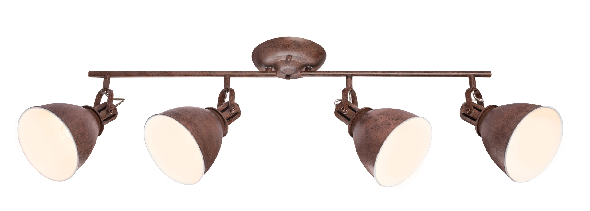 Four rust-colored spotlights (shade interior color: white) are beautifully attached to two separate arms of the Giorgio ceiling lamp and, ... Read more Read more