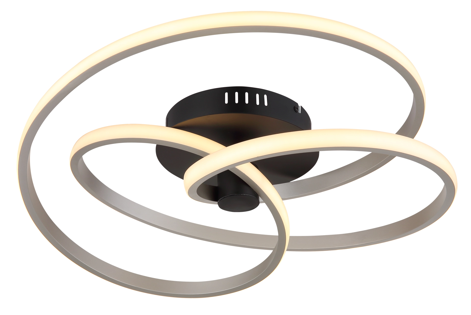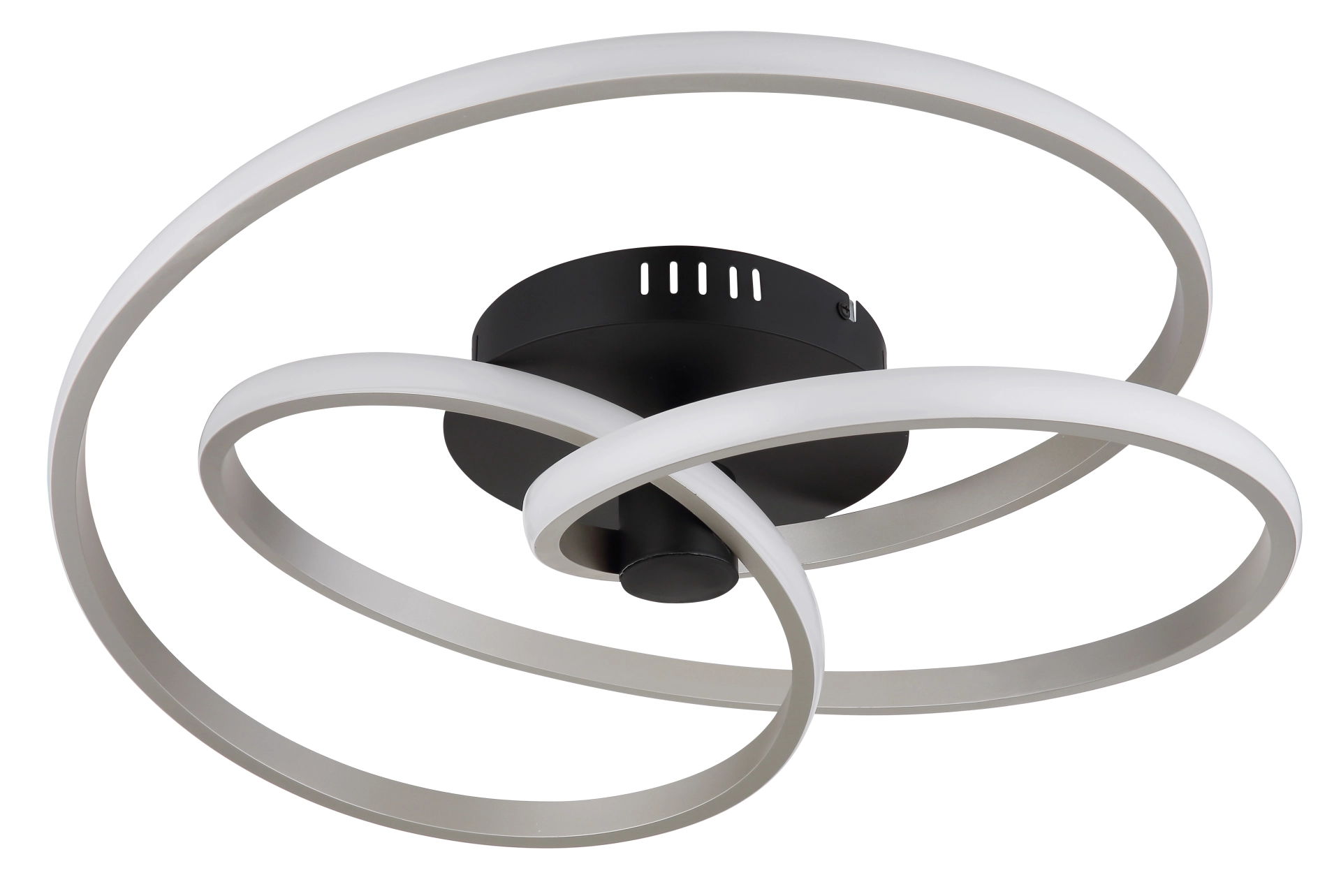 The ceiling lamp in a round design impresses with a unique knot detail and is a great eye-catcher for any room. The body made of black matt metal gives the lamp a modern and elegant appearance. The shade made of matt nickel-aluminium and opal plastic ensures a pleasant distribution of light in the room. With a diameter of 500mm and a color temperature of 3000K, the ceiling lamp gives off a warm light that creates a cozy atmosphere. Equipped with energy-saving LED technology, it is not only efficient but also durable. This ceiling light not only offers a practical lighting solution, but also an appealing design element for your home. Set stylish accents in your living room with this ceiling lamp in black matt metal and nickel shade.