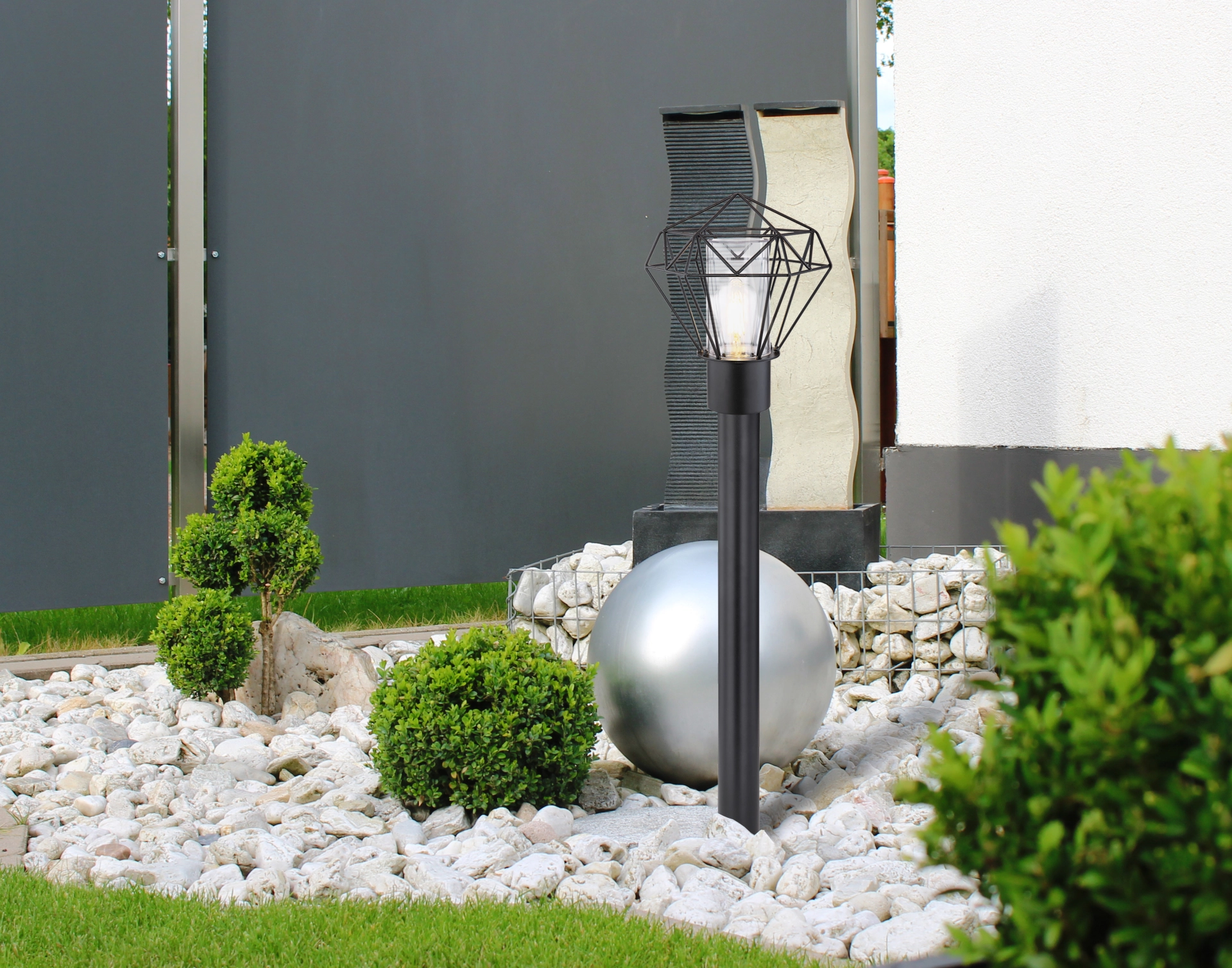 This outdoor light made of black metal is perfect for your outdoor use. The expressive lampshades consisting of a black metal mesh is definitely an eye-catcher! The luminaire is 100 cm high and has an E27 socket with a maximum power of 1x15 watts. It is possible to determine the light intensity or color yourself, as the bulb is not included in the scope of delivery. Due to their power savings and longevity, we recommend LED bulbs.