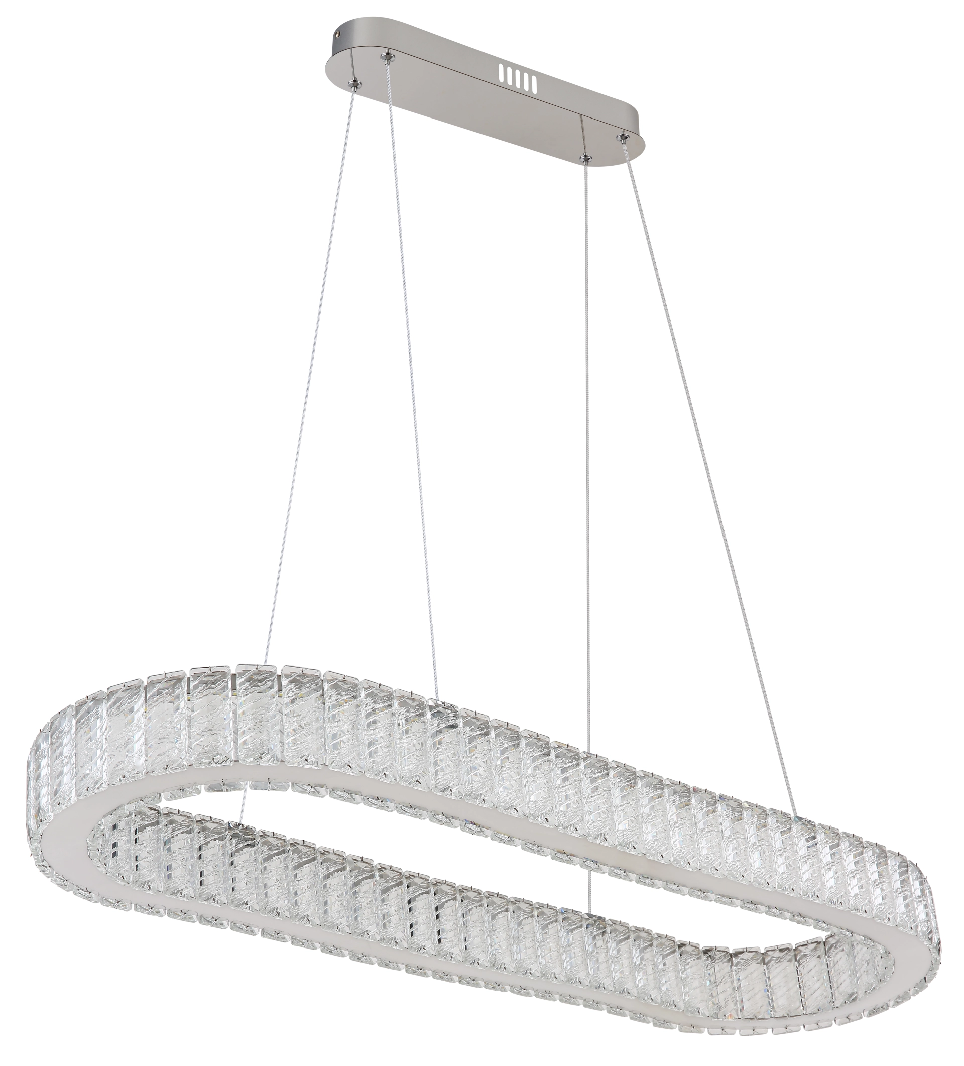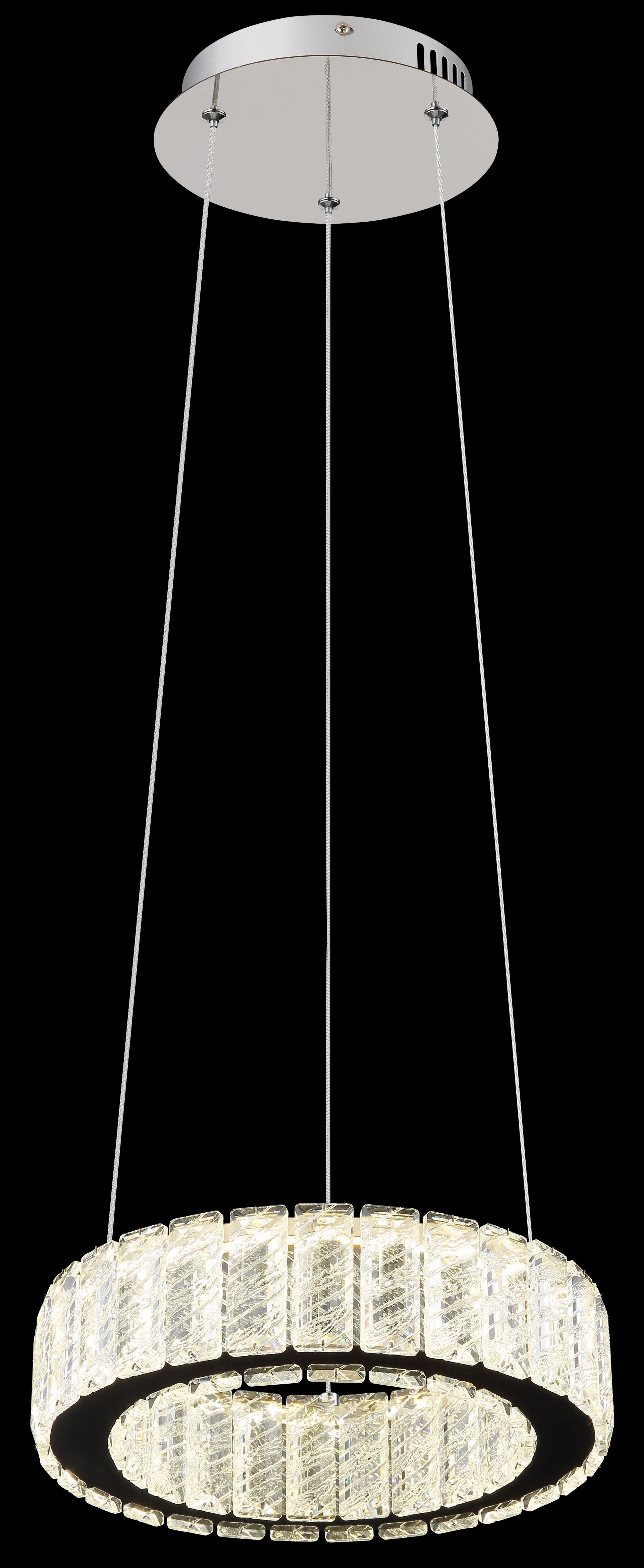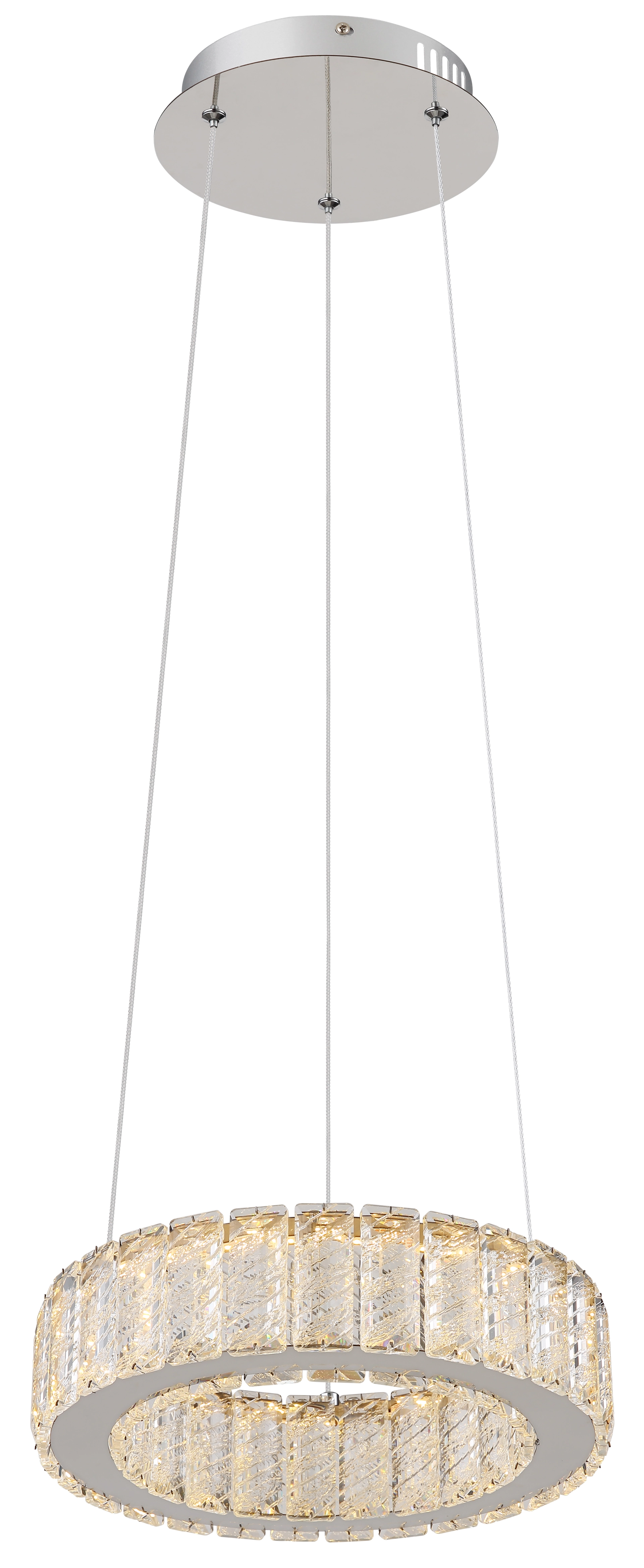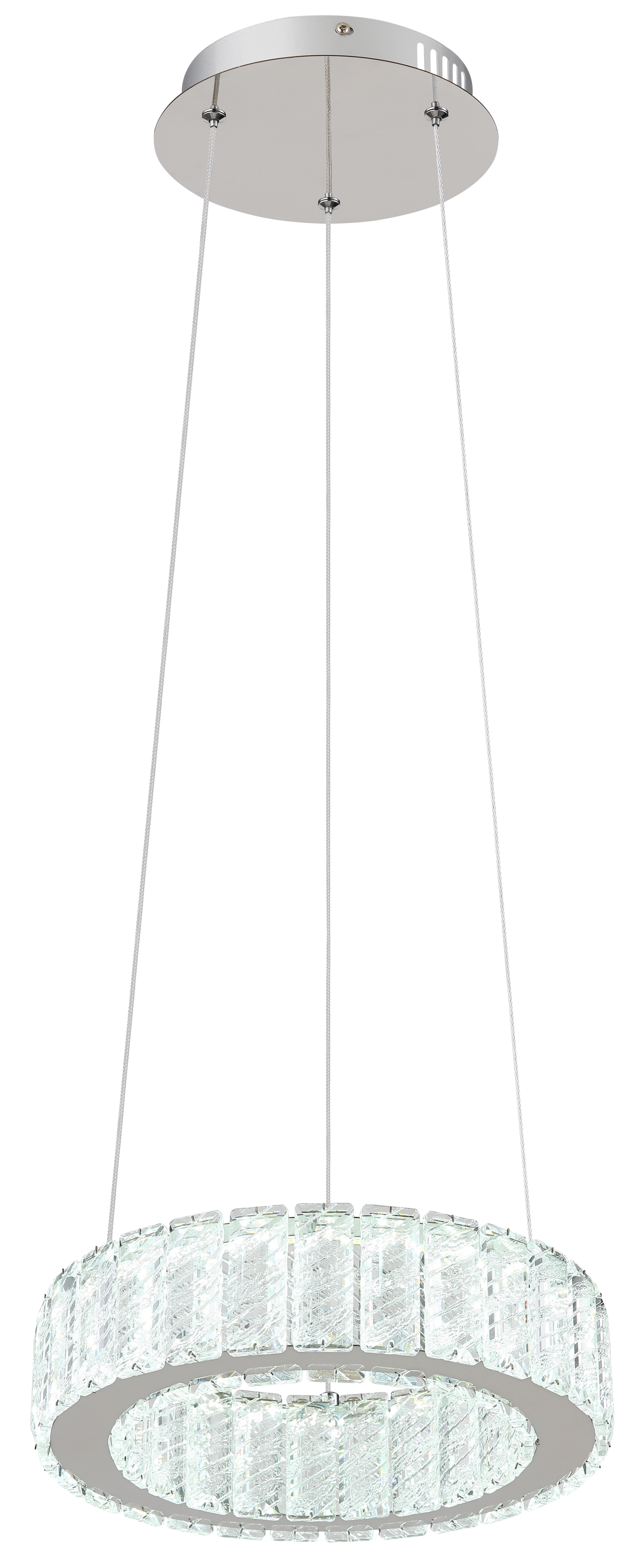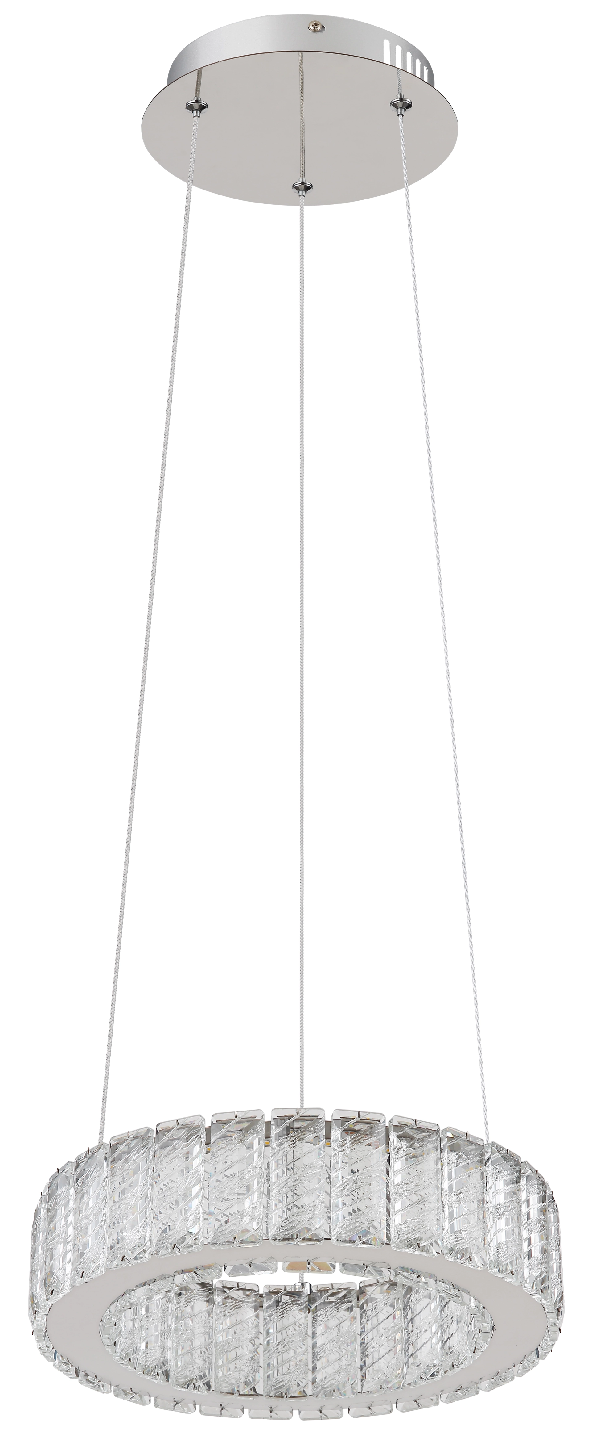 Our pendant lamp is made of chrome-plated metal and clear K5 crystals that reflect the light beautifully. The chrome ring ... Read more Read more