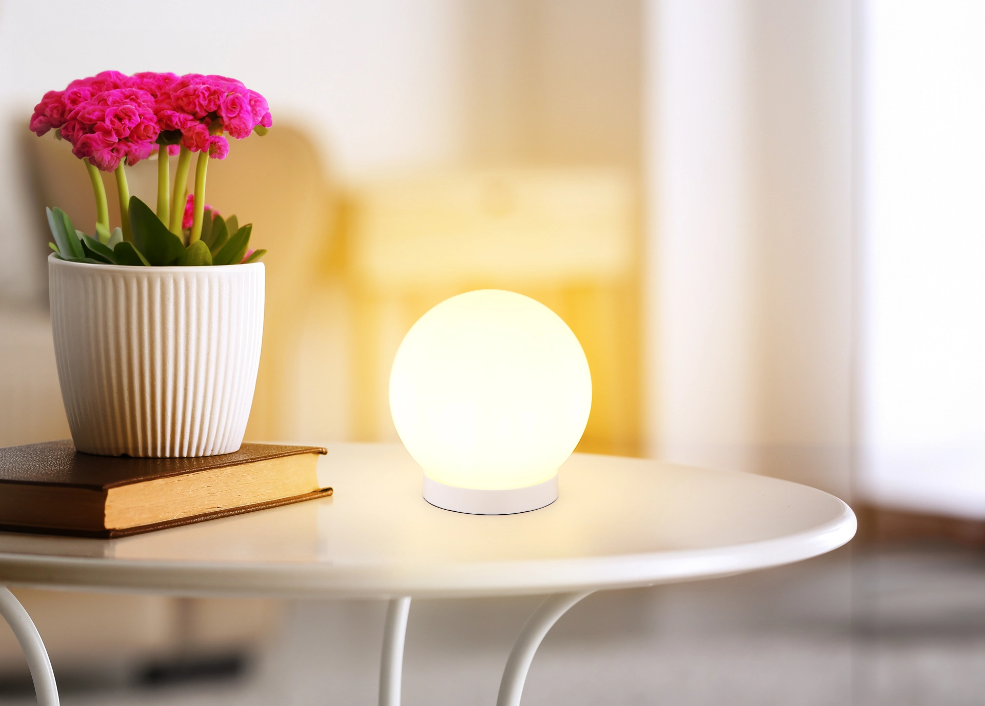 The NORTA table lamp impresses with its simple, modern design. The round glass ball without a base creates an elegant, ... Read more Read more