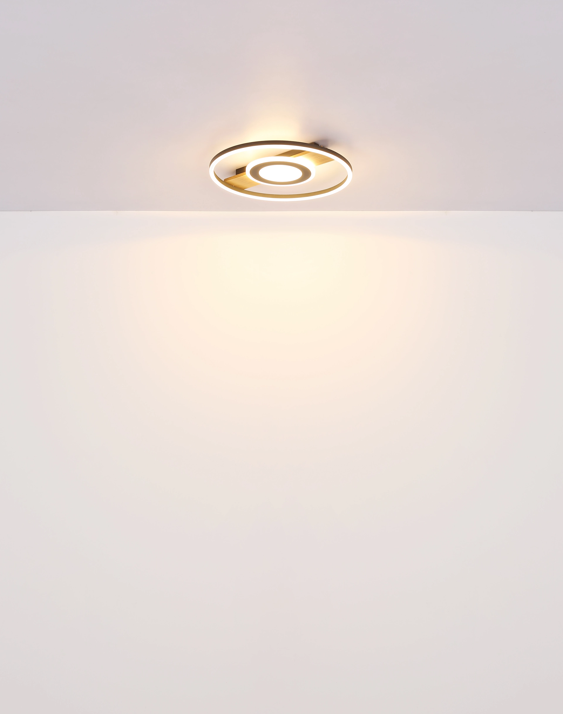 The PIKARA ceiling lamp impresses with its modern, two-round design and brings elegance to every room. The wood-look metal body ... Read more Read more