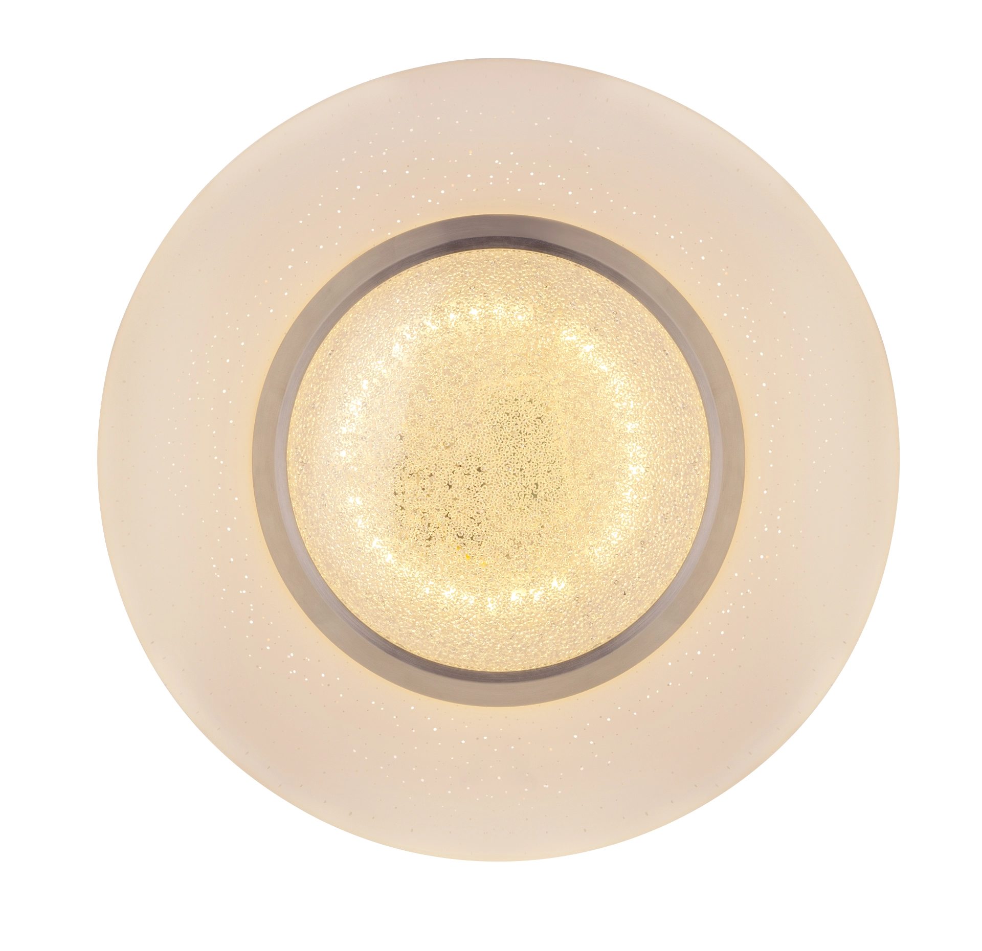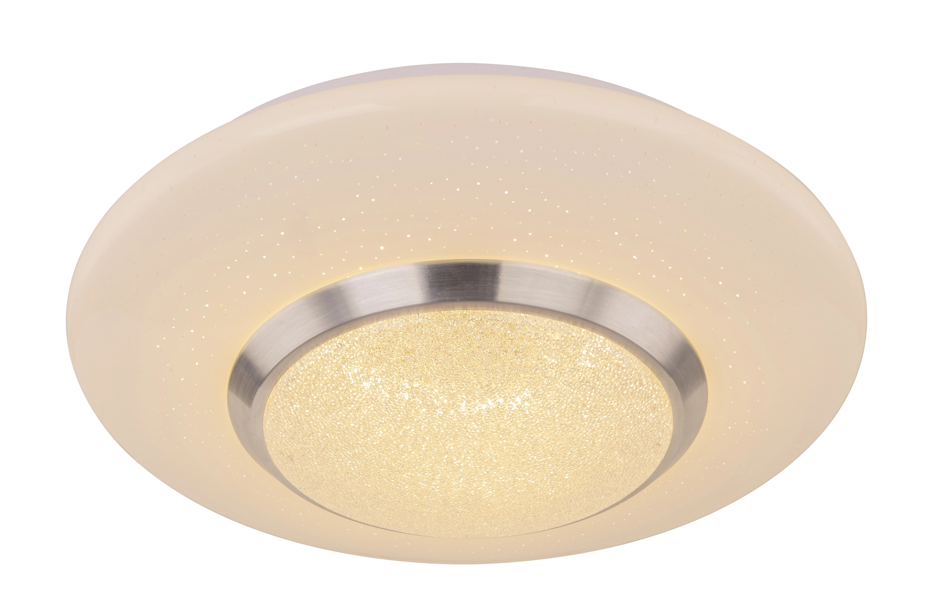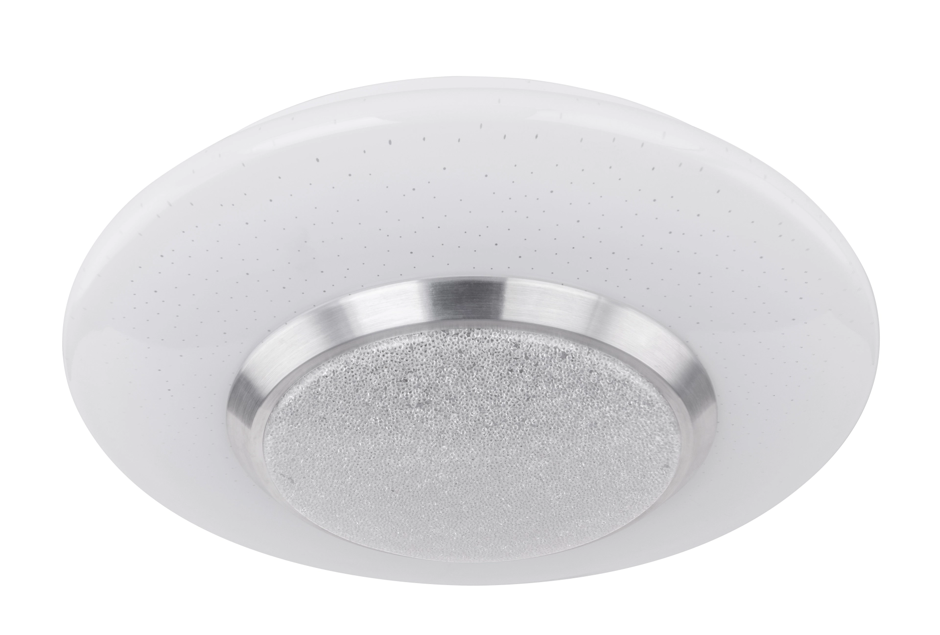This beautiful, round ceiling lamp (34cm) CANDIDA sets sparkling accents in your four walls. Inside the lamp there are plastic crystals, which impressively reflects the light of this white ceiling lamp with opal acrylic glass including Sparkle décor. The ceiling lamp looks very noble even when switched off. The lamp fits into any living style and fits perfectly into a bedroom, living room, children's or dining room. The luminaire has an included 18 watt LED bulb and provides a 1060 lumens strong light with a pleasantly warm 3000 Kelvin light color. With other models of this series, you can further beautify the image of your living space.