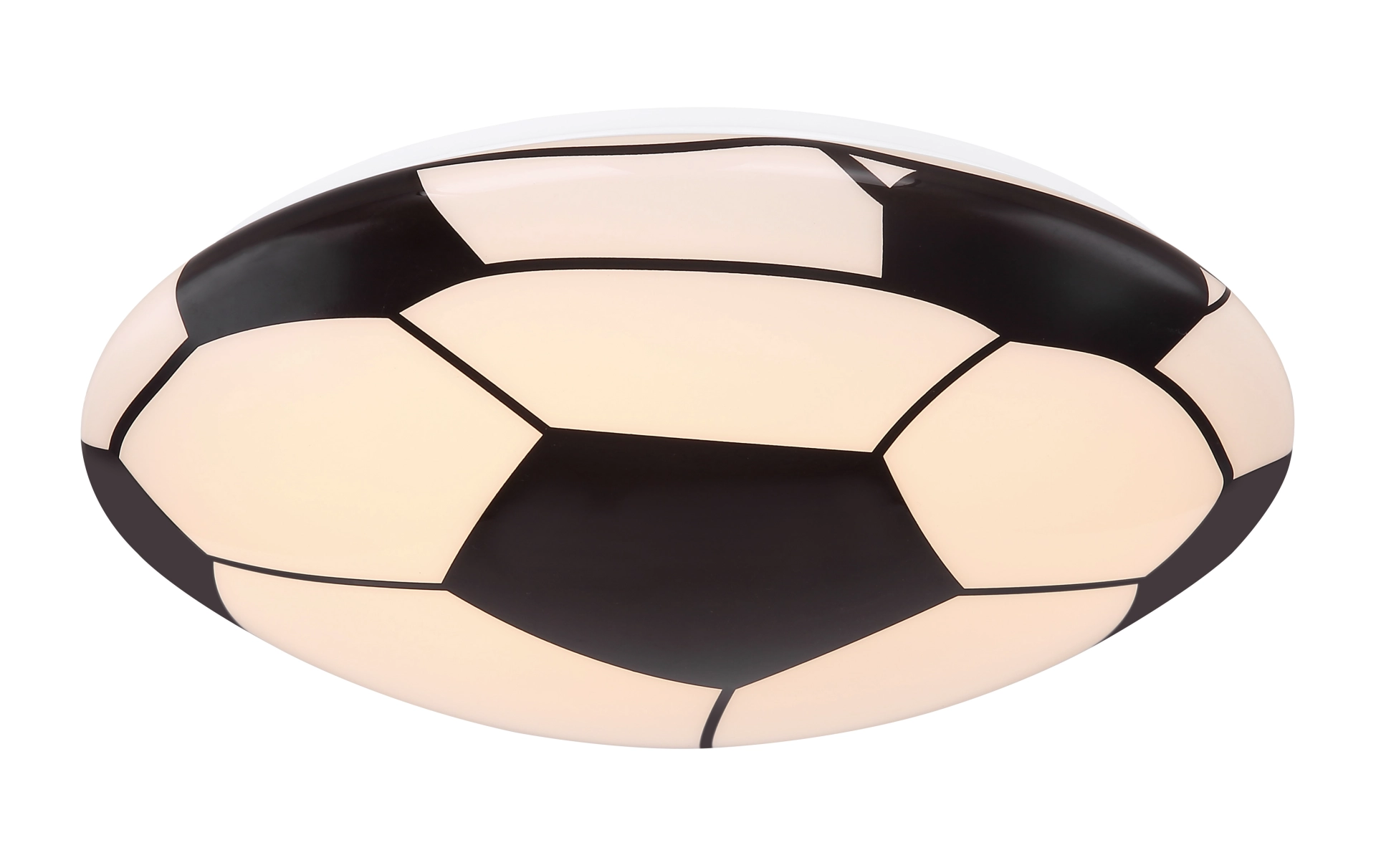 LEMMI makes football hearts beat! This shining football brings joy to the nursery. But not only children love this ball sport, which as hobby no. 1 simply excites everyone, and so the glass ceiling lamp as a funny gesture can certainly find its place in other rooms, because its practical purpose of putting the room in appropriate brightness, it fulfills in any case! It emits an 820 lumens strong light and reproduces a pleasantly warm white color temperature.