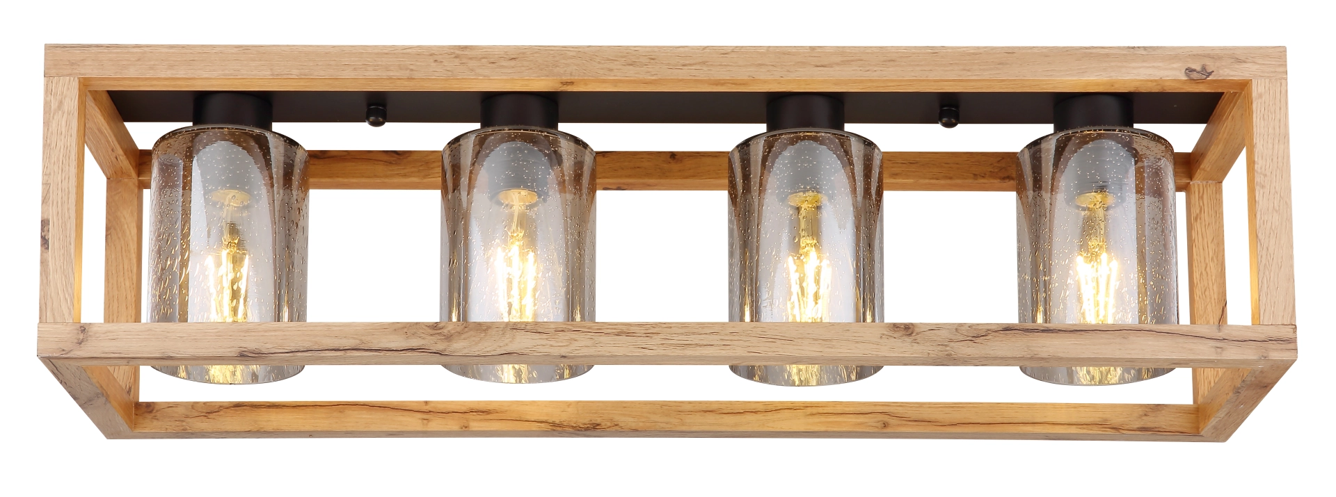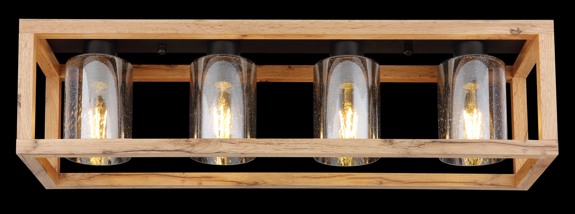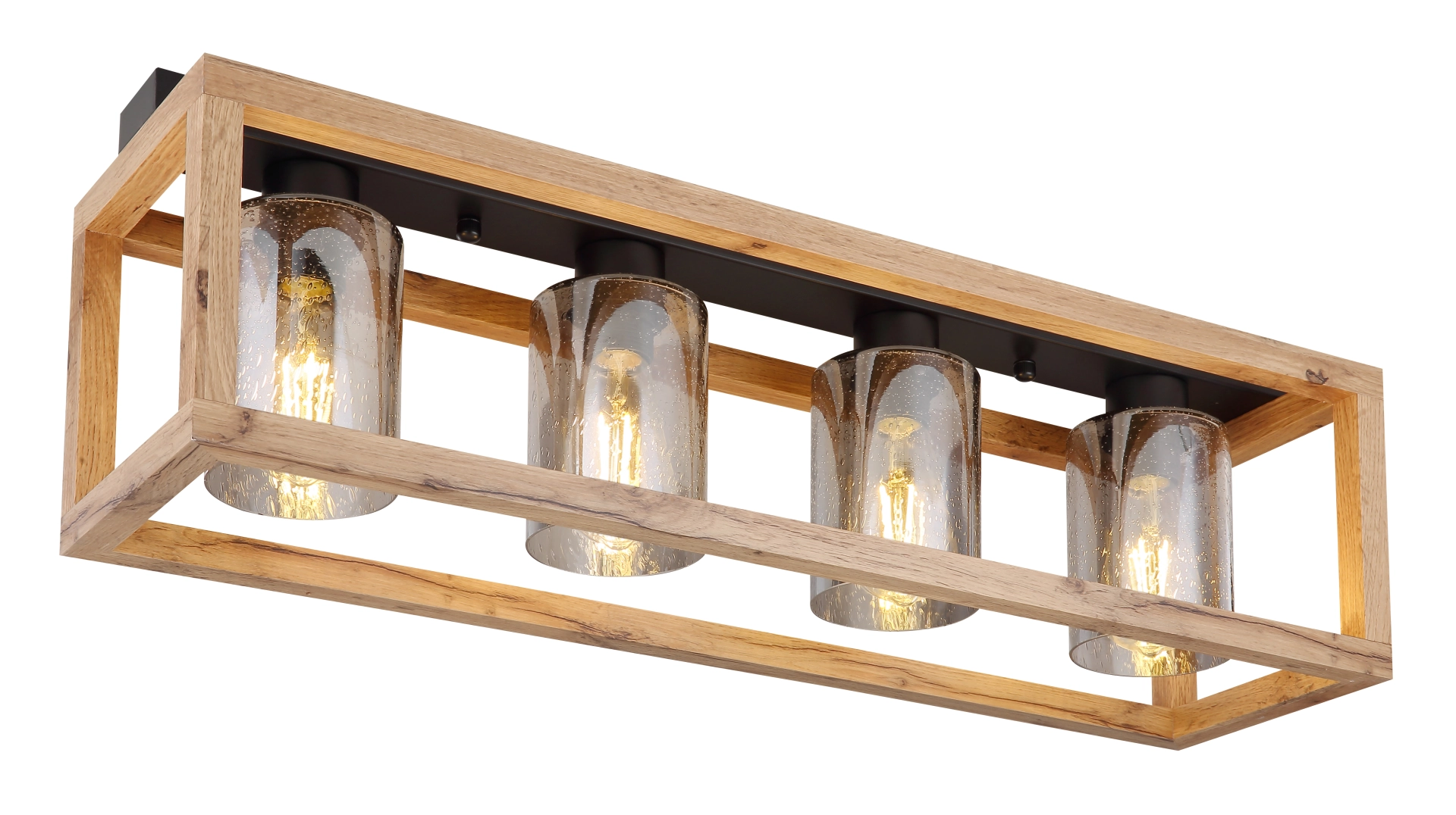 This ceiling lamp from the Pettey series (74.5x20 cm) is a wonderful addition to your interiors. The 22.5 cm ceiling lamp consists of an MDF frame with four smoky glasses. You can equip them with E27 bulbs of your choice, which enables you to individually determine the light color and brightness. With other models of the same series, you can create a stylish ambience in your four walls.
