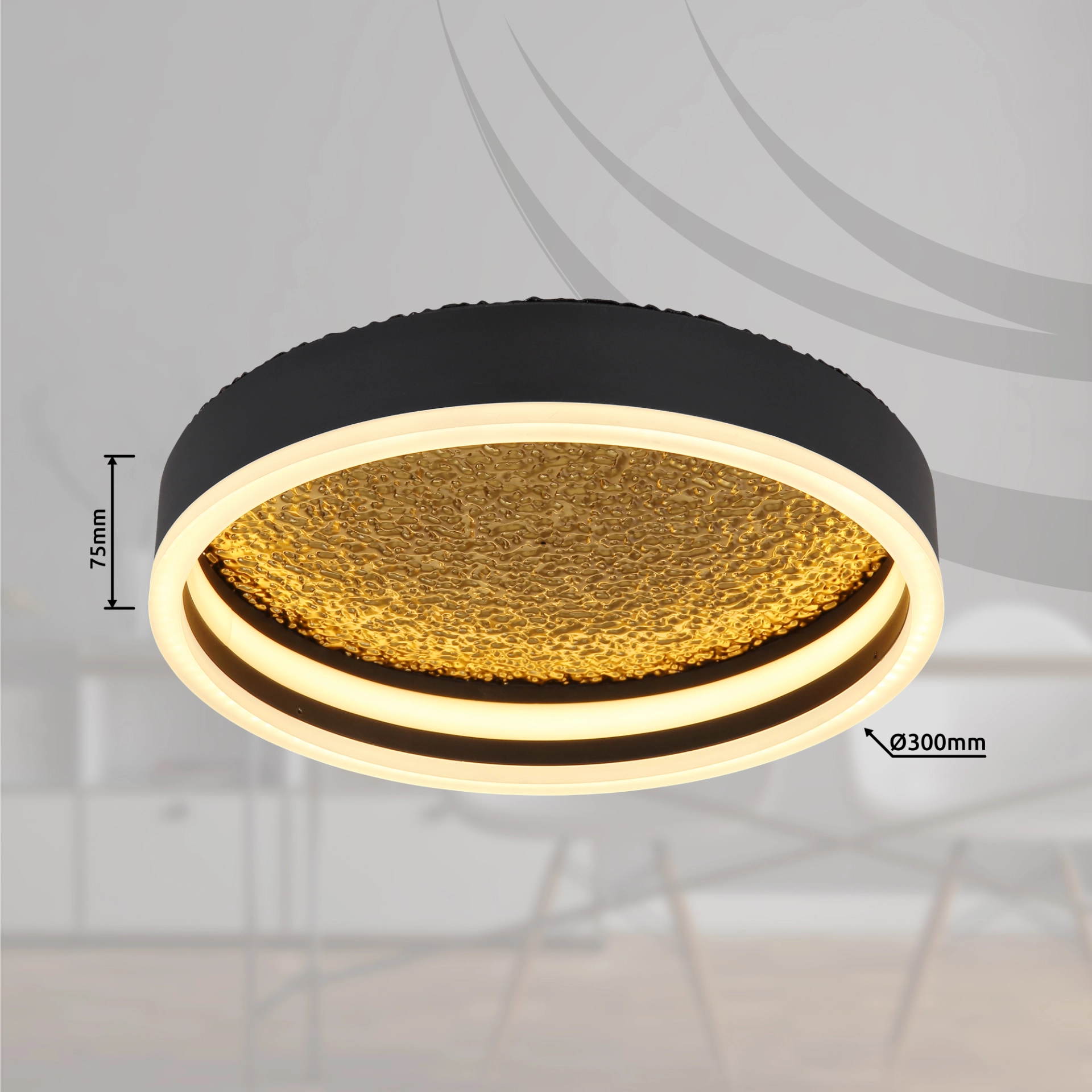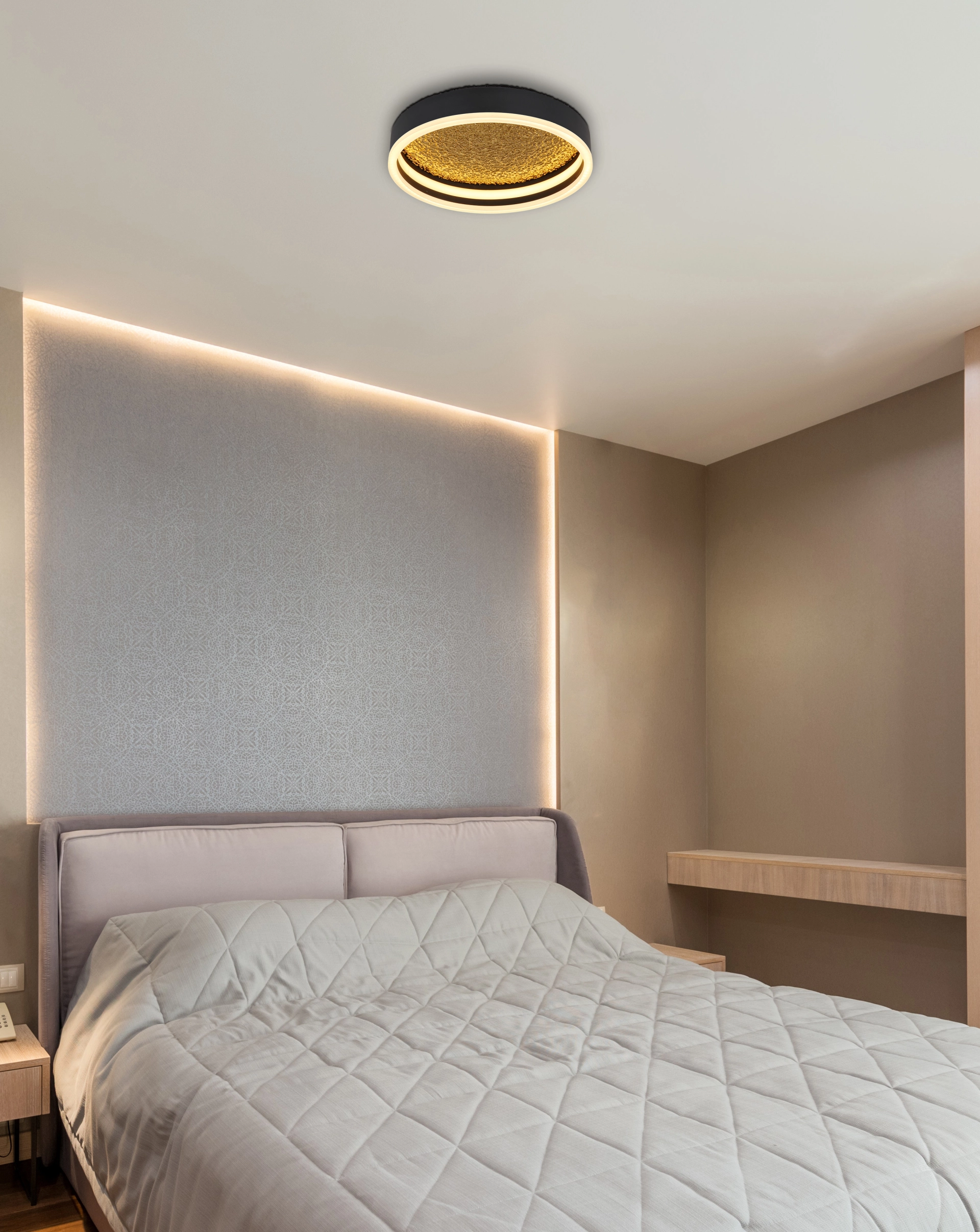 This beautiful ceiling lamp inspires with great design. The round ceiling light has two LED panels in the form of rings, which emit a pleasant 3000 Kelvin warm white light. With the material of black metal and gold-coloured acrylic, you can beautify your premises with another source of light. Set accents.