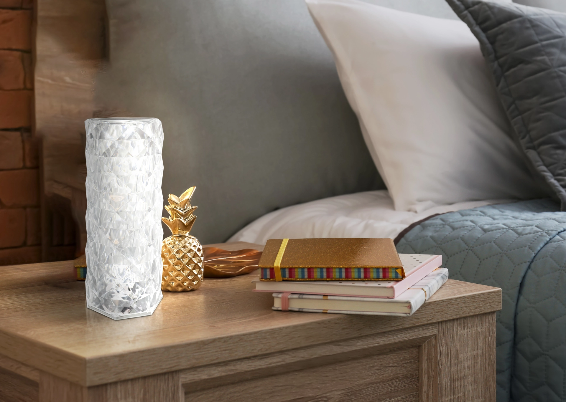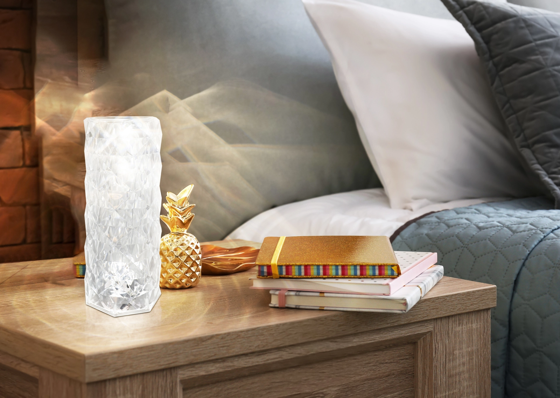 The GIXI table lamp impresses with its modern design made of clear plastic with an elegant crystal effect and silver-coloured ... Read more Read more