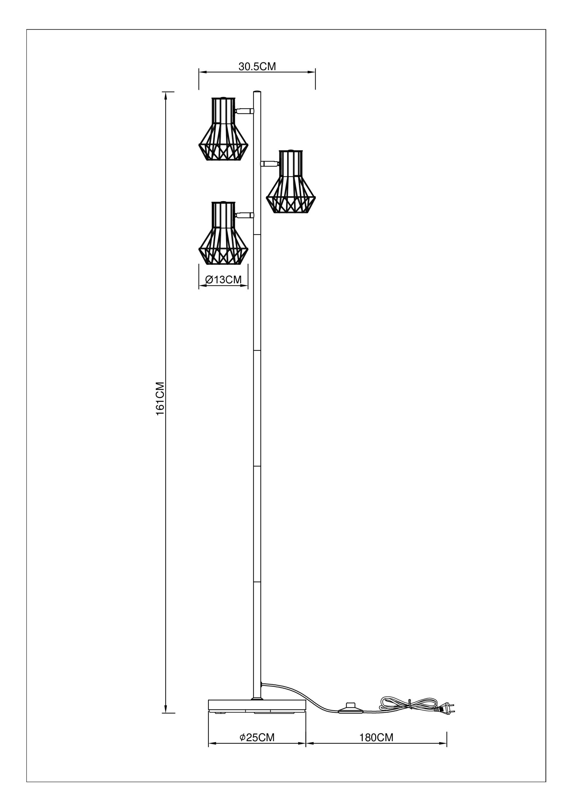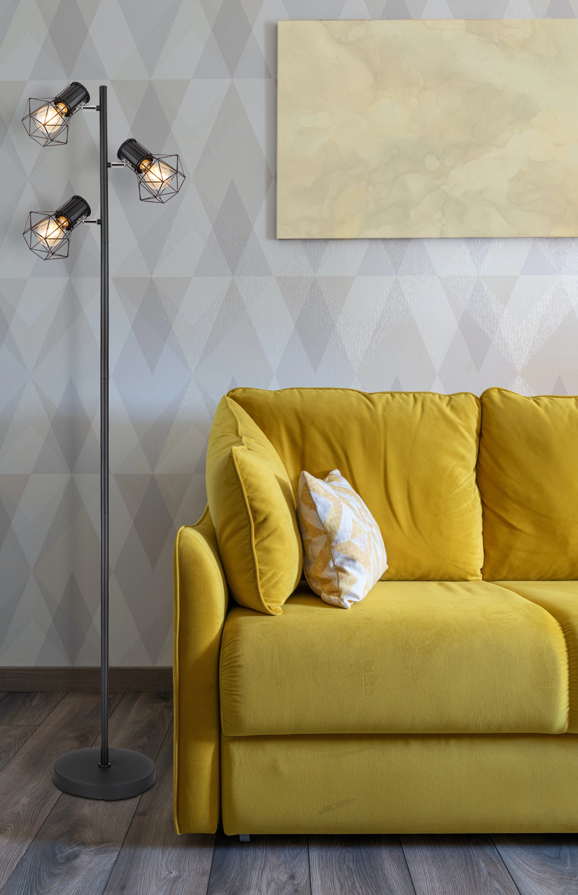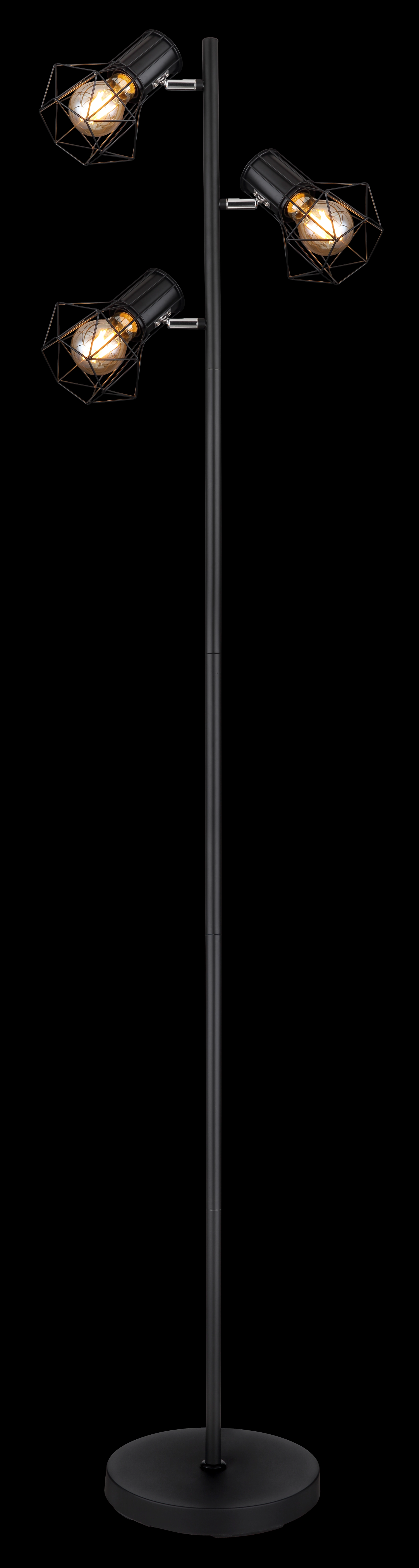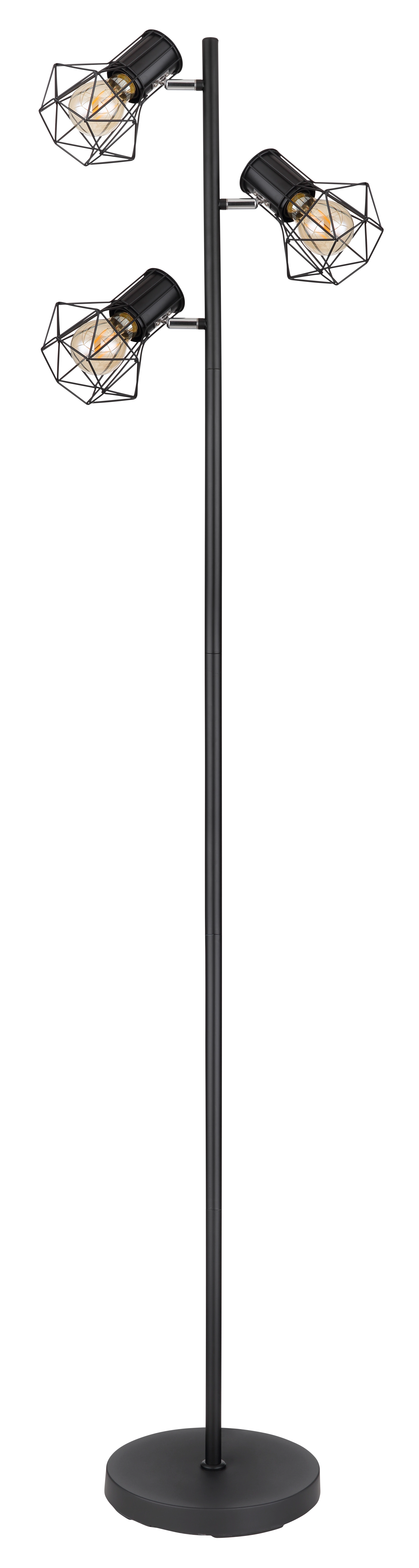 This modern floor lamp of the Priska series inspires with its beautiful design and becomes the center of your rooms. A 1.6m long metal rod in black protrudes from a black matt base, on which three E27 sockets are each equipped with a metal mesh screen. This E27 socket can be equipped with a bulb of your choice, up to a maximum power of 40 watts, and is each enveloped by a shapely black metal mesh in cylindrical shape and thus gives the lamp the right touch.