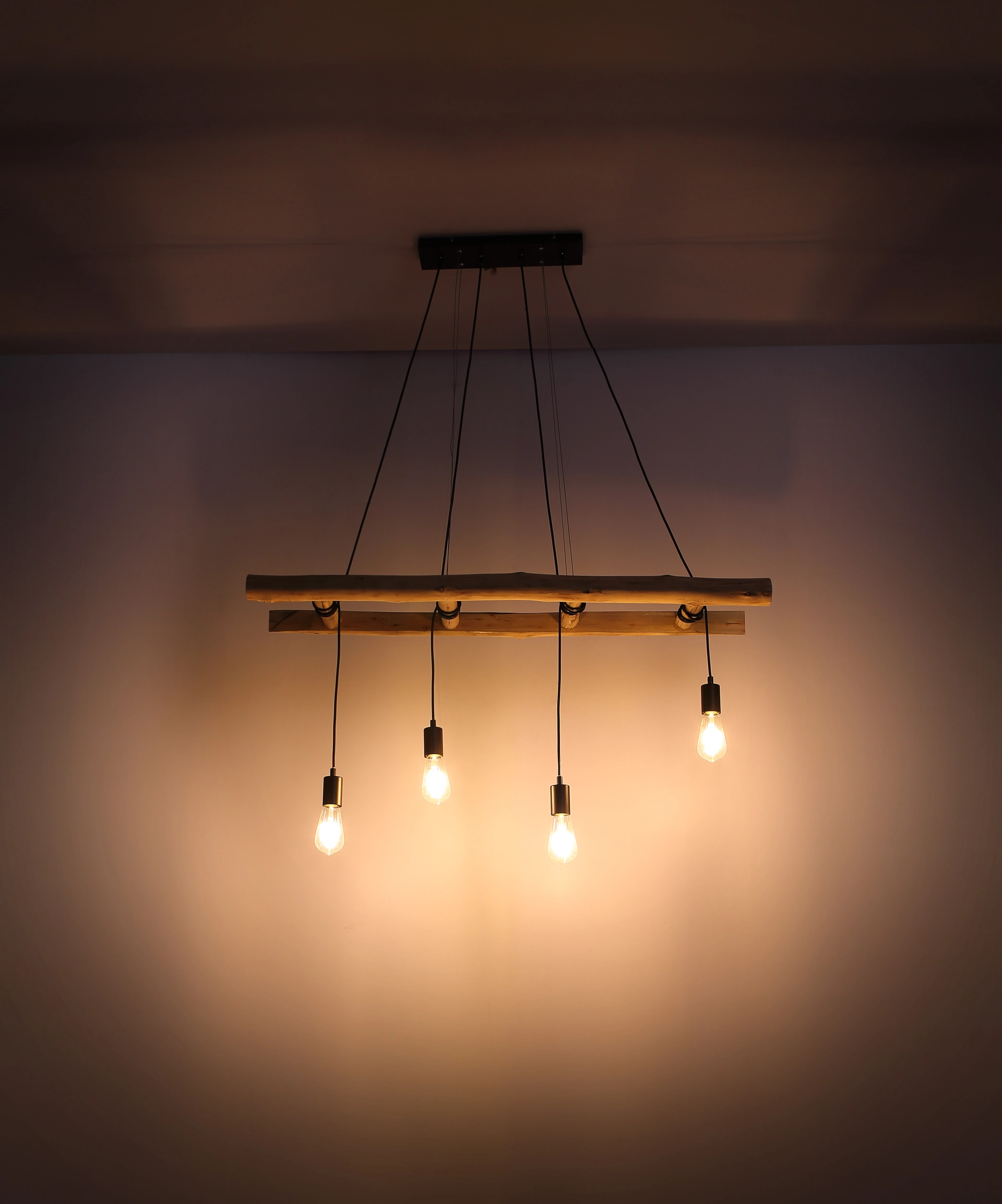 This pendant lamp is an absolute eye-catcher. This vintage IRMGARD lamp impresses with a wooden ladder hanging horizontally in the ... Read more Read more