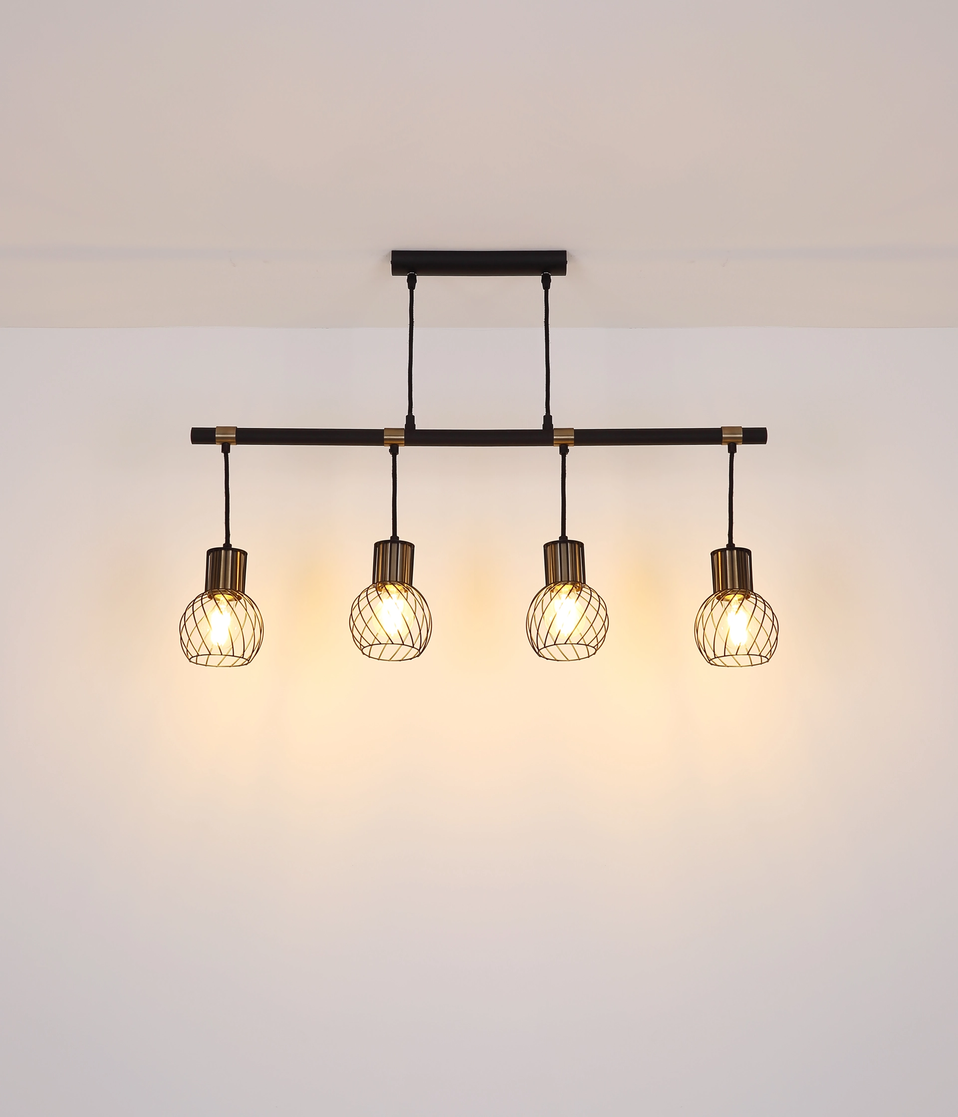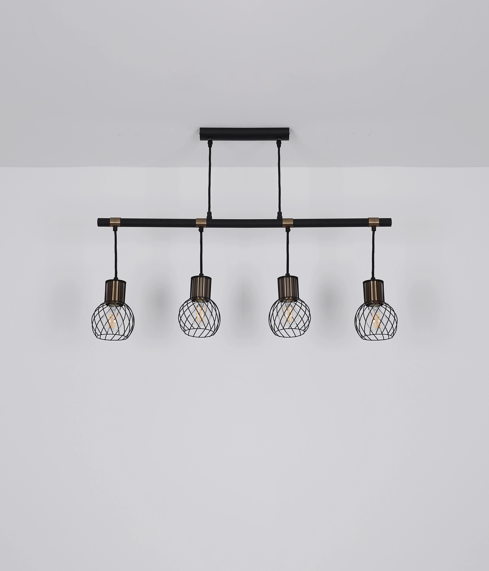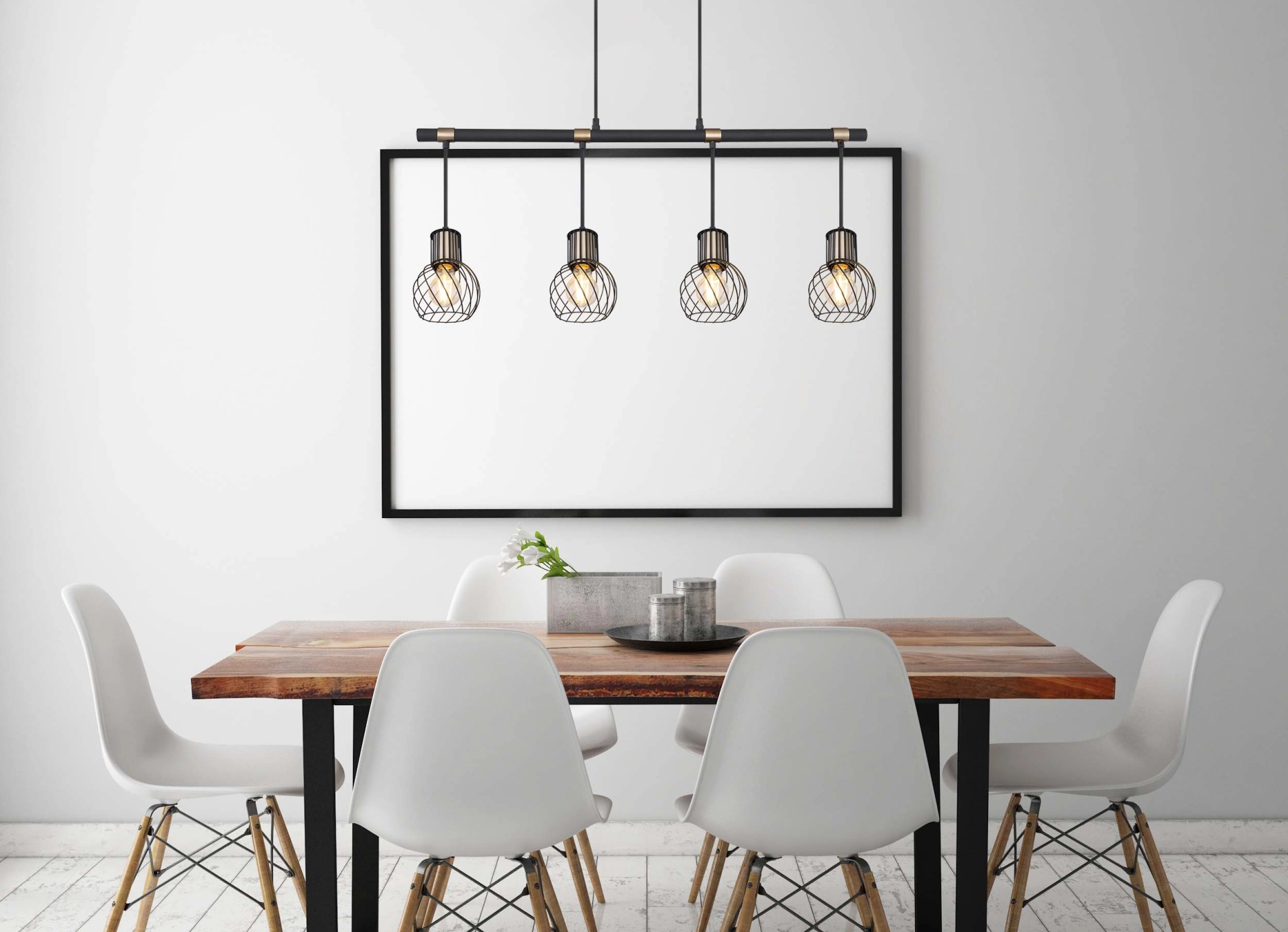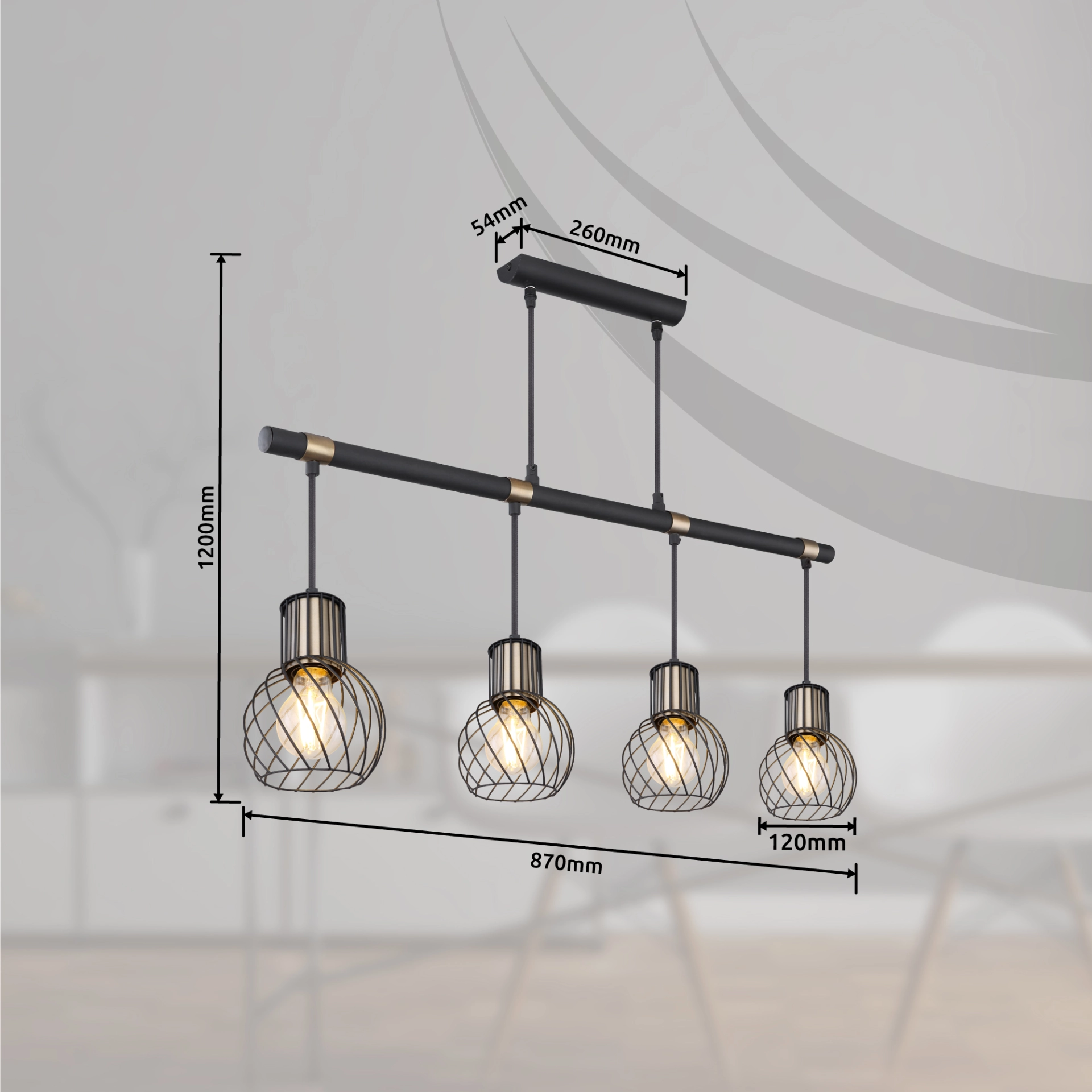 The suspension lamp (LxWxH 87x12x120cm) of the Argusto series impresses with a combination of modern elements and retro look. The ... Read more Read more