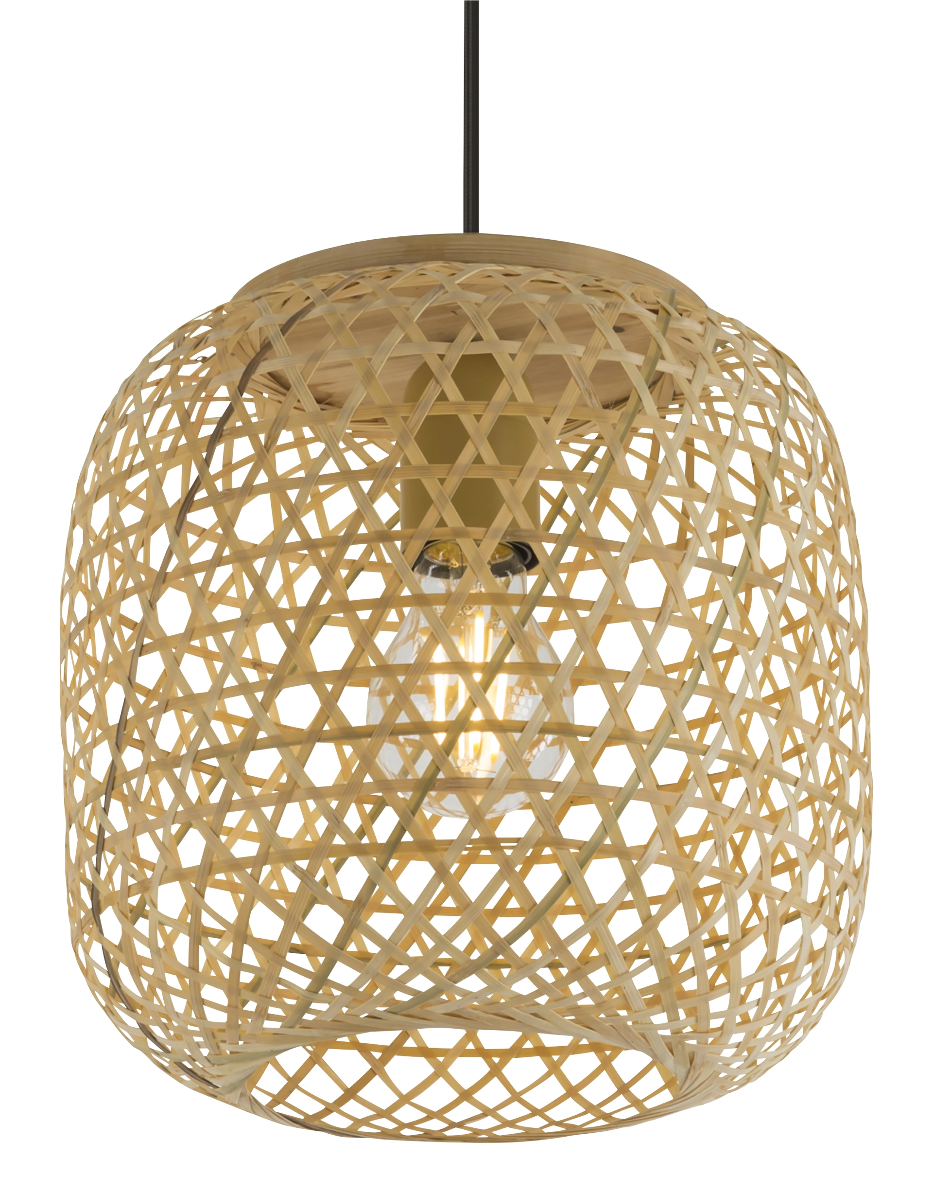 Pure nature! The shade of this pendant lamp consists of a bamboo mesh, which allows the light to radiate directly into the environment. The bulb with an E27 socket is also visible. This makes it possible to alternatively use a decorative light source. With an LED light bulb you ensure even more sustainability. With a diameter of 23 cm, this lamp is a great accessory for your home.