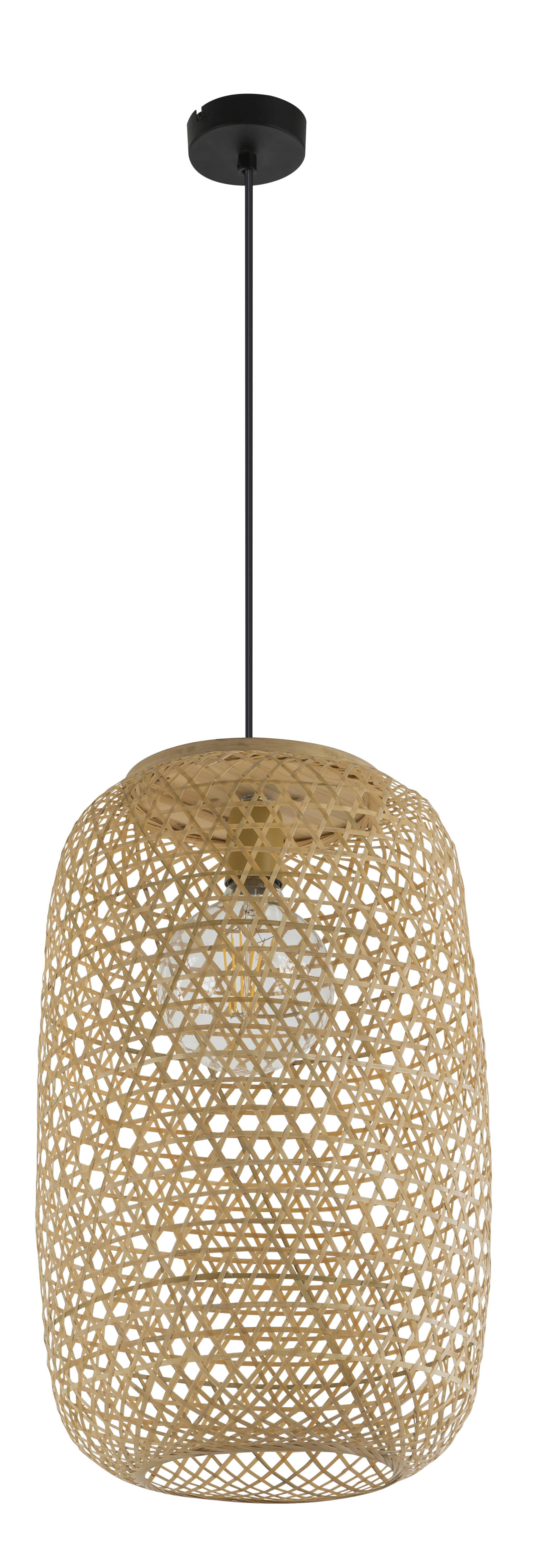 Pure nature! The shade of this pendant lamp consists of a bamboo mesh, which allows the light to radiate directly into the environment. The bulb with an E27 socket is also visible. This makes it possible to alternatively use a decorative light source. With an LED light bulb you ensure even more sustainability. With a diameter of 31 cm, this lamp is a great accessory for your home.