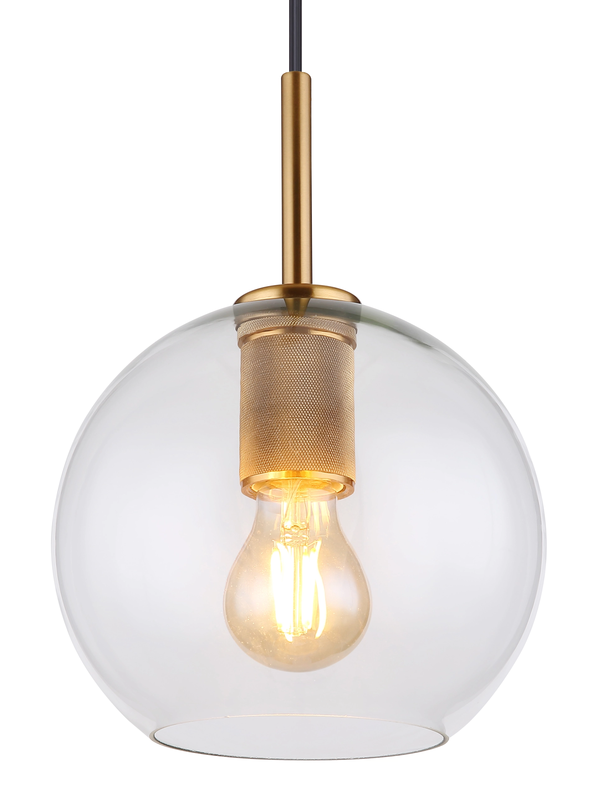 This hanging lamp of the Adara series is a real eye-catcher for your interiors with its beautiful design of brass-colored metal and clear glass. The spherical glass (ø 20 cm) hangs 1.2 m from the ceiling and can be equipped with an E27 bulb of your choice. This gives you the opportunity to determine light color and brightness according to your preferences. With several articles of the Adara series, you can create a stylish atmosphere in your indoor area and complete the overall picture.