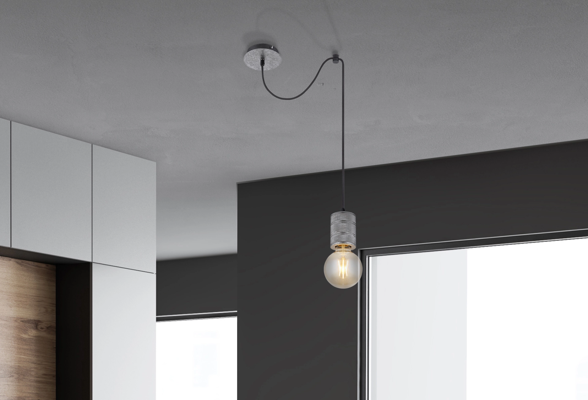 This hanging lamp from the Freddy series convinces with its stylish design of silver-colored metal and silver-metallic colored aluminum. The height of the E27 socket framed with aluminium is 160 cm, which can be adjusted by the external bracket fixed to the ceiling. In addition, the socket can be equipped with a suitable bulb of your choice, which allows you to individually determine the light color and brightness. With other models of the Freddy series, you can complete the overall picture in your interiors and provide a stylish ambience.