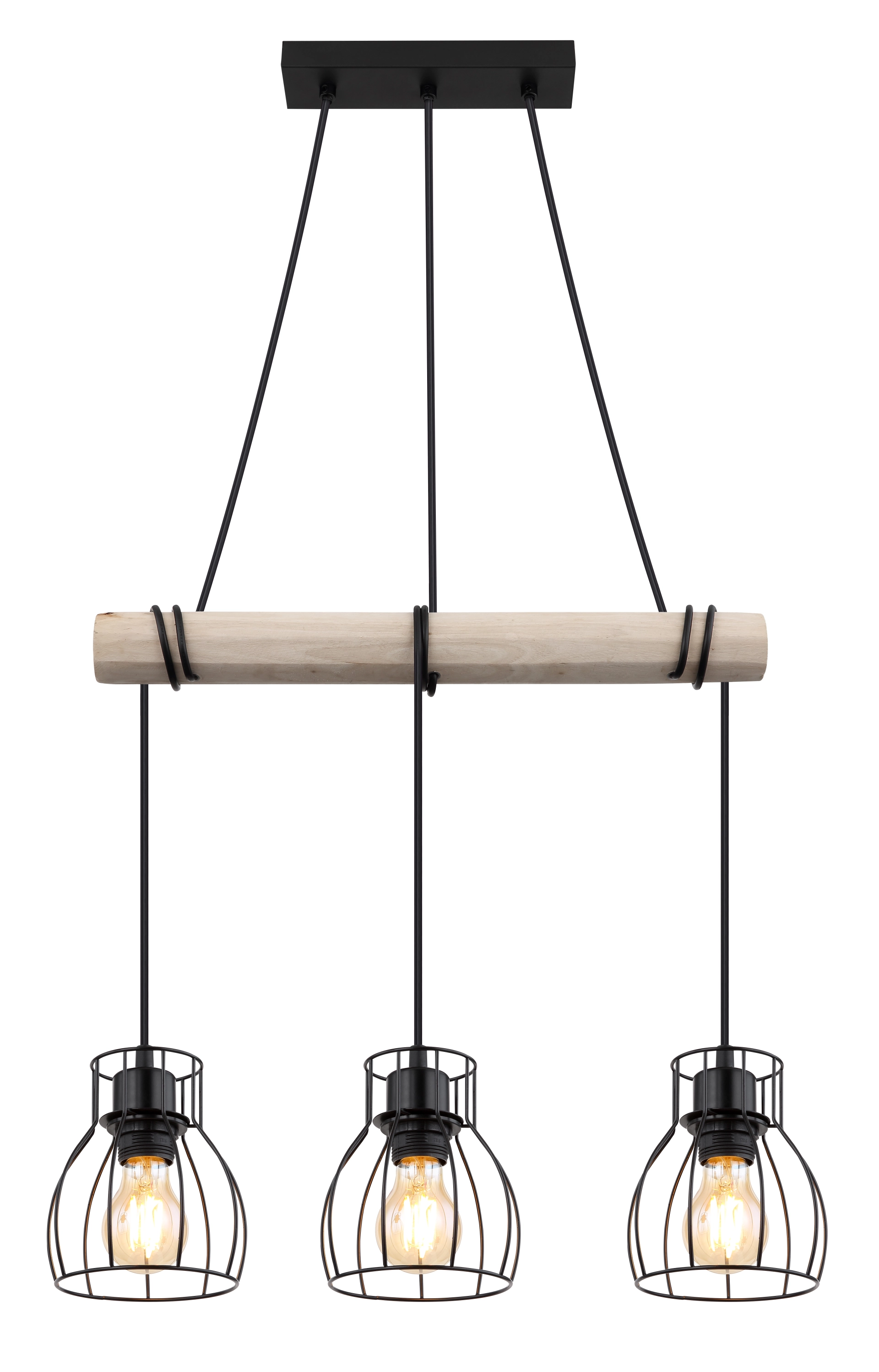 This pendant lamp of the Mina series inspires with the great material combination of wood and metal. Three black cables, ... Read more Read more