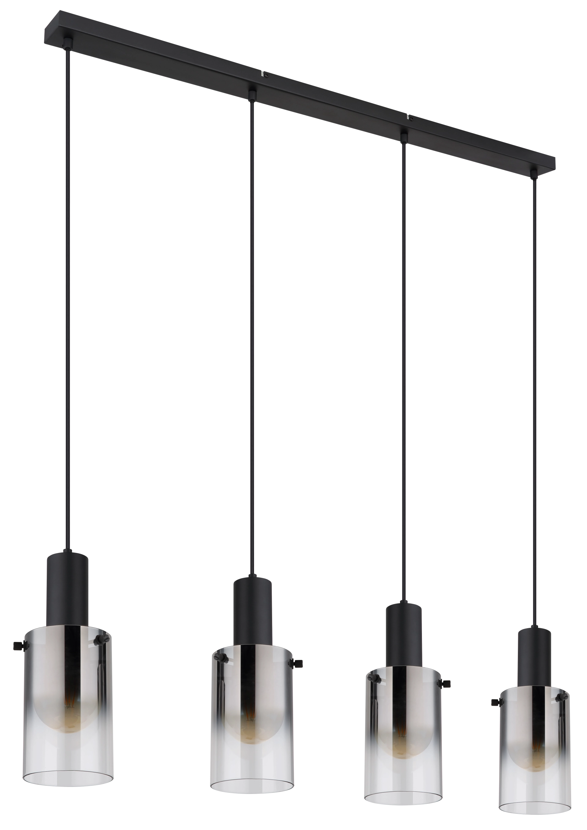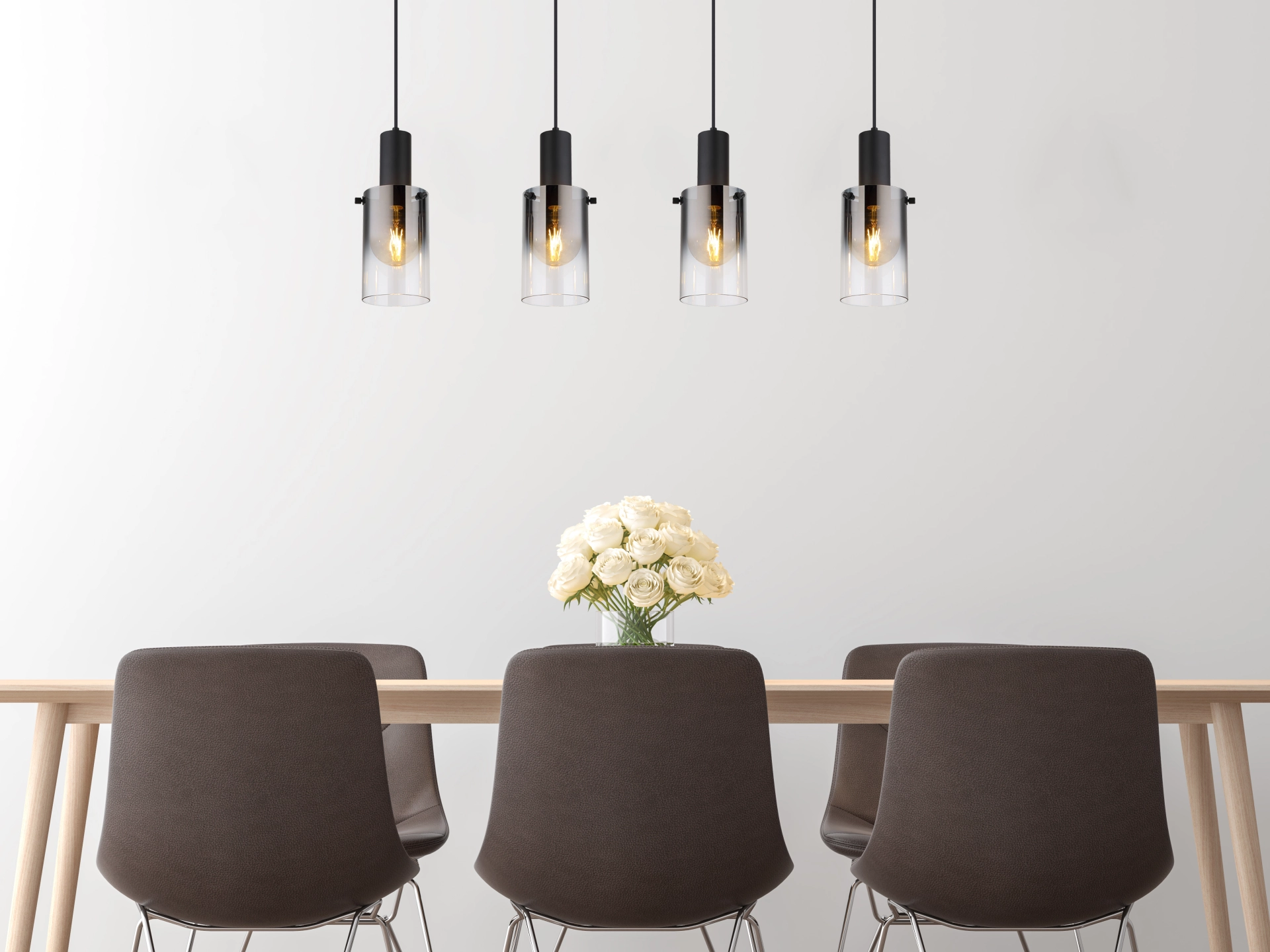 Experience the breathtaking FLORENTINA pendant lamp and let your home shine in new splendor! The black matt metal housing in combination with the smoke-colored and clear glass elements creates a fascinating look. The PVC cable in black blends in harmoniously and allows individual height adjustment. The lenses of this lamp inspire with a subtle color gradient, which creates a unique lighting mood. With its generous dimensions of 1025x125x1500mm, the FLORENTINA is an impressive eye-catcher. Please note that the 4x E27 40W 230V bulbs are not included. Immerse your home in a magical light with the FLORENTINA pendant lamp and create an irresistible atmosphere!
