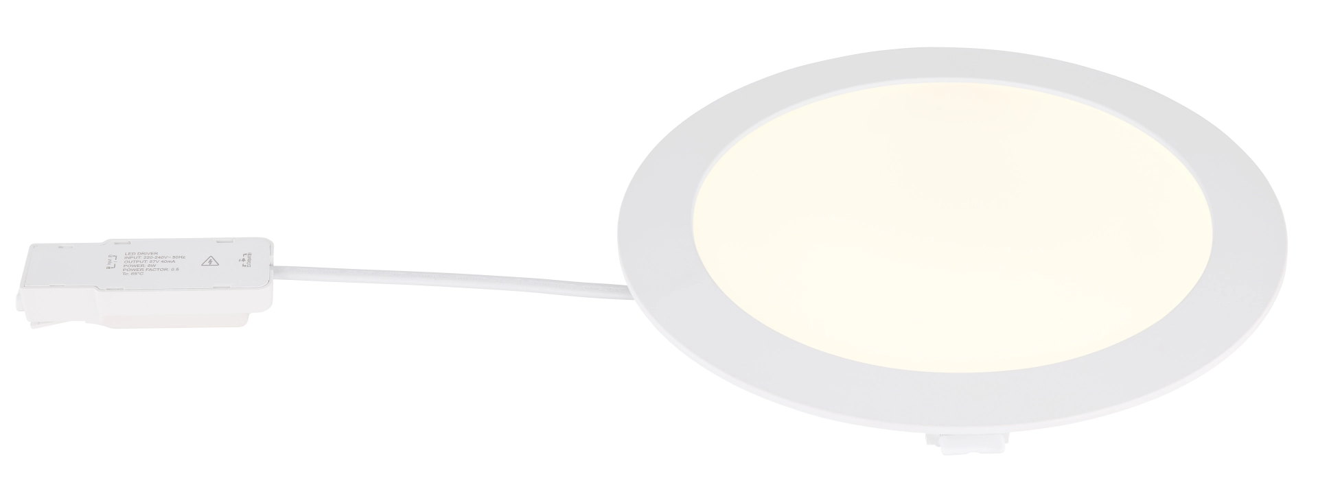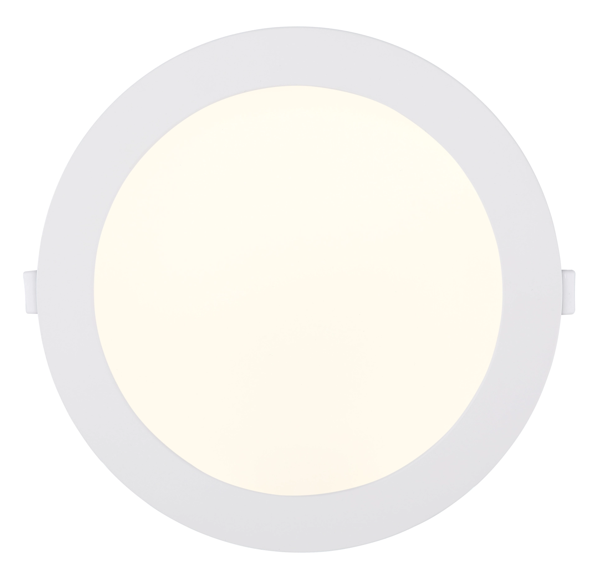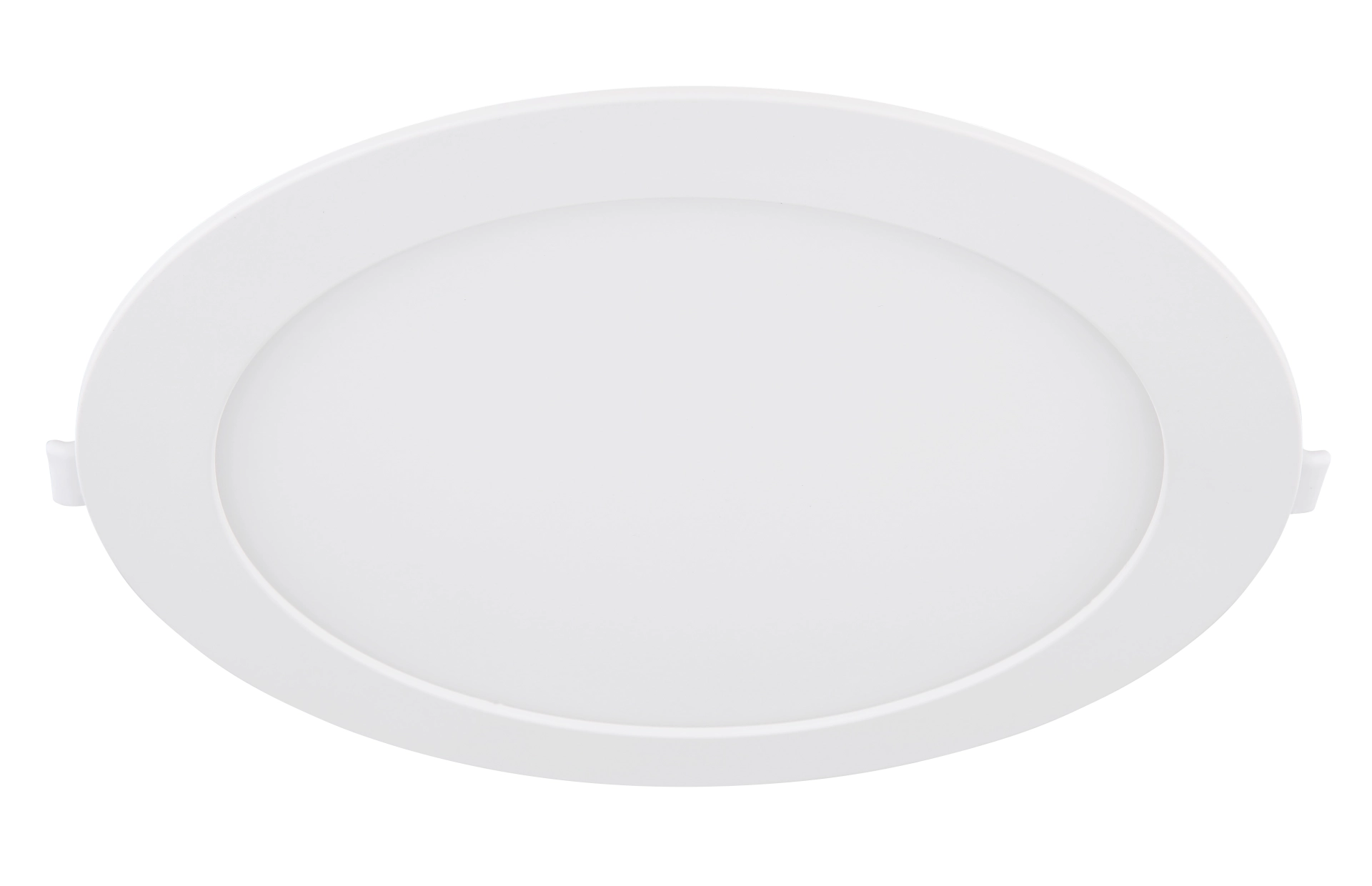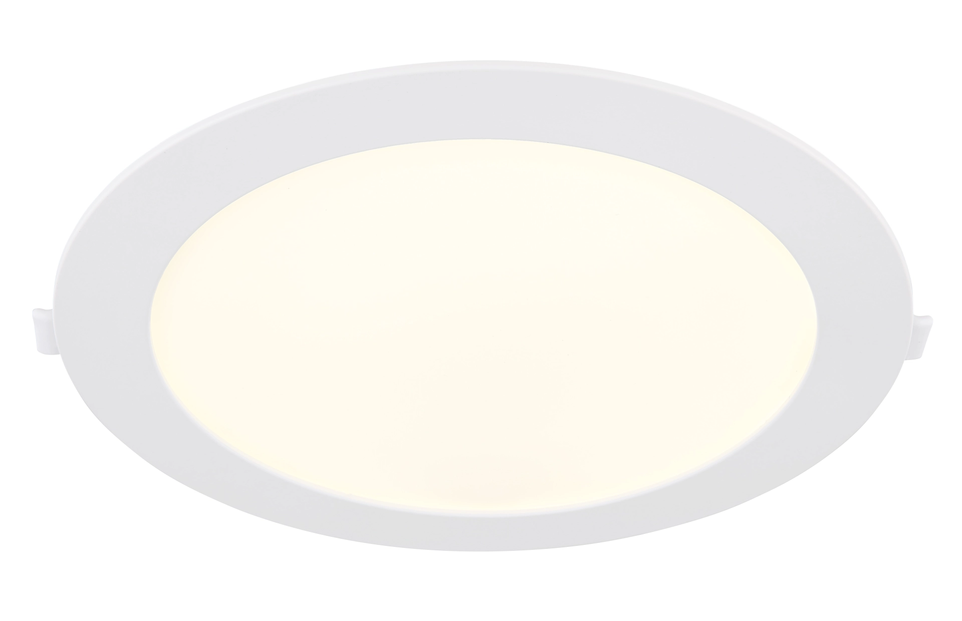 This recessed luminaire provides a 4000 Kelvin neutral light and creates a pleasant atmosphere. Made of white plastic, the lamp has a diameter of 12.8 cm and emits an effective 1500 lumens.