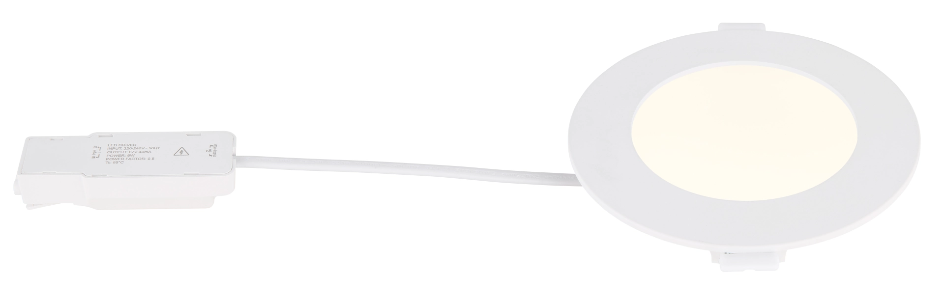 The TIBEY recessed spotlight is the perfect partner to give your living space a modern look. With its round and flat design, it blends seamlessly into your ceiling and ensures even illumination. The body of the TIBEY recessed spotlight is made of white plastic, while the shade is made of opal plastic. The high-quality material ensures glare-free and pleasant light distribution. With a diameter of 128mm, the TIBEY recessed spotlight fits into most standard ceiling cut-outs. Thanks to its 500 lumens output and 4000K light color, it offers bright and clear illumination. Another plus point is the external driver that is included in the box. This makes the installation of the TIBEY recessed spotlight particularly simple and uncomplicated. Bring modern flair into your home with the TIBEY recessed spotlight. With its technical design, high light output and easy installation, this recessed spotlight is an optimal choice for any room.