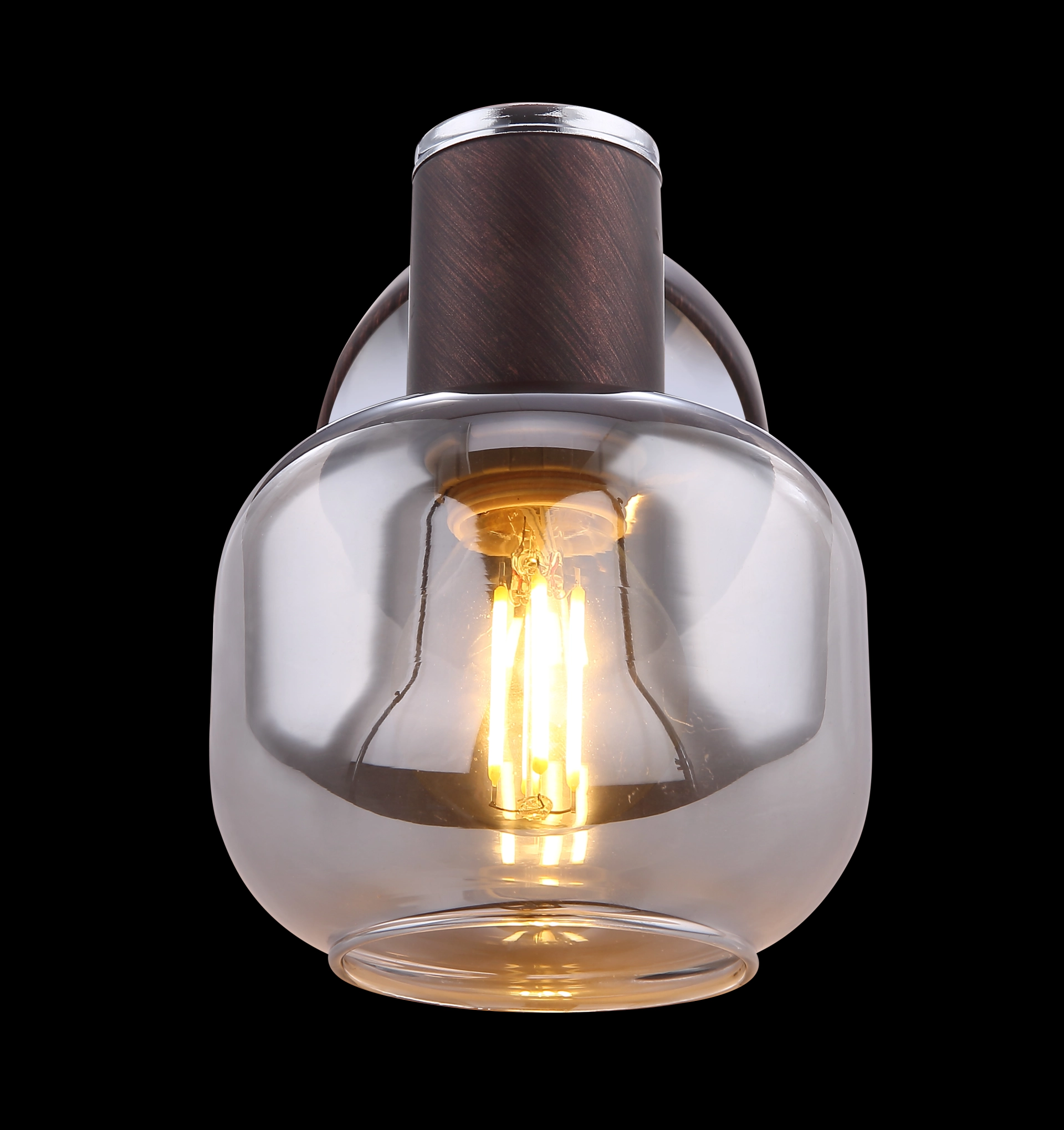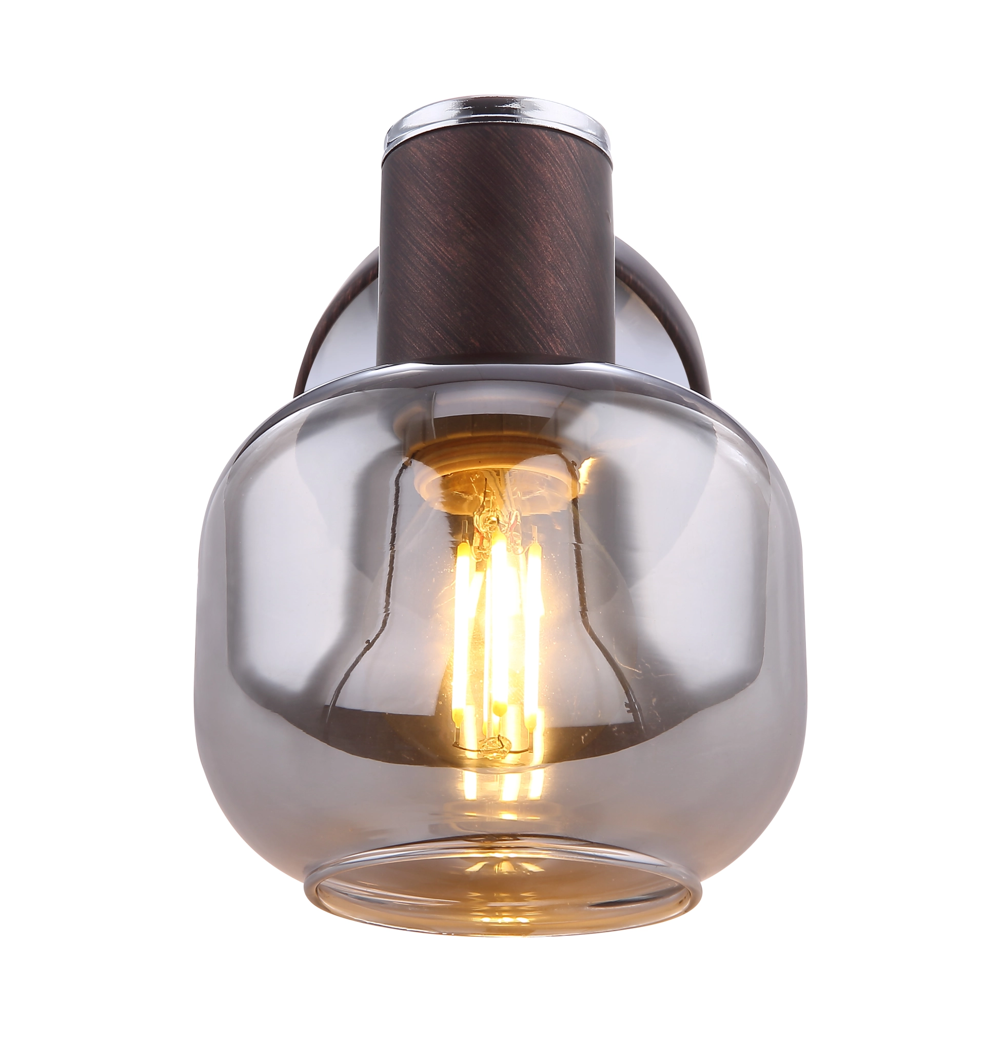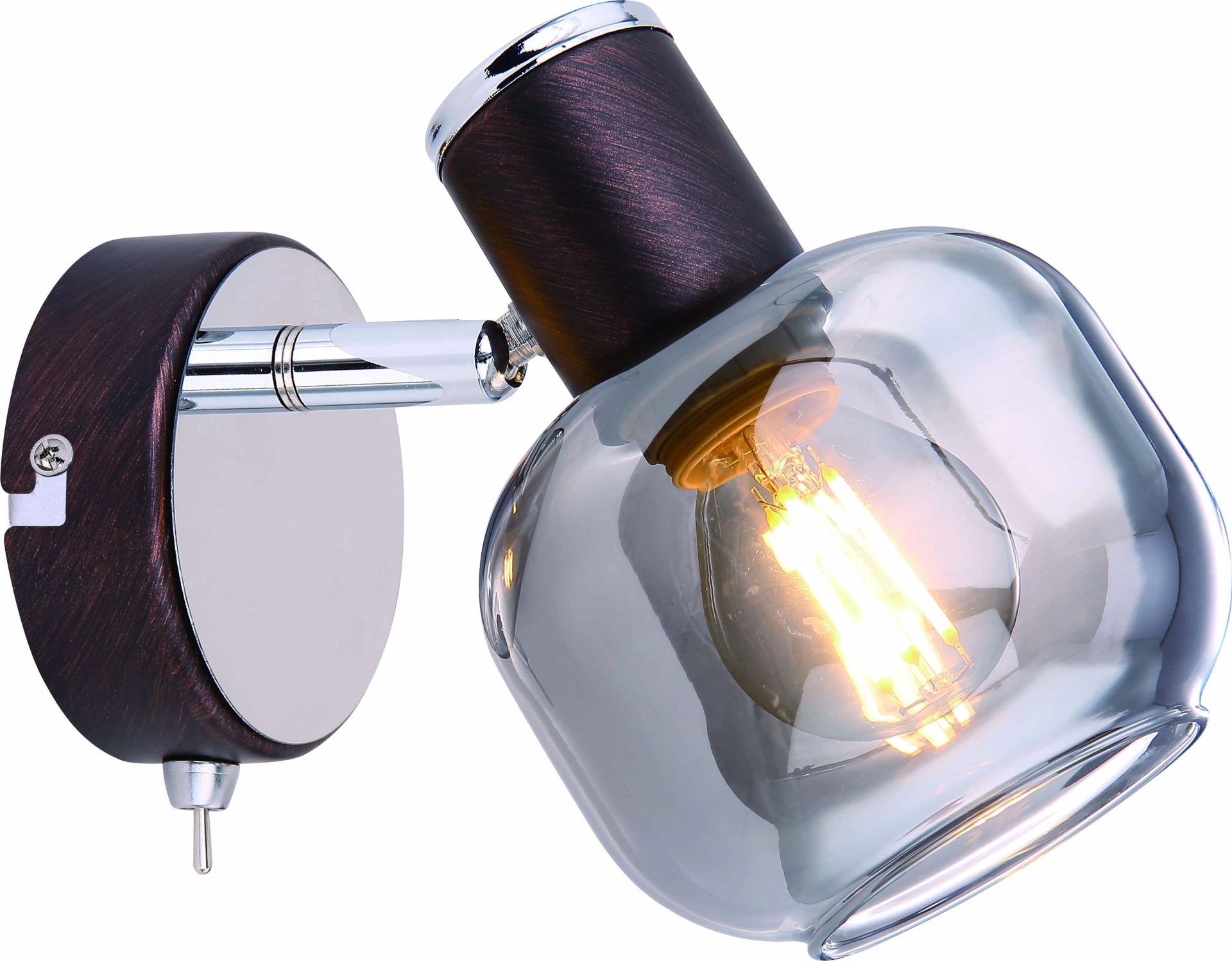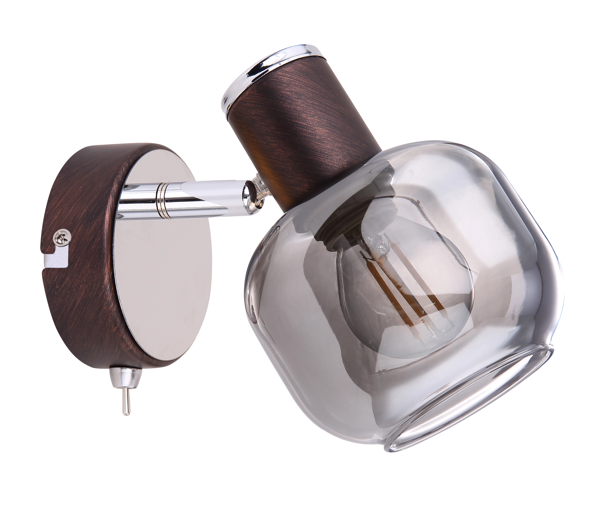 This wall spotlight can be integrated very well as additional lighting in a hallway or in a bedroom. The swivelling light spot is attached to a round wall bracket. The metal lamp contains bronze colored details and the light shade is made of glass. The lamp has an E14 socket, so you have the possibility to equip the lamp with a suitable bulb up to a maximum of 40 watts. We recommend LED lamps because of their power savings and longevity.