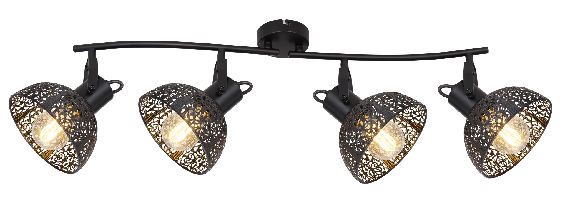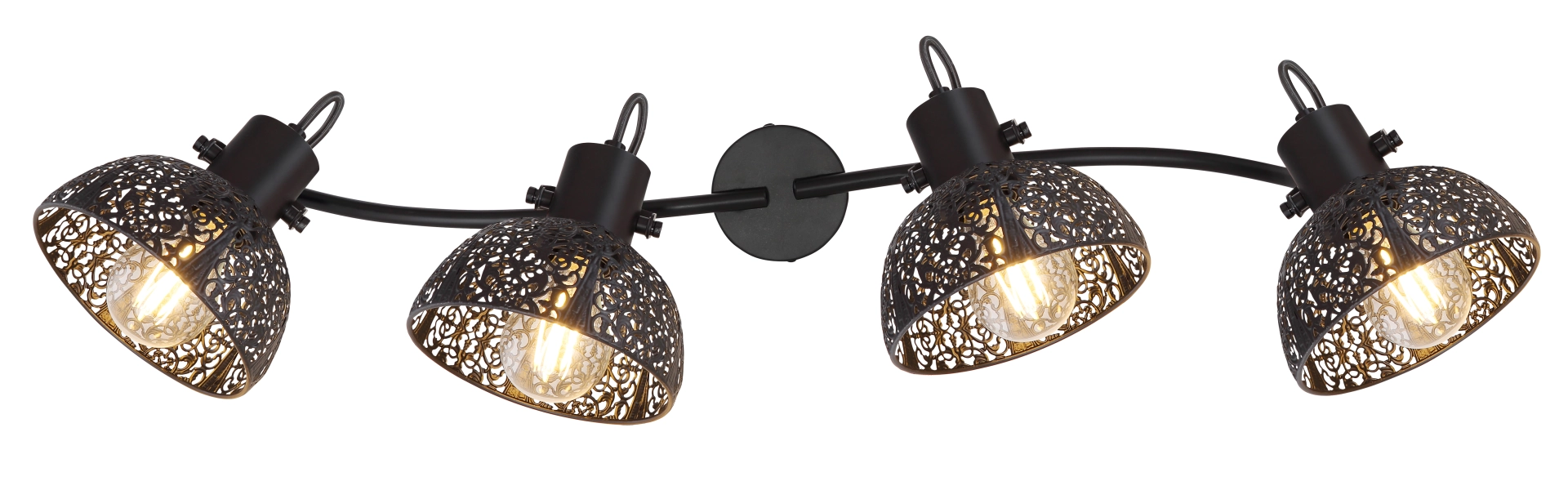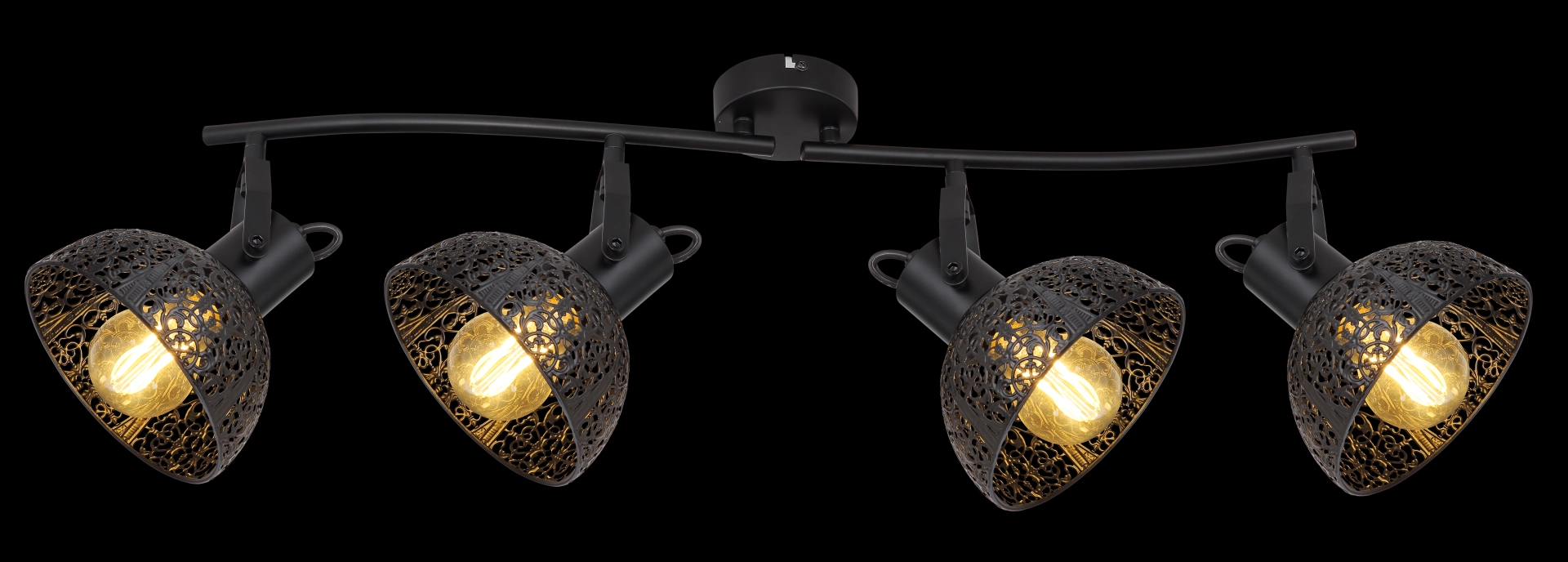 Pantalla the matt black spotlight with 4 heads casts interesting shadows and illuminates the room in an incomparable way. The design is exceptional due to the dance-outs and corresponds to the retro-romantic style.