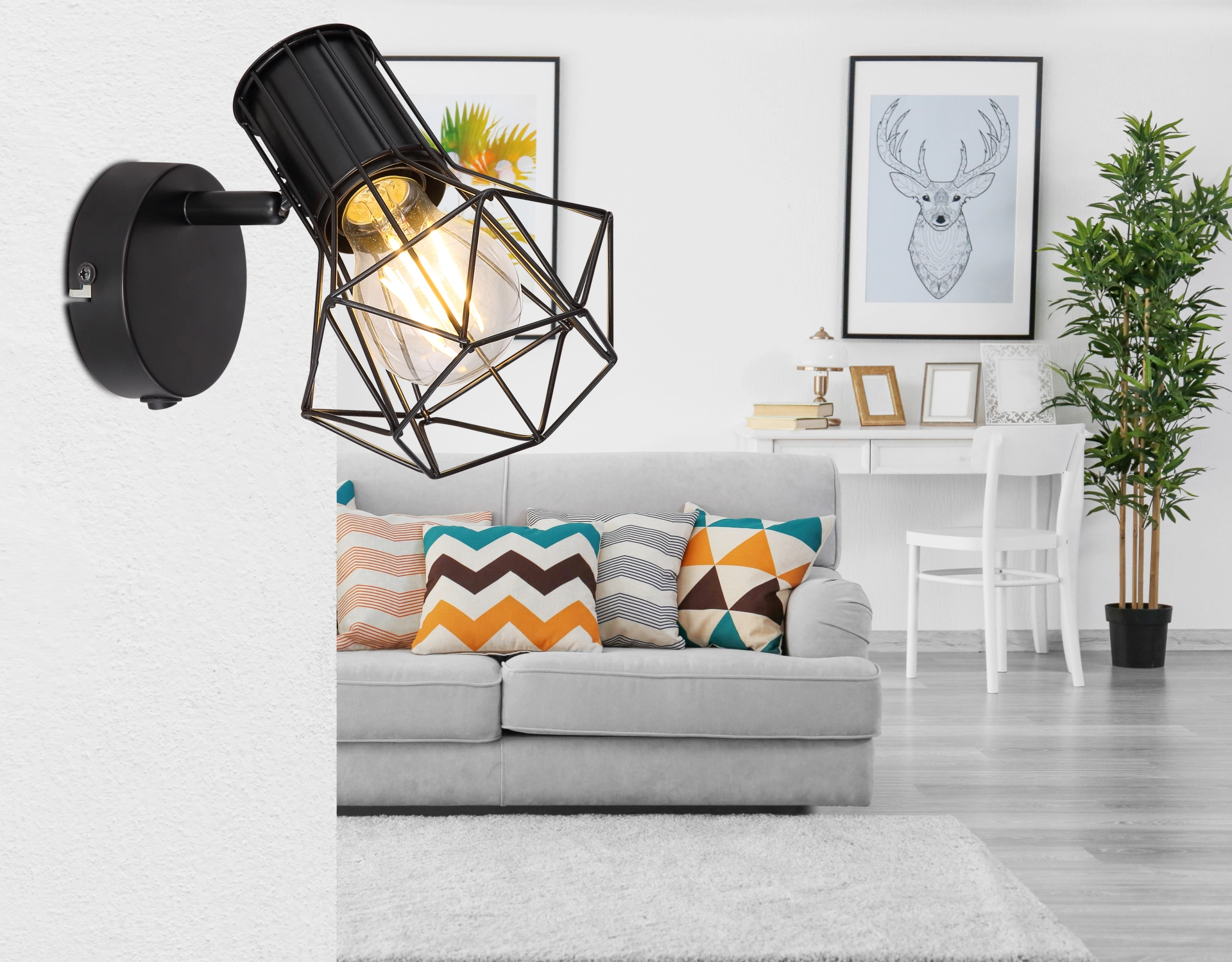 The wall spotlight from the Priska series convinces with its elegant design. The movable black diamond-shaped metal mesh shade should ... Read more Read more